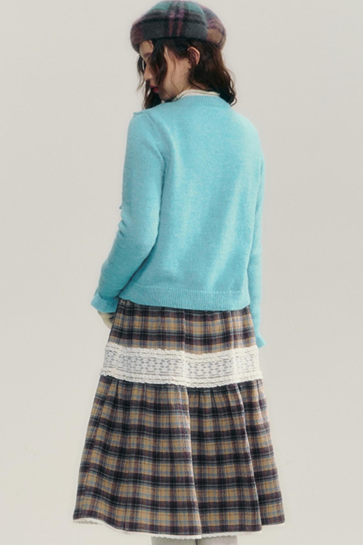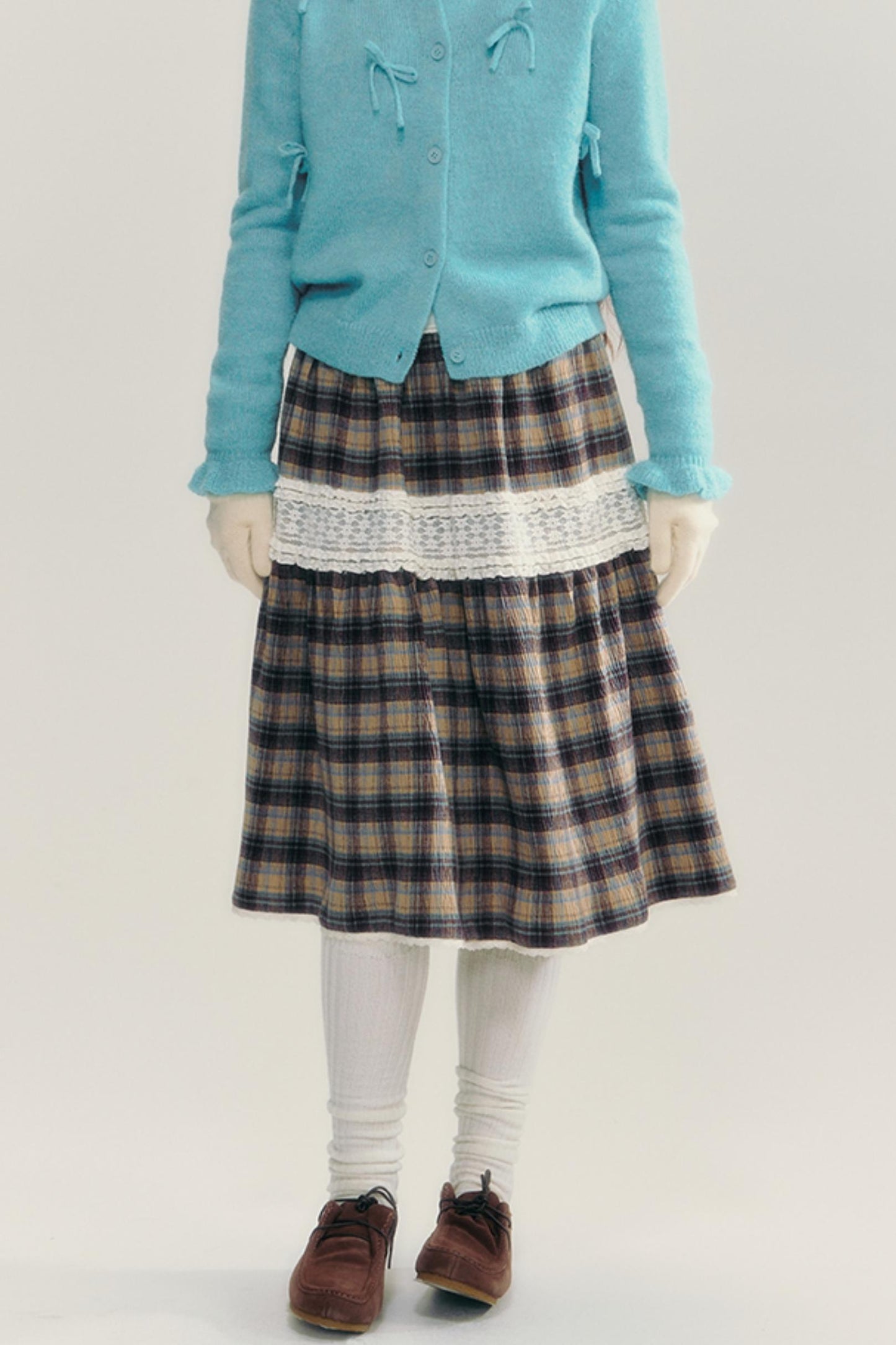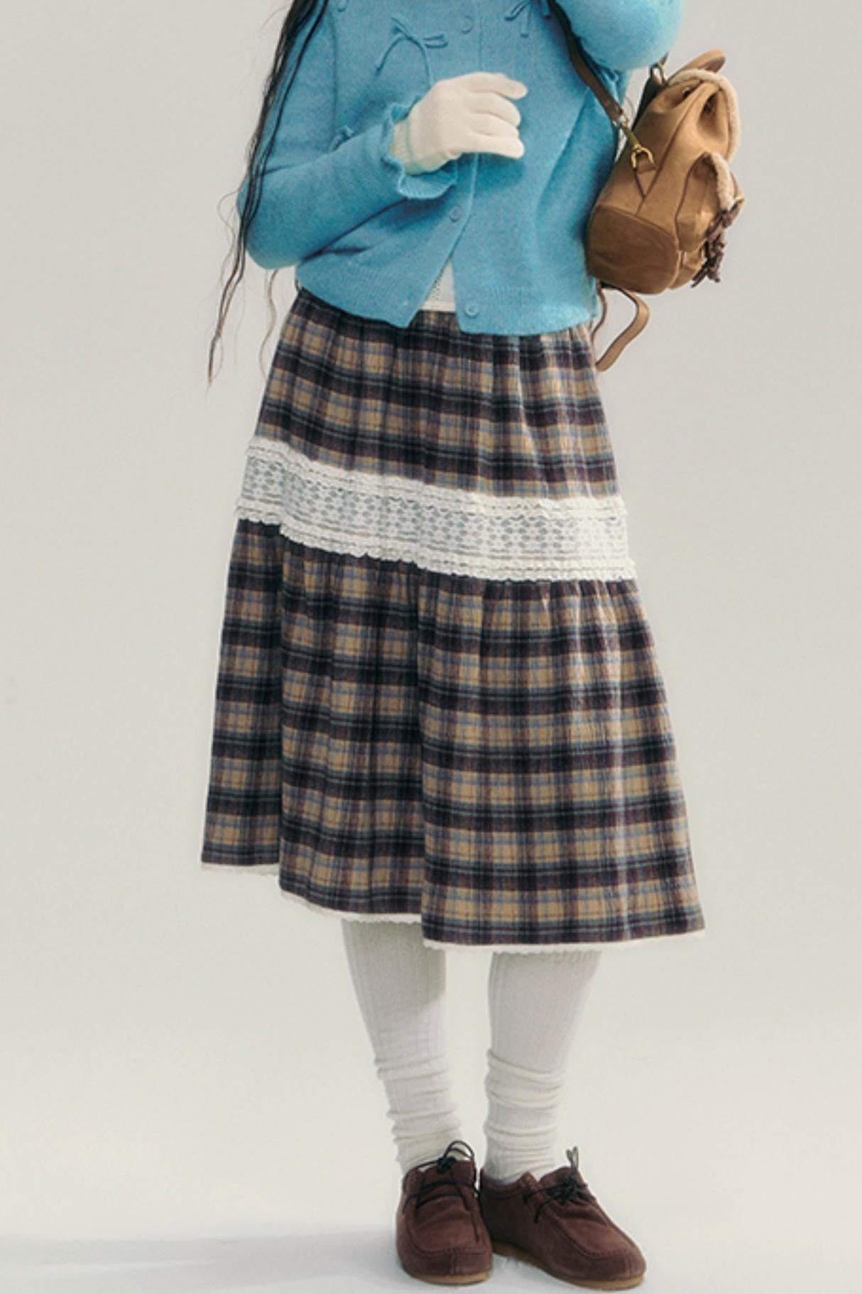 Contrasting Lace Check Midi Skirt