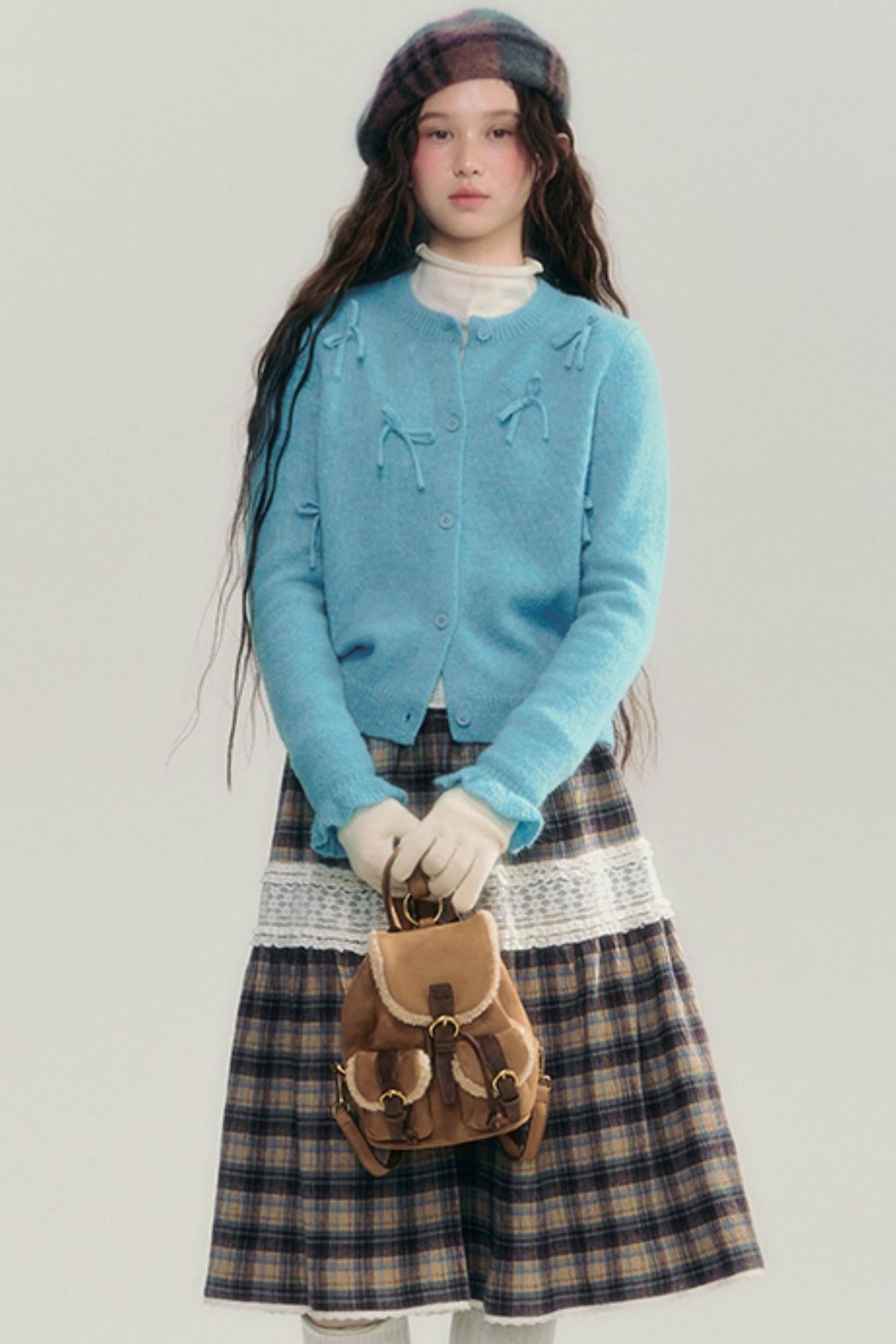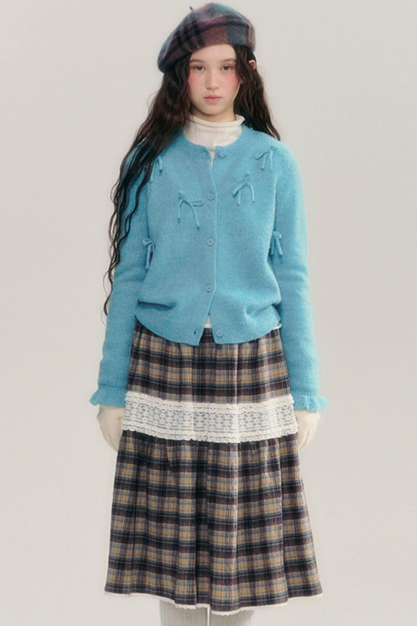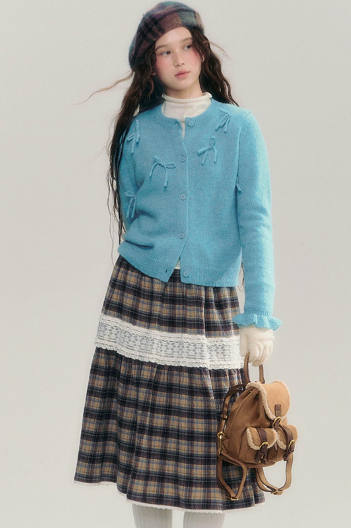 Contrasting Lace Check Midi Skirt