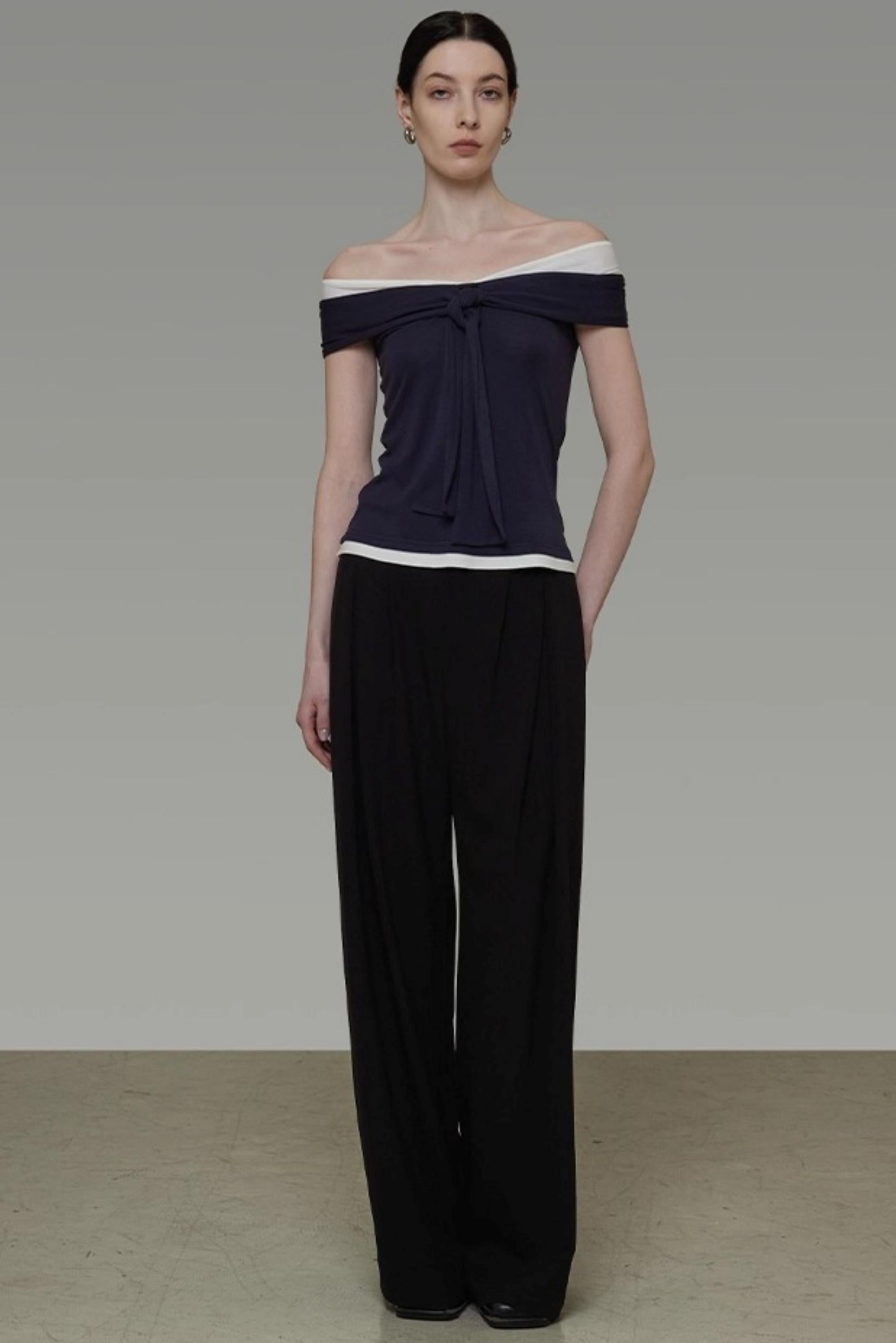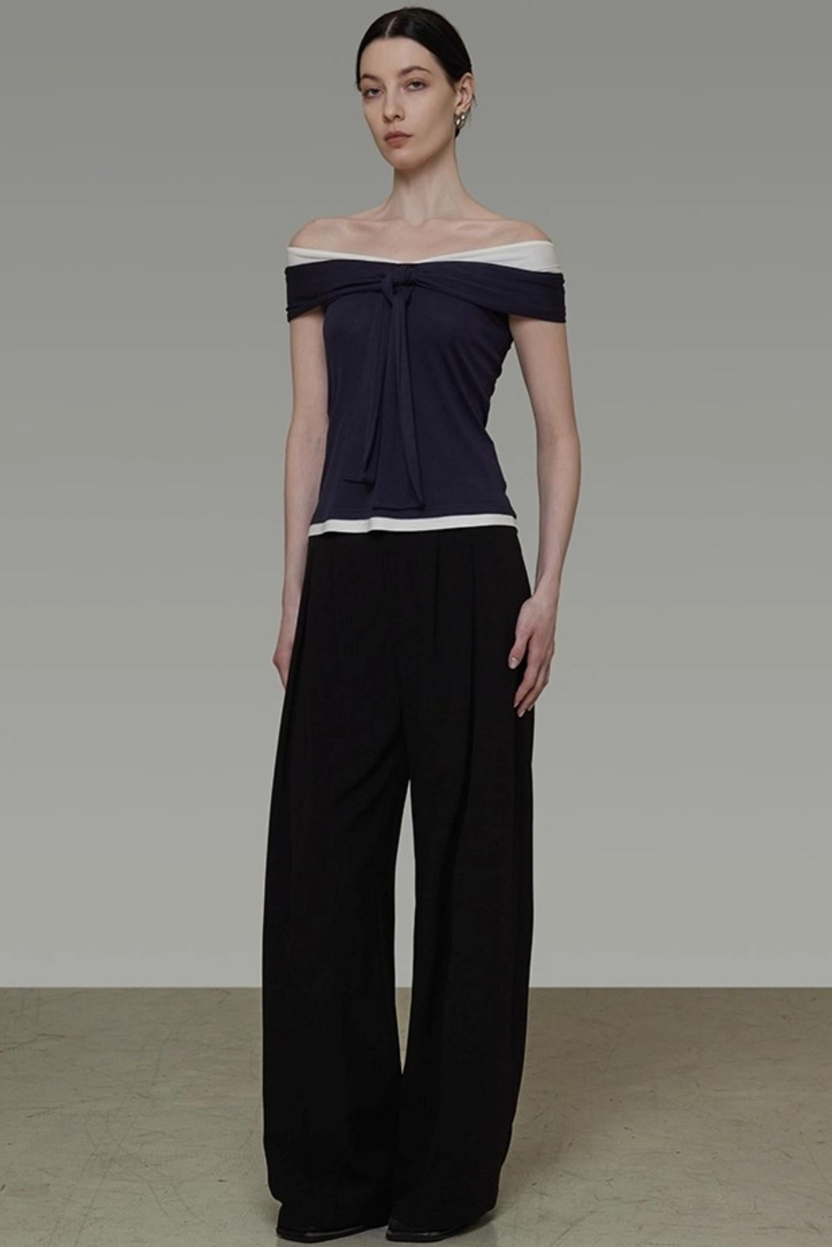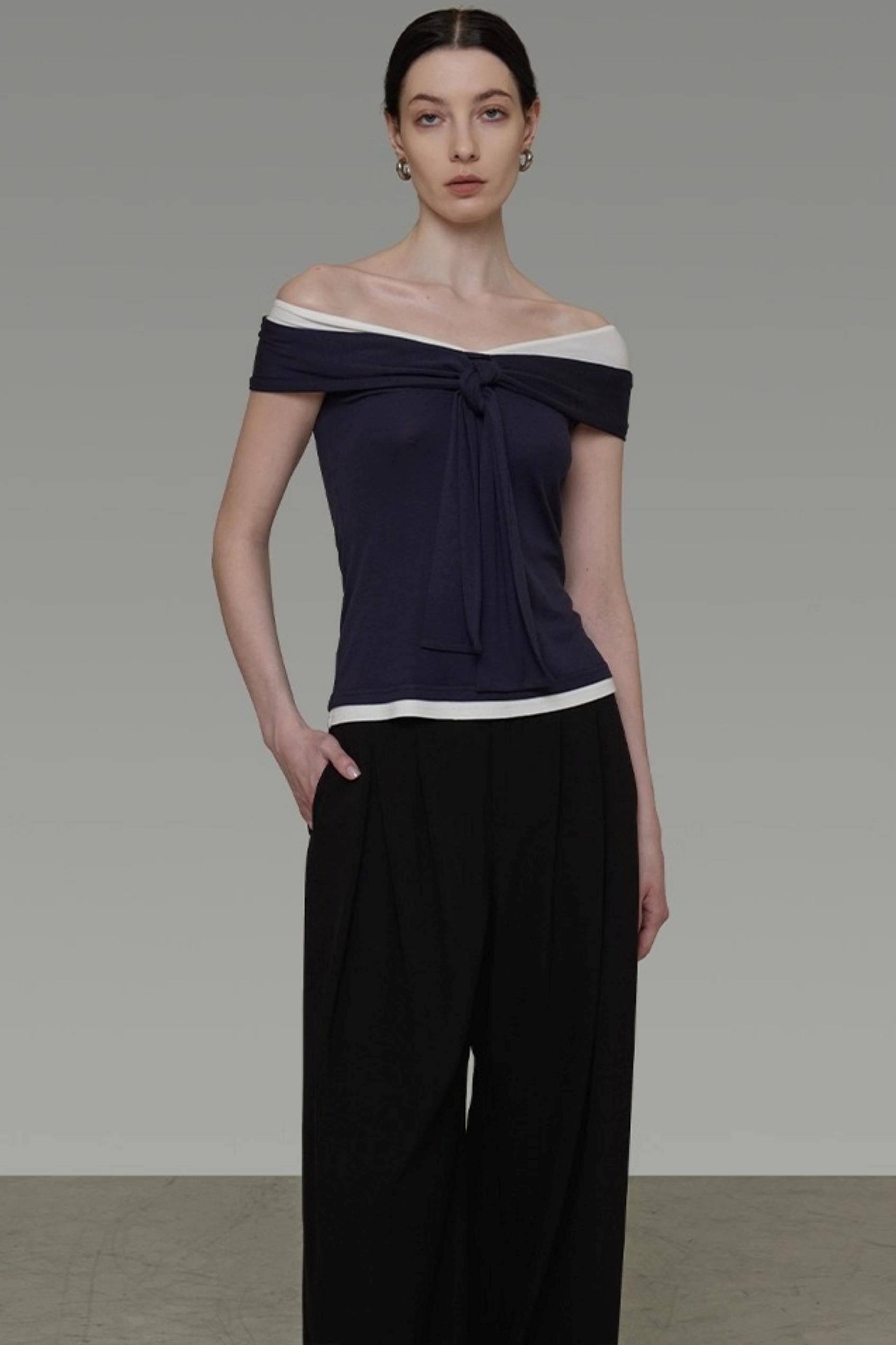 Contrasting One-Shoulder Slimming Top