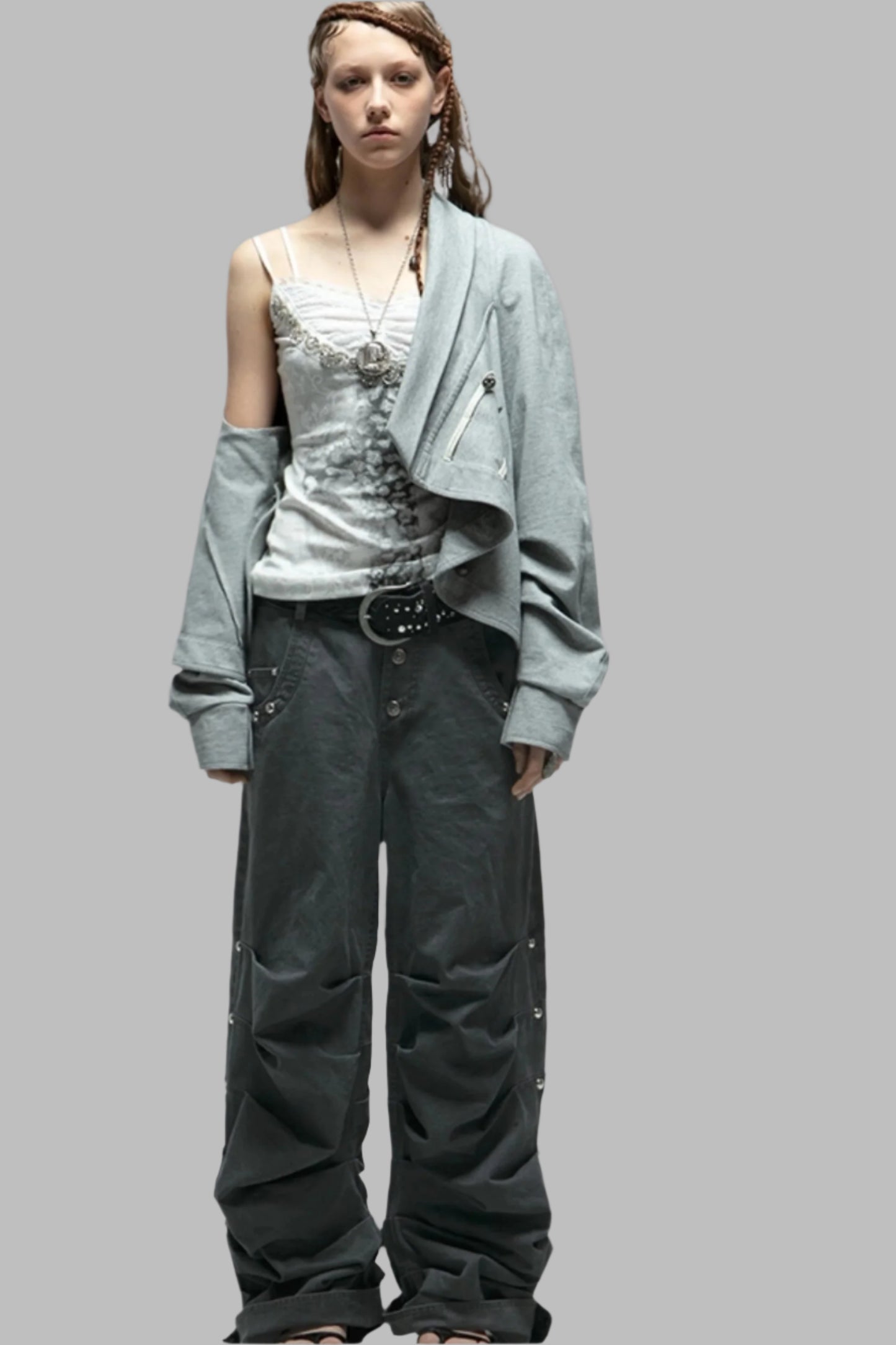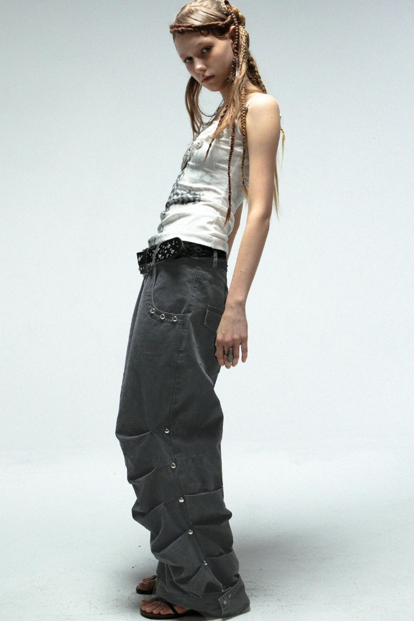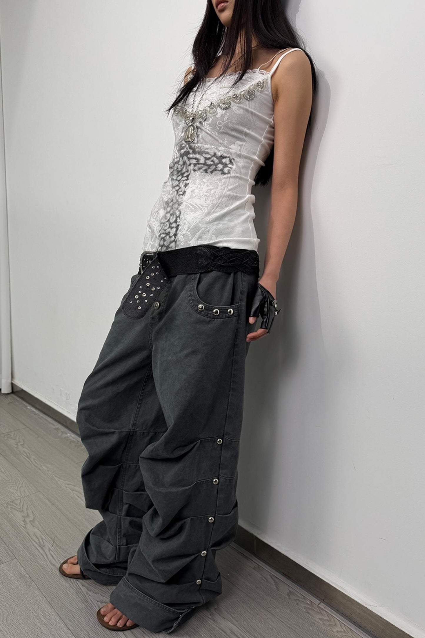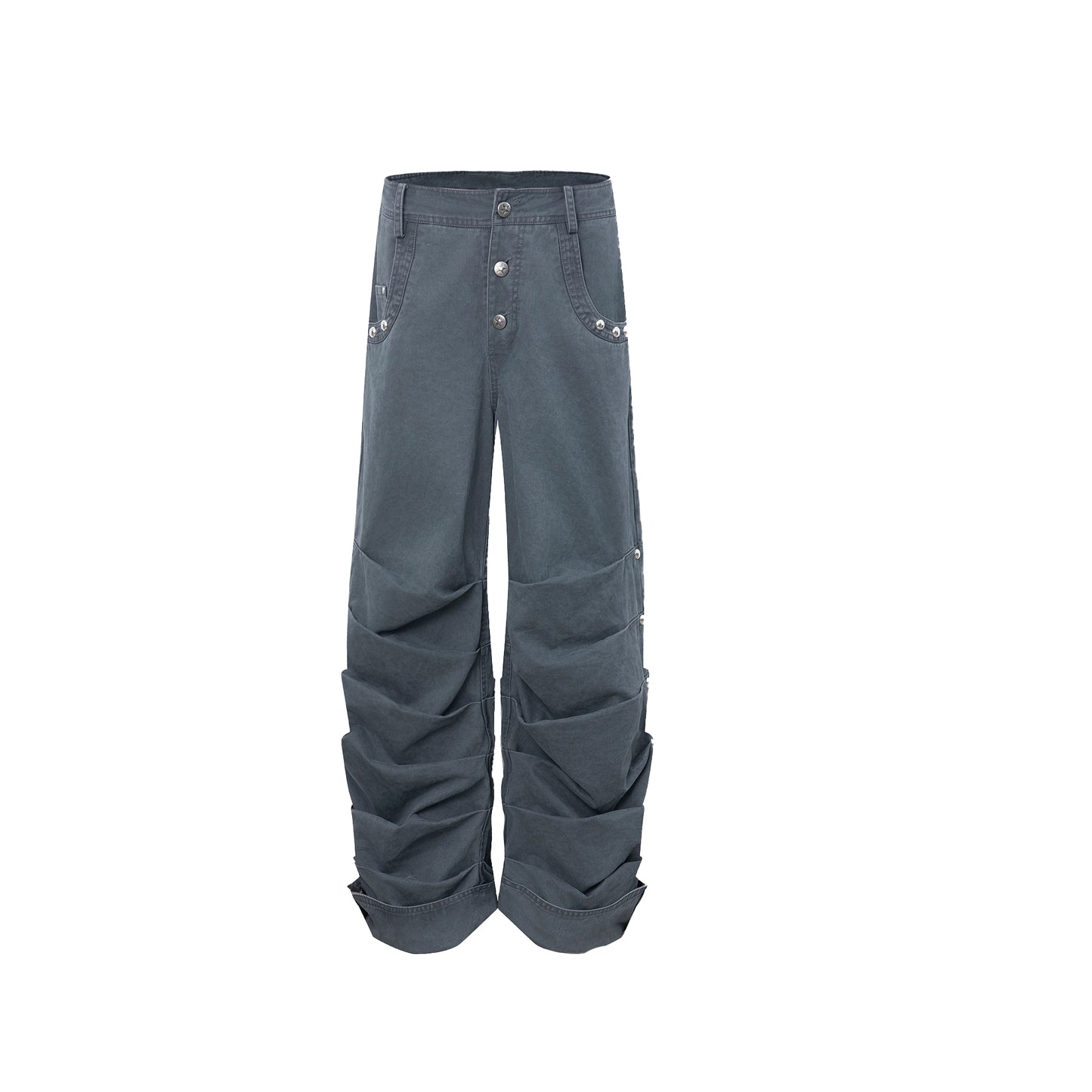 Distressed Pleated Cotton Trousers