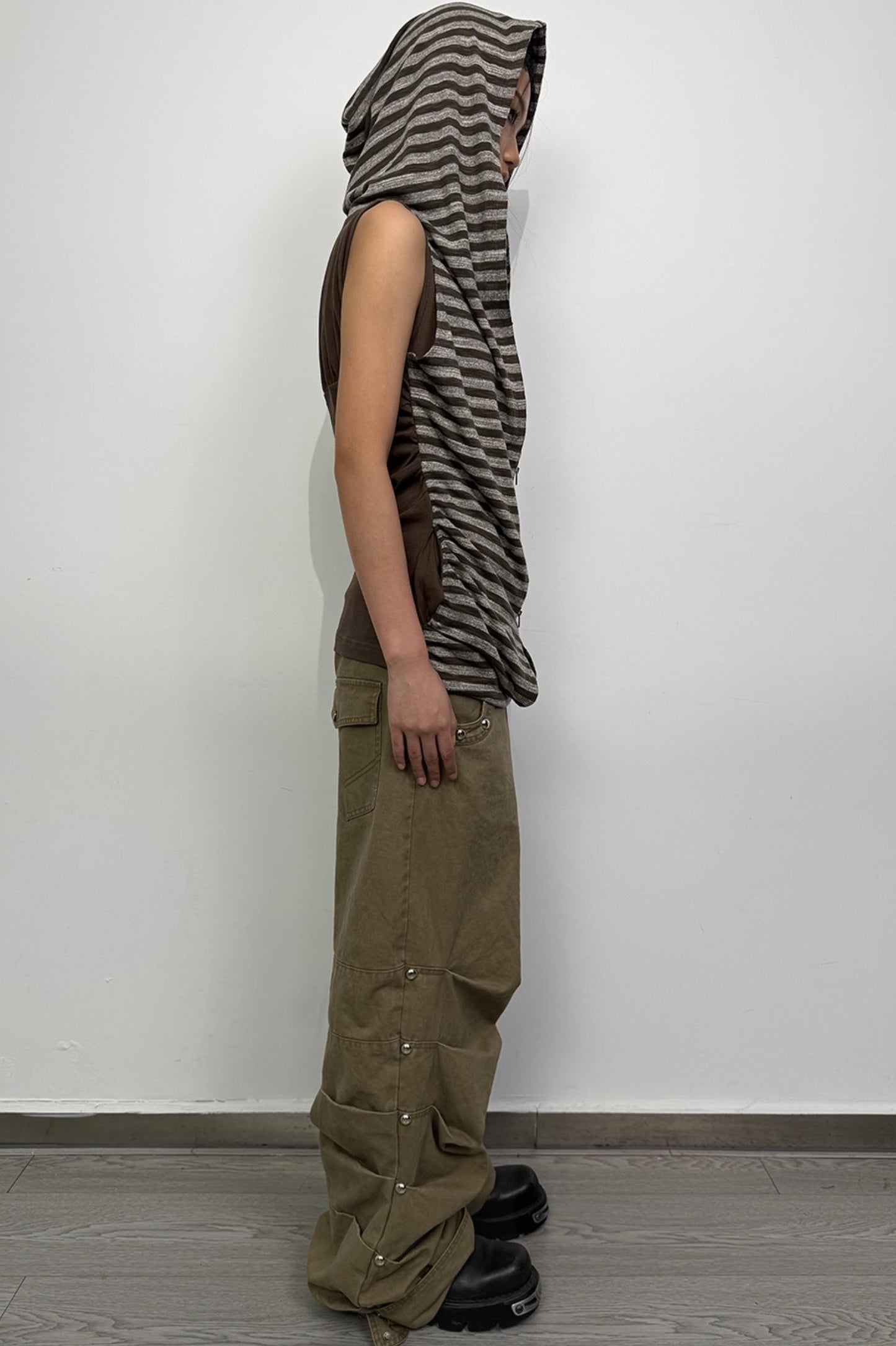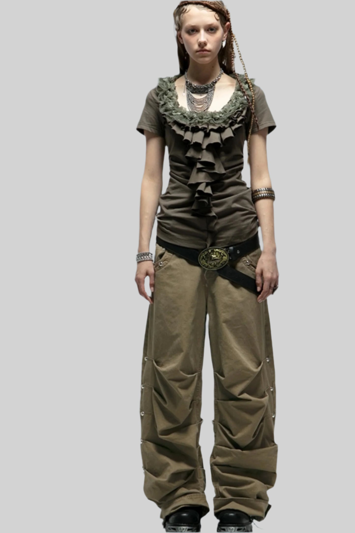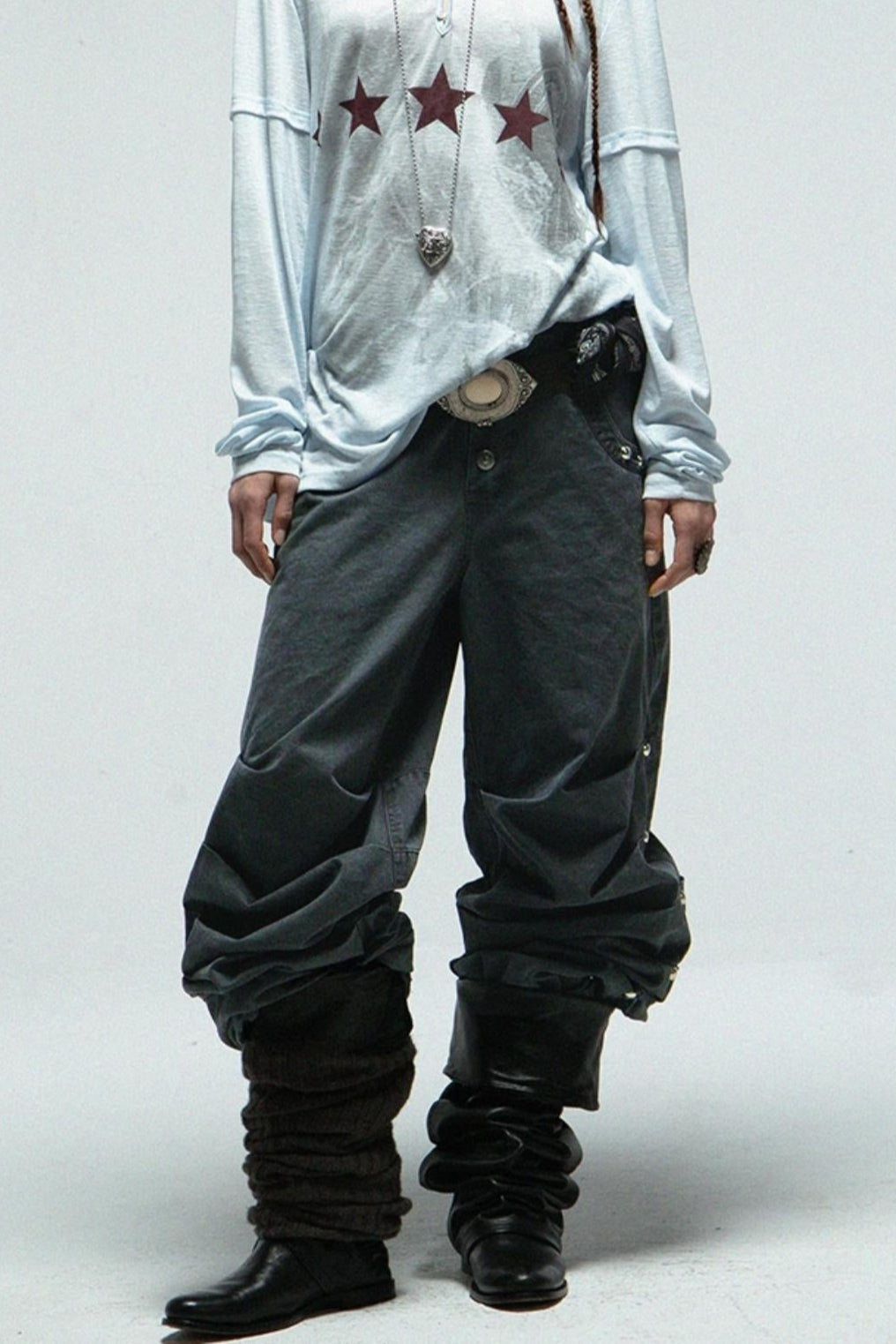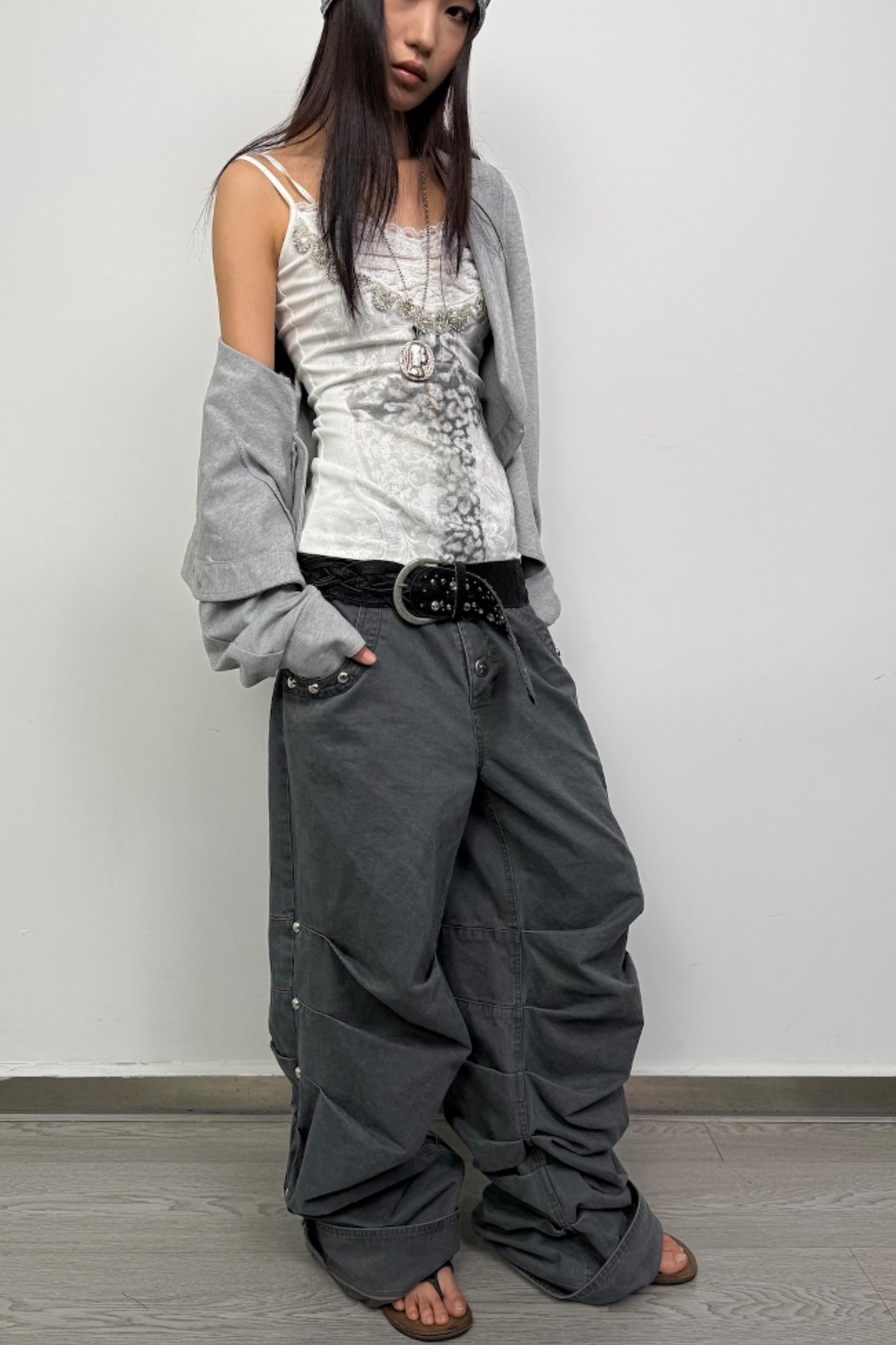 Distressed Pleated Cotton Trousers