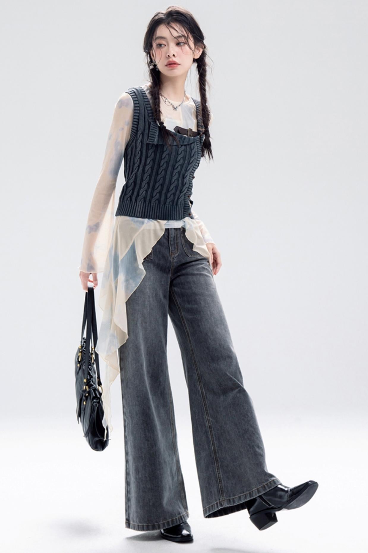 Distressed Wash Layered Wool Vest