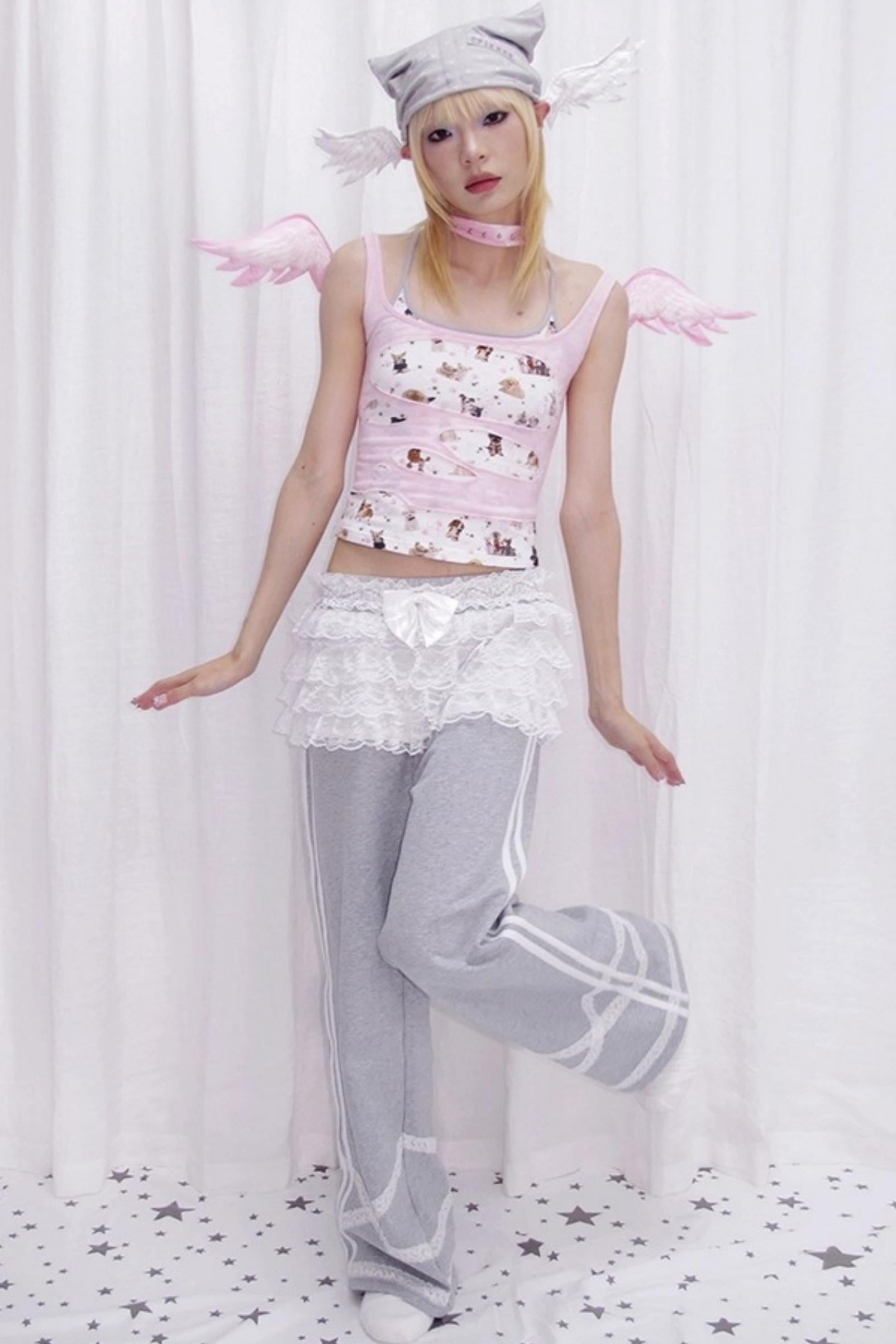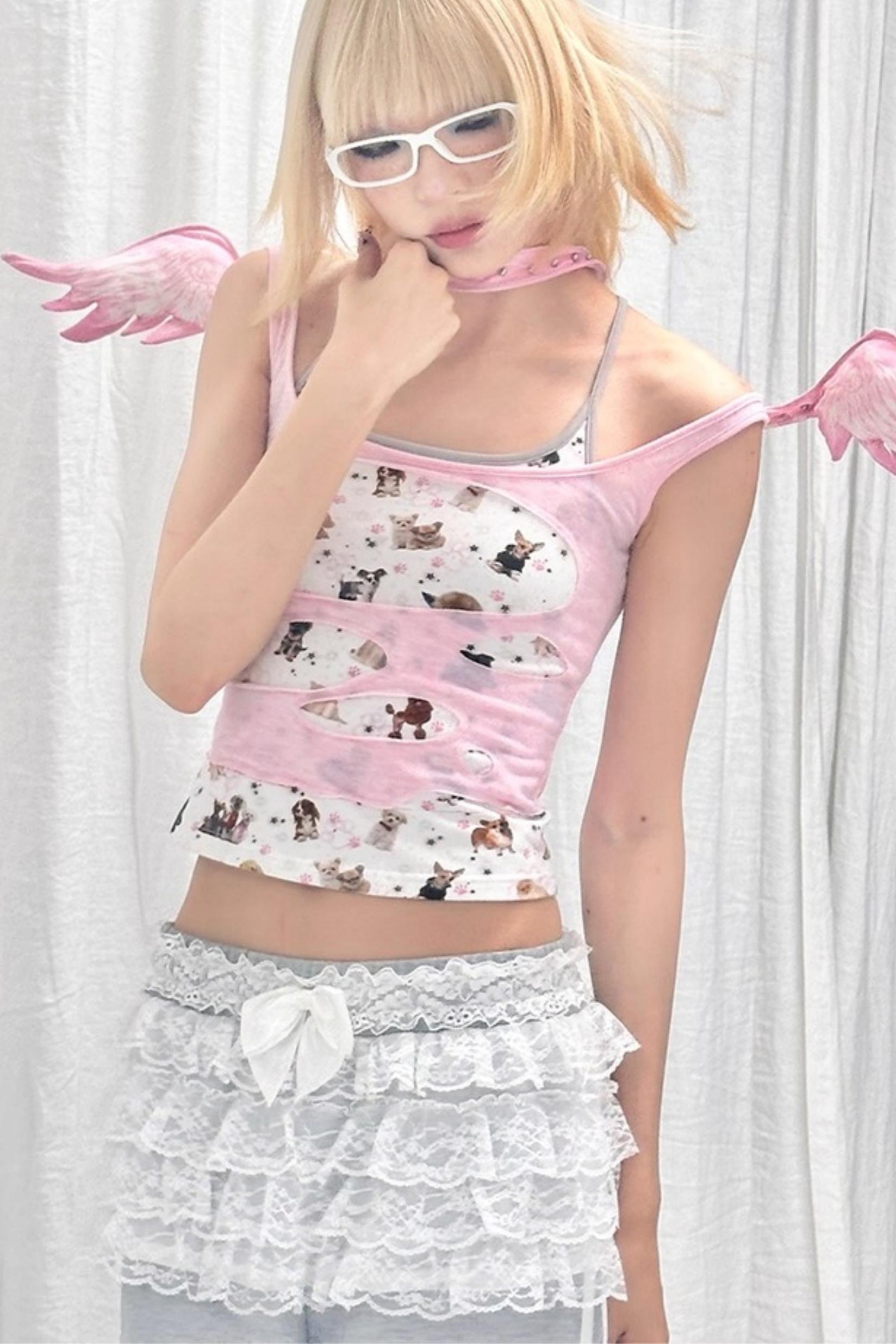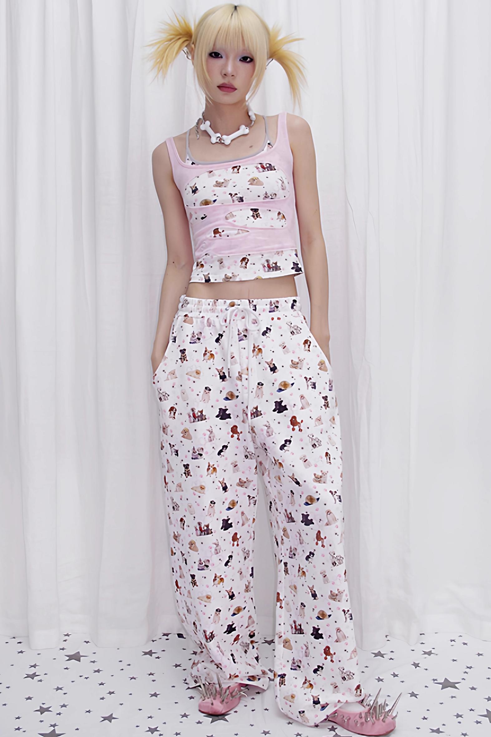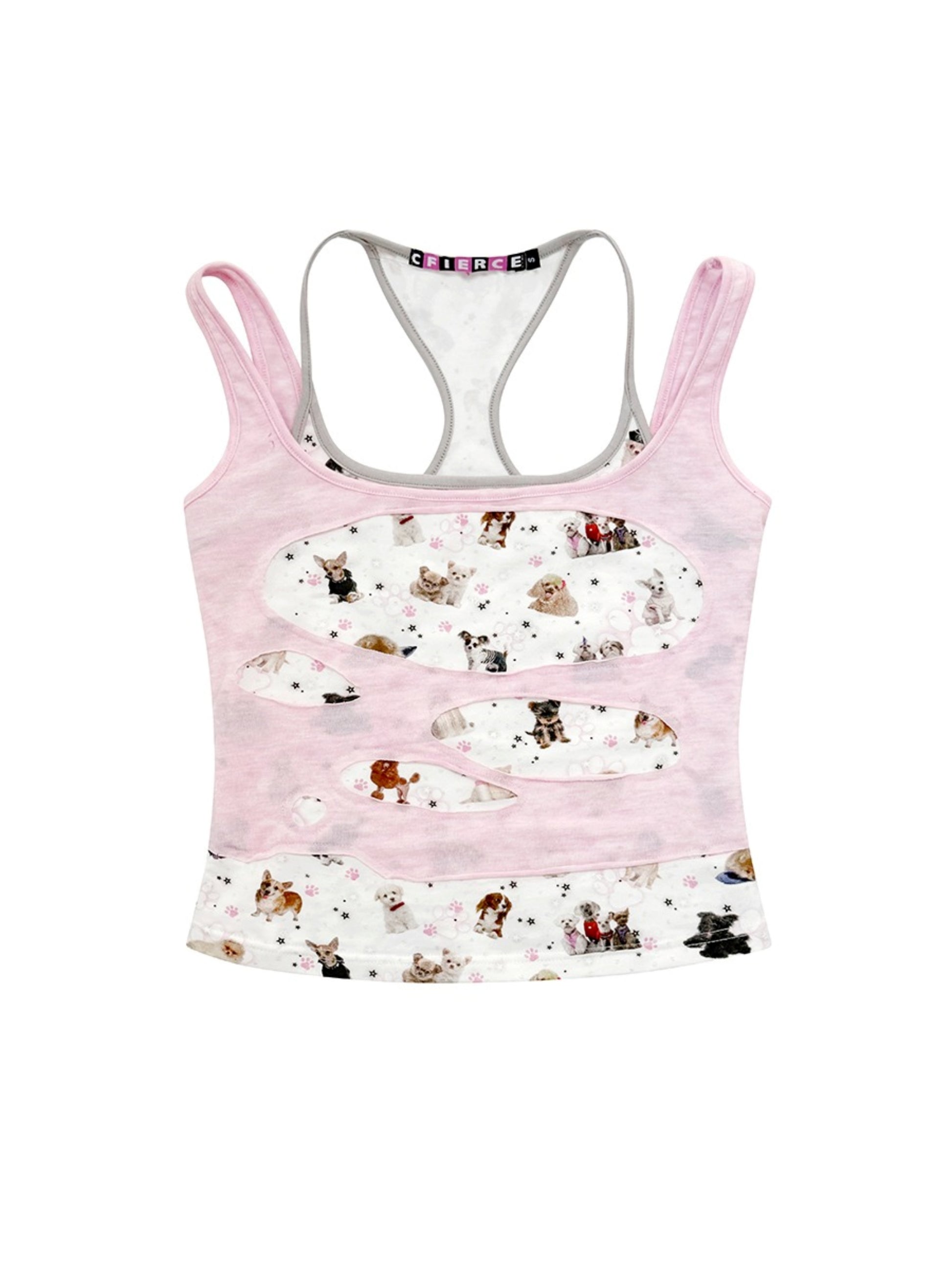 Dog Print Fake Two Piece Camisole