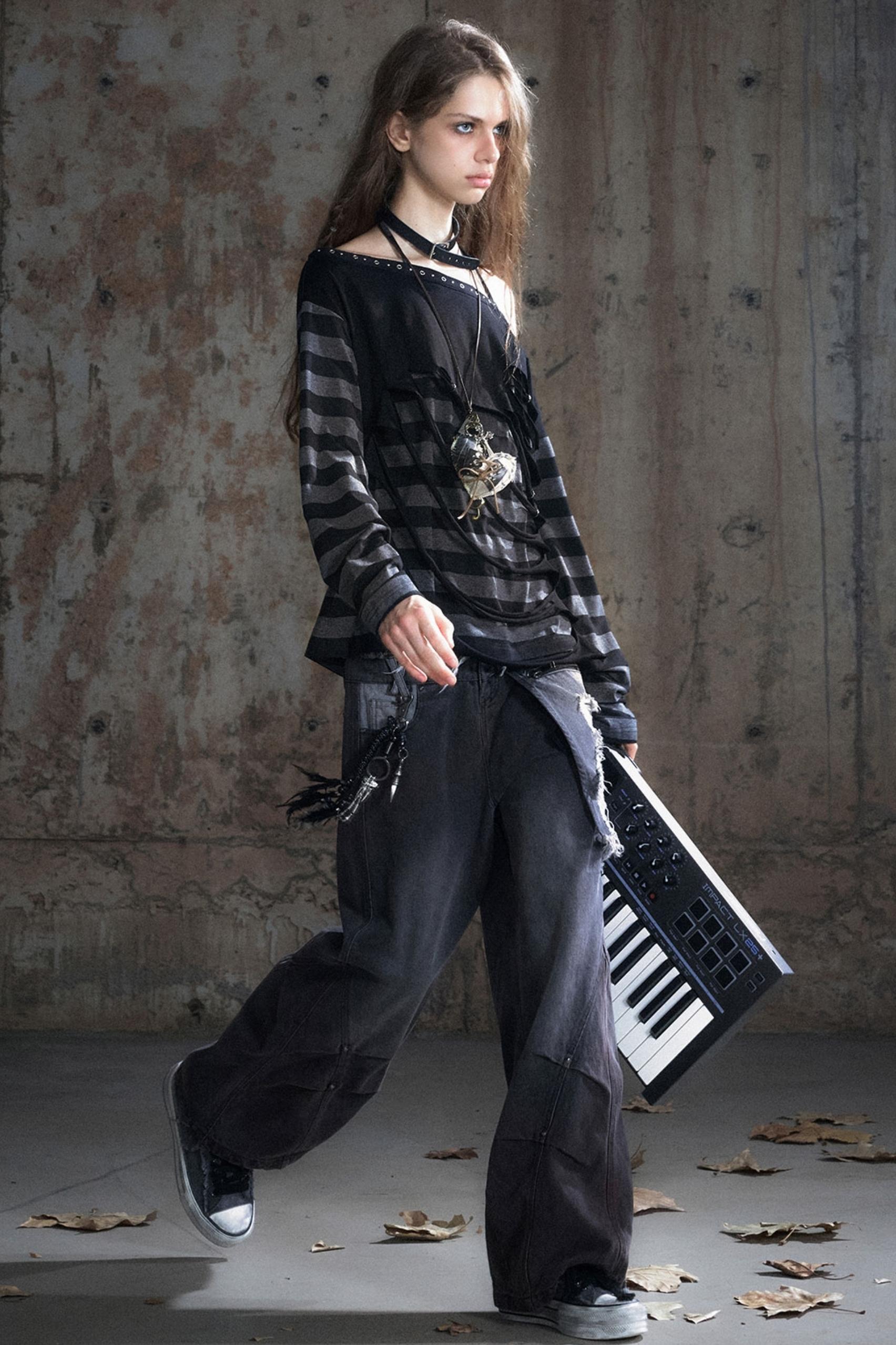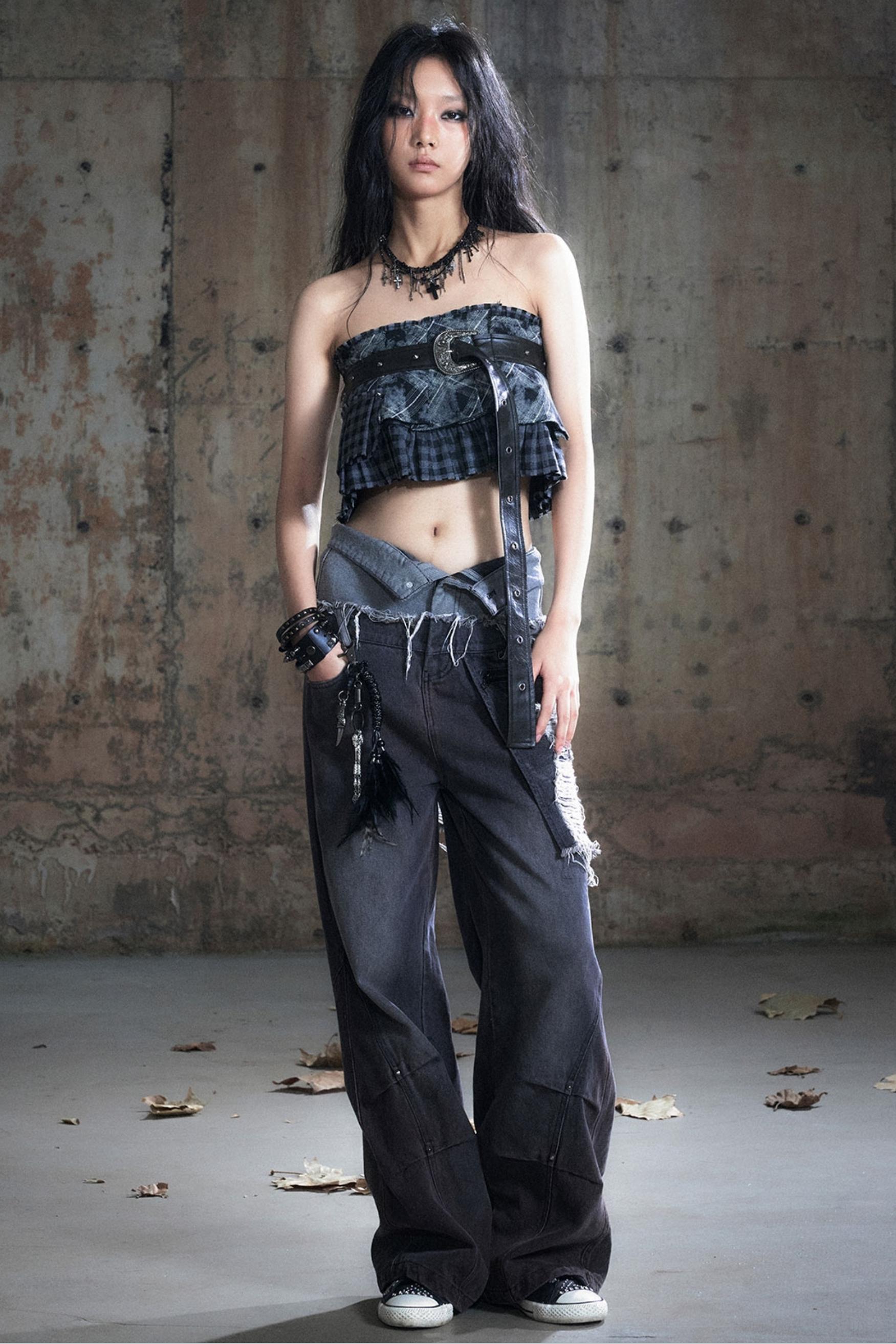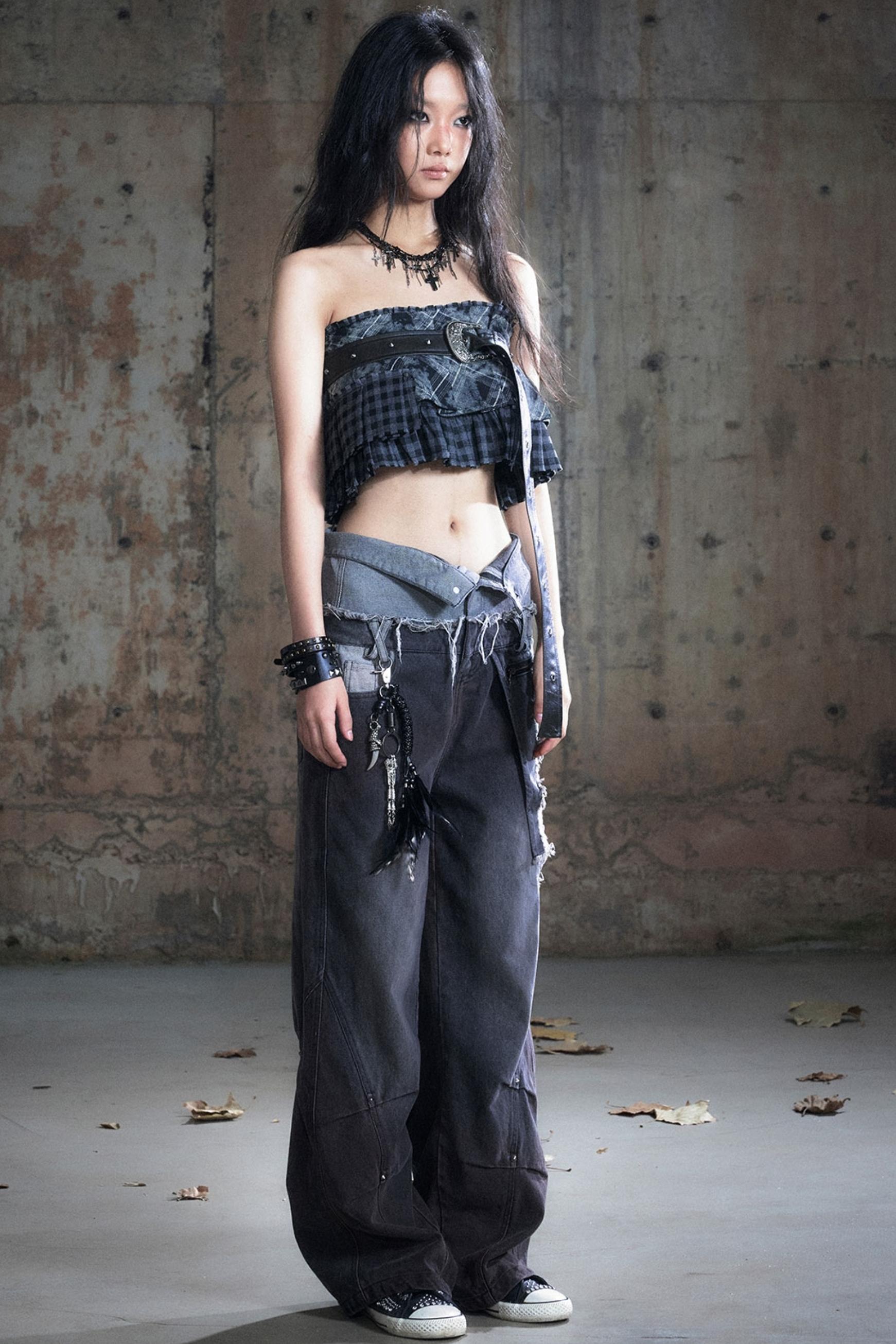 Double-Waist Patchwork Wide-Leg Pants