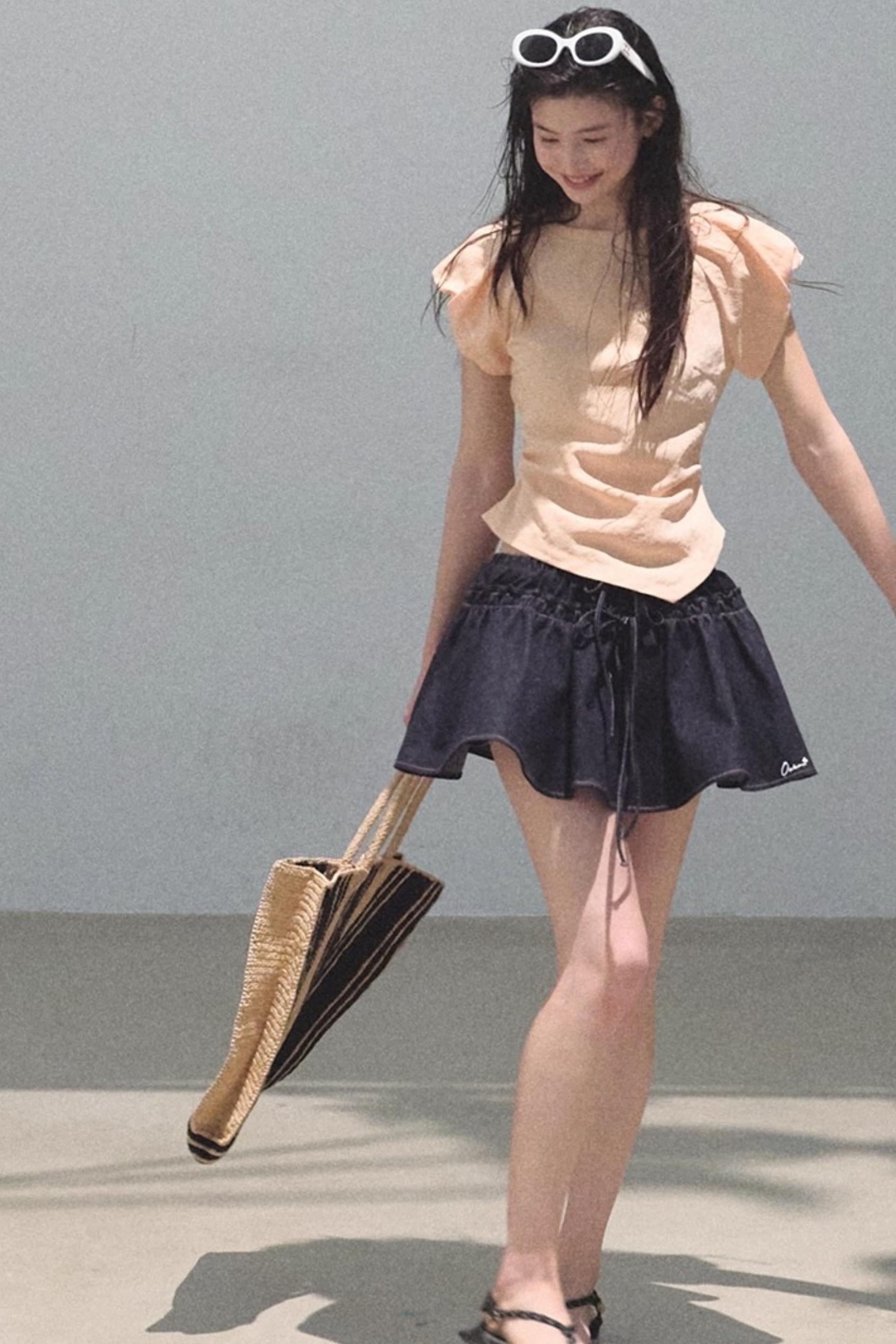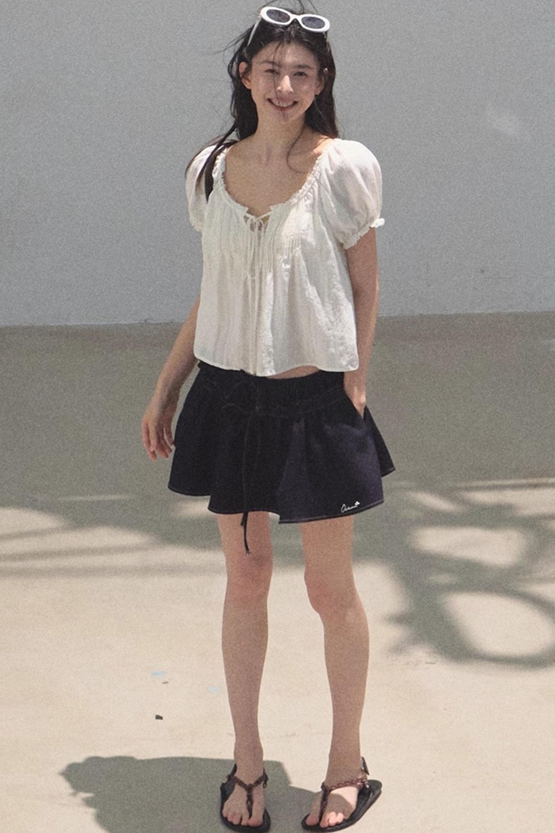 Embroidered Lyocell Puffy A-Line Skirt