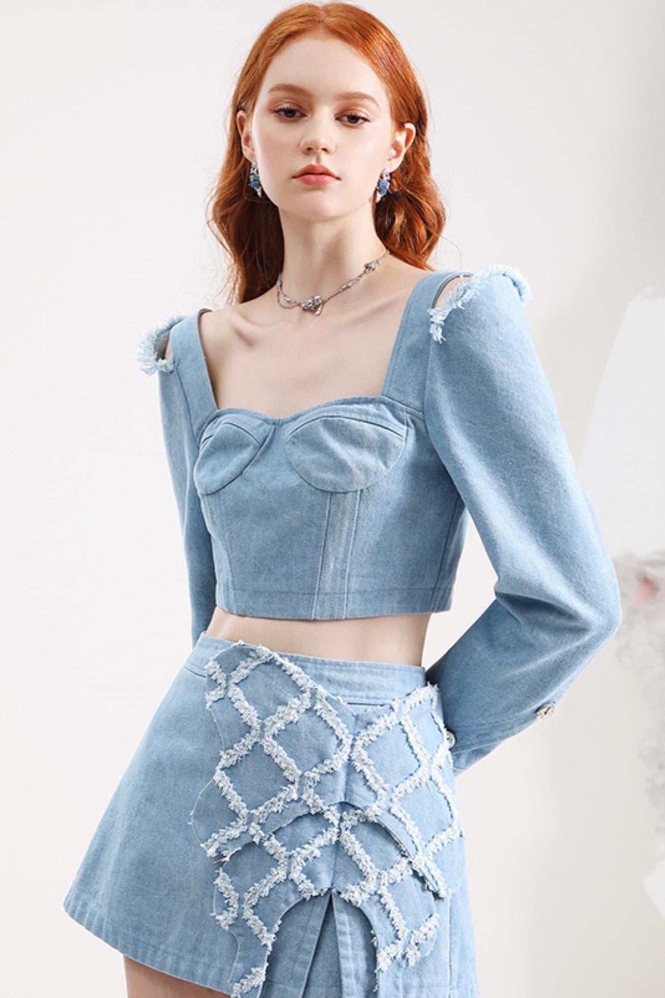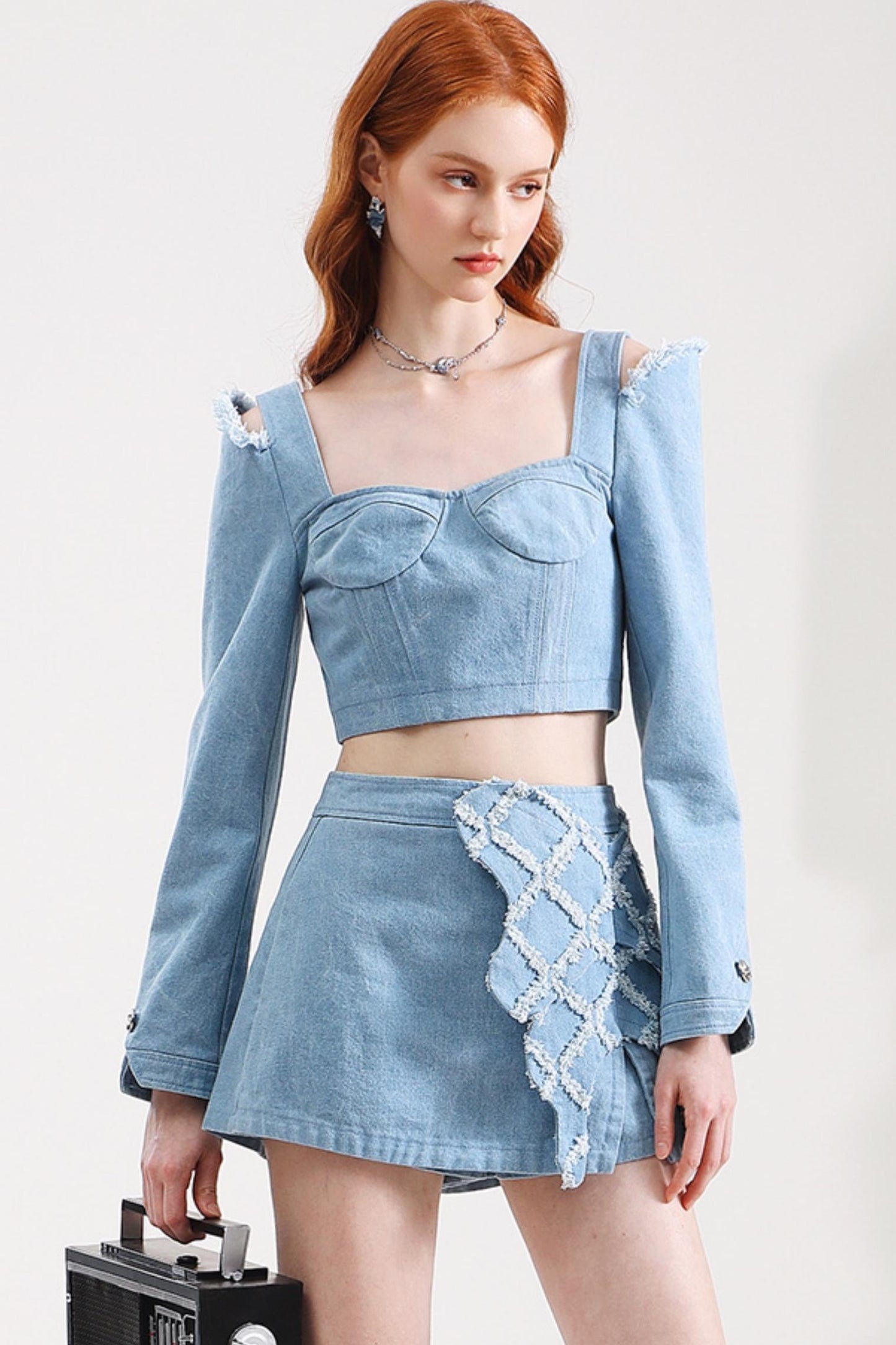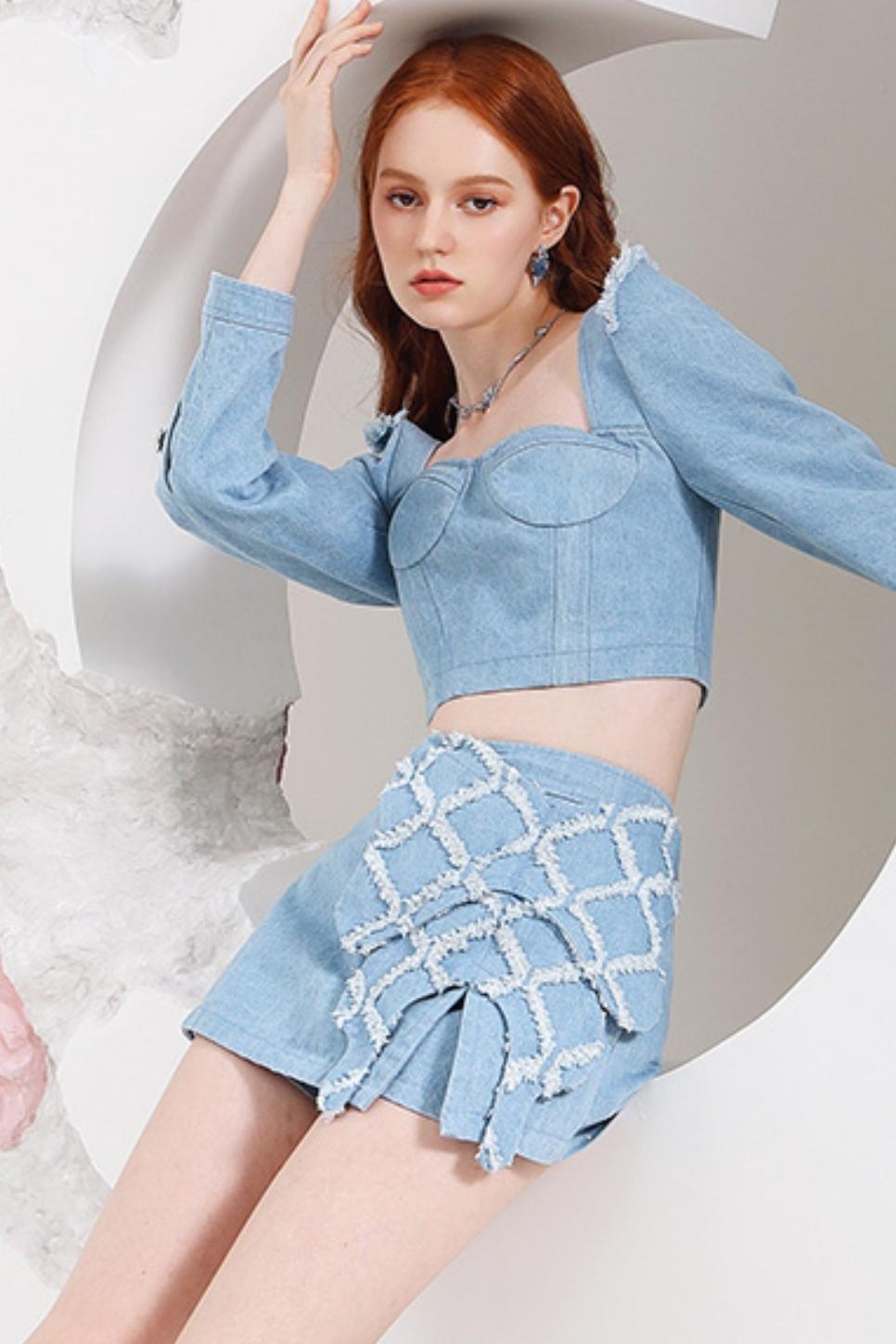 Fashionable Hollow Denim Short Top