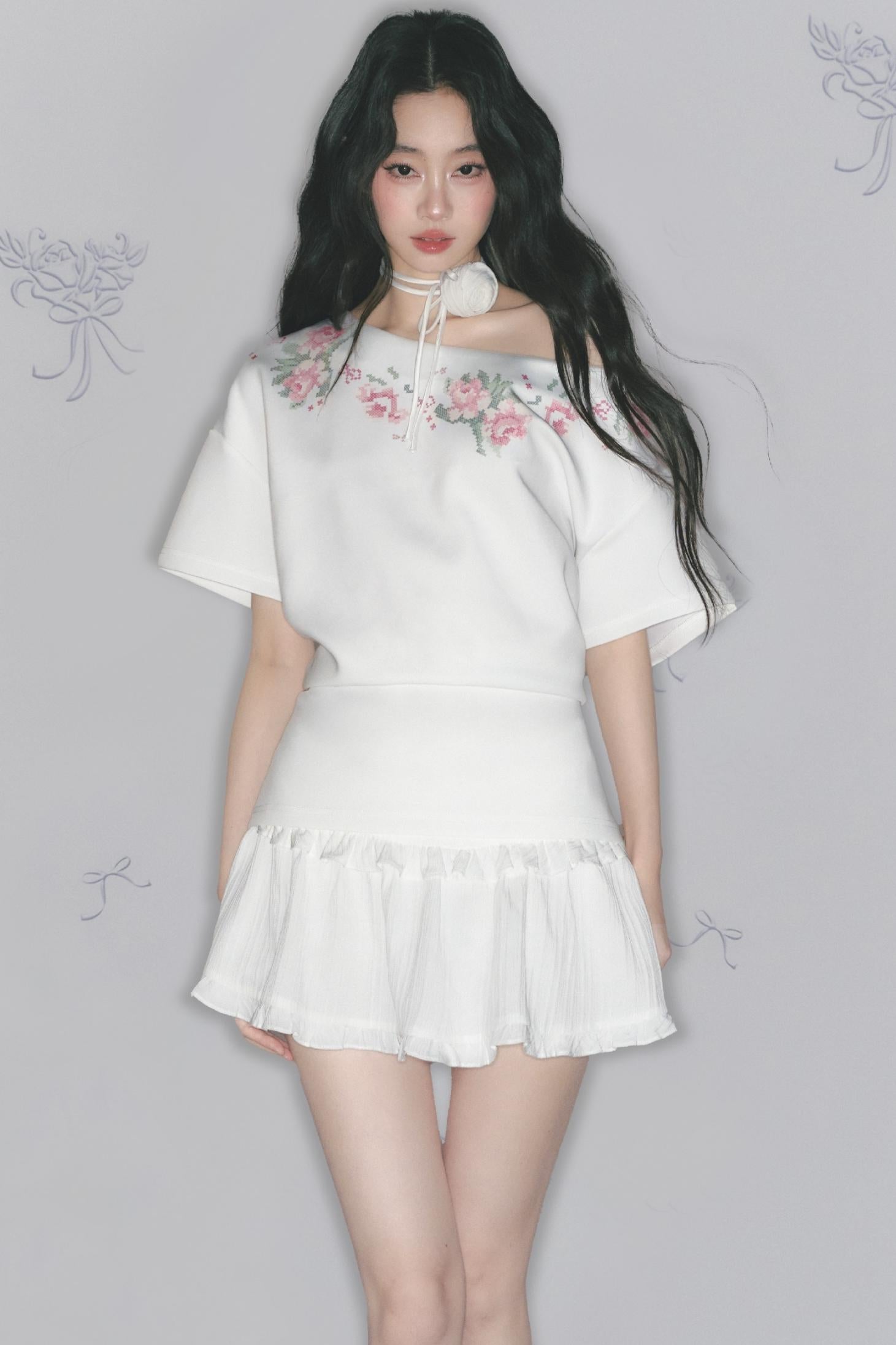 Floral Embroidered Button Top