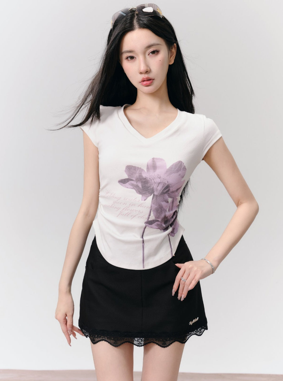 Floral Lily V-Neck T-Shirt