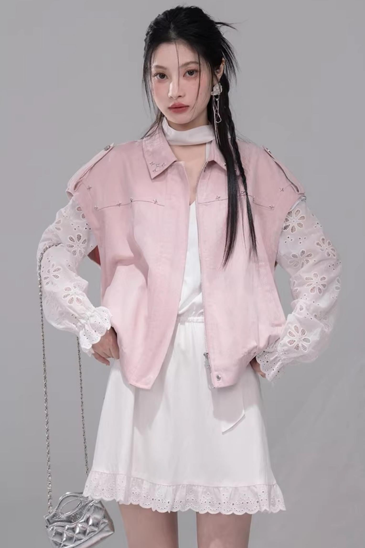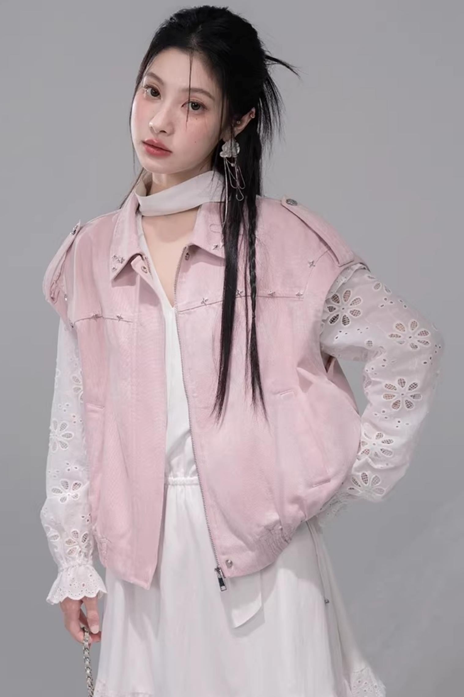 Fog Pink Denim Vest Jacket