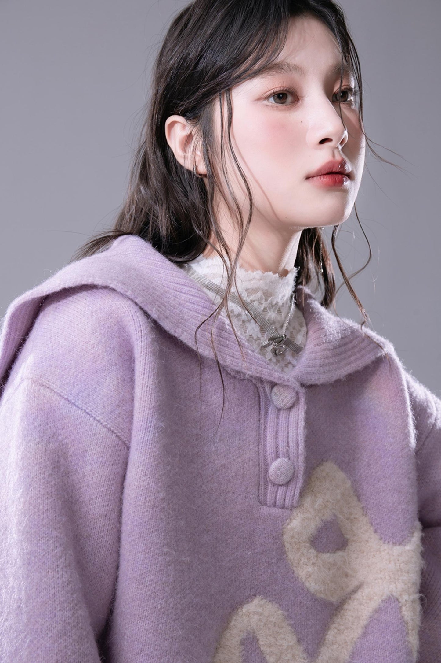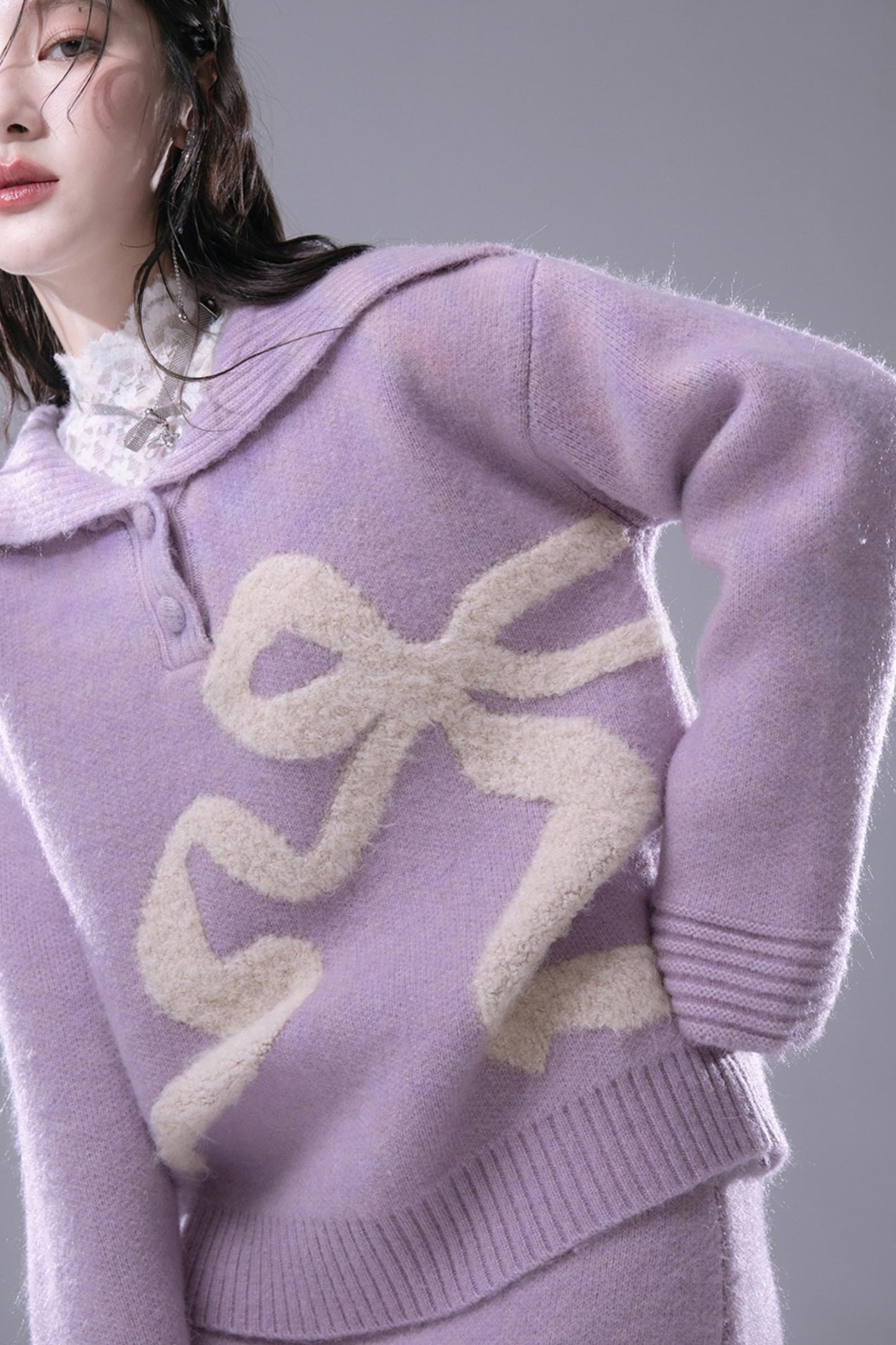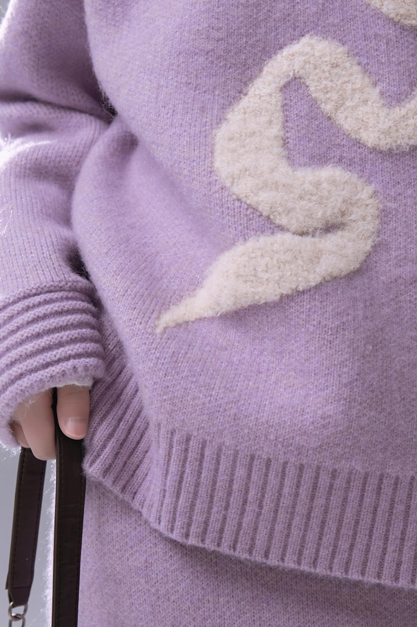 Grape Purple Bow Jacquard Sweater Set