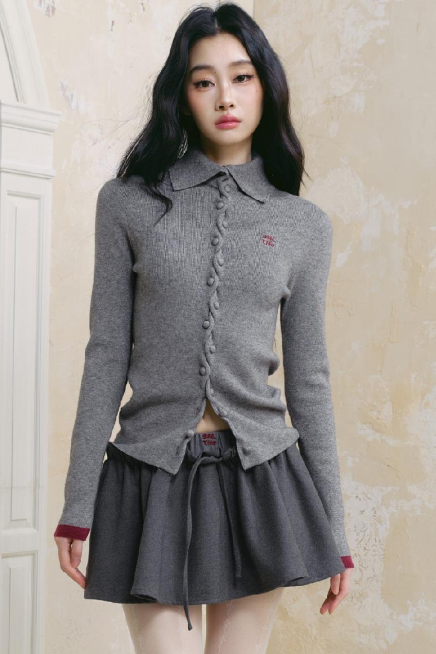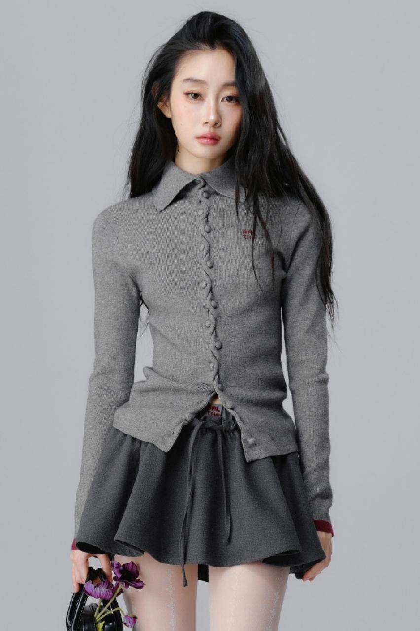 Gray Polo Neck Knitted Cardigan