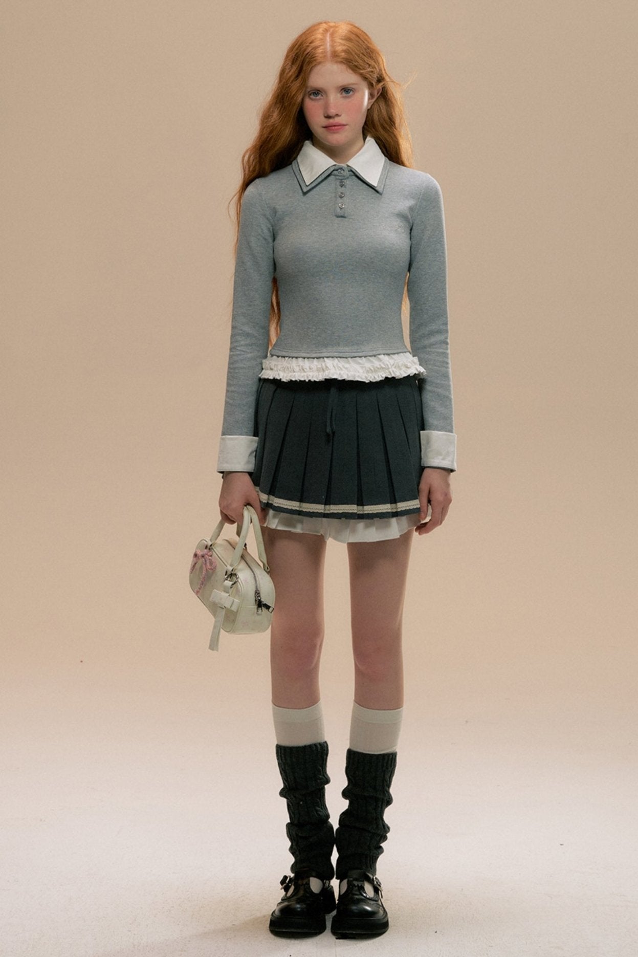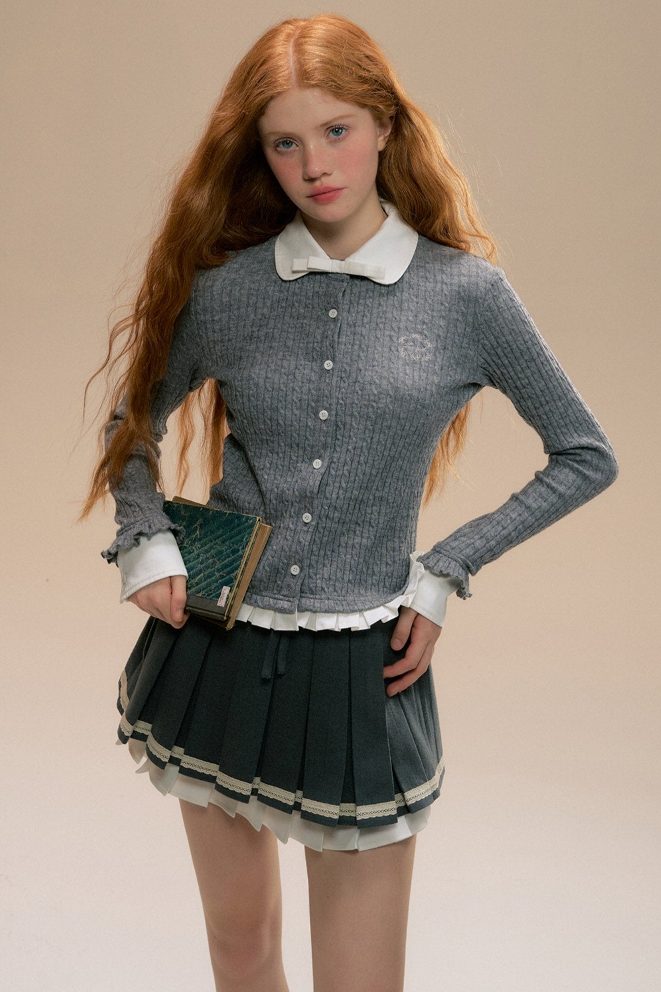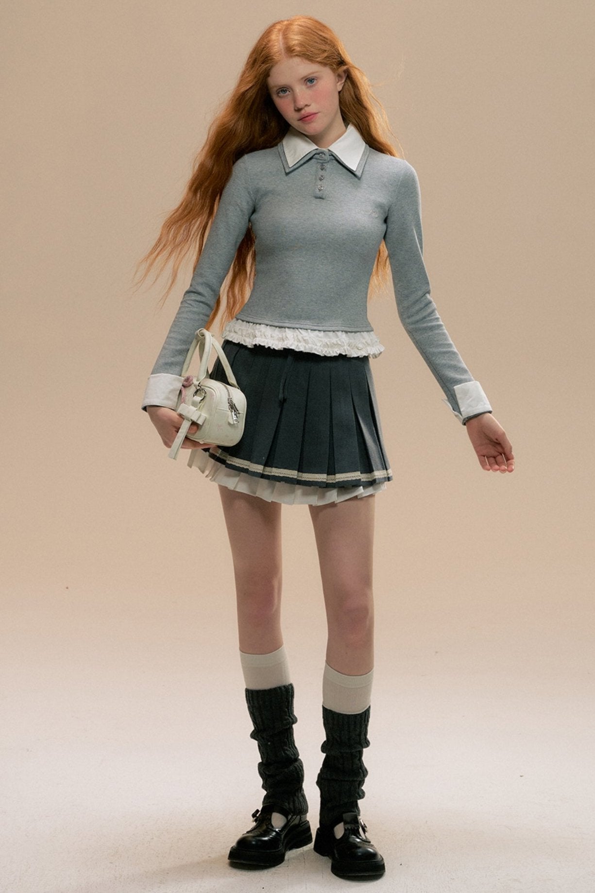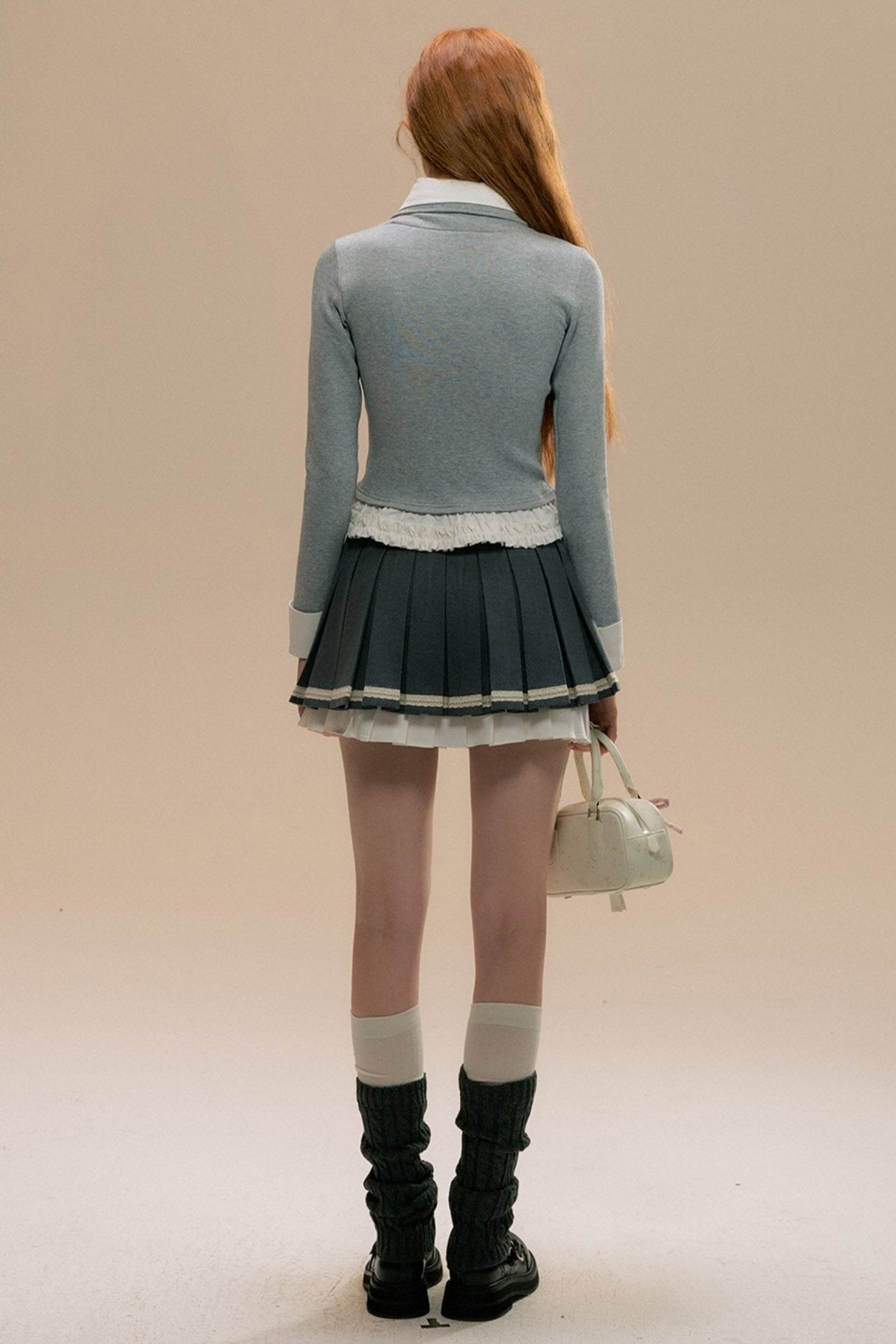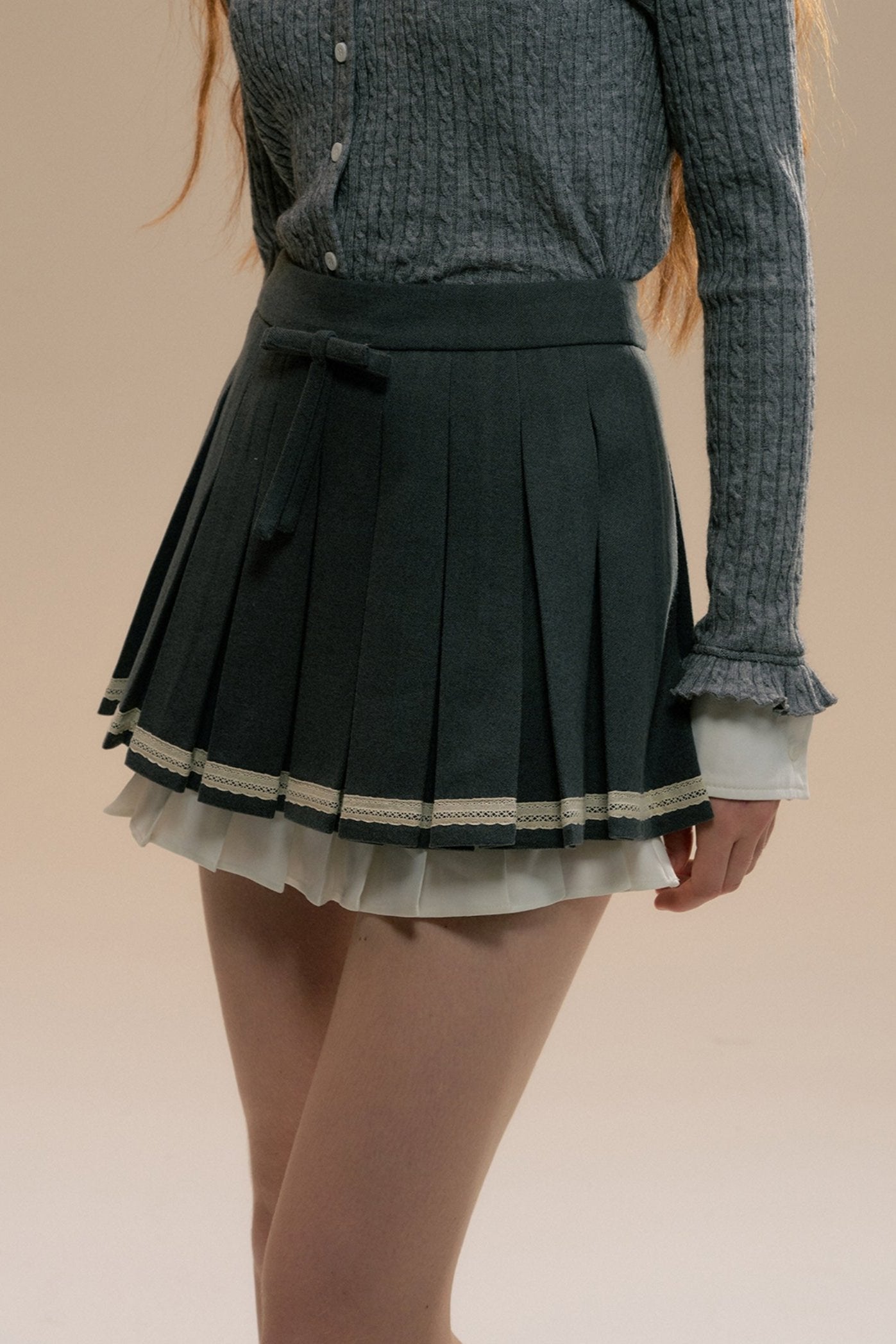 Gray Three-dimensional Girl Pleated Skirt