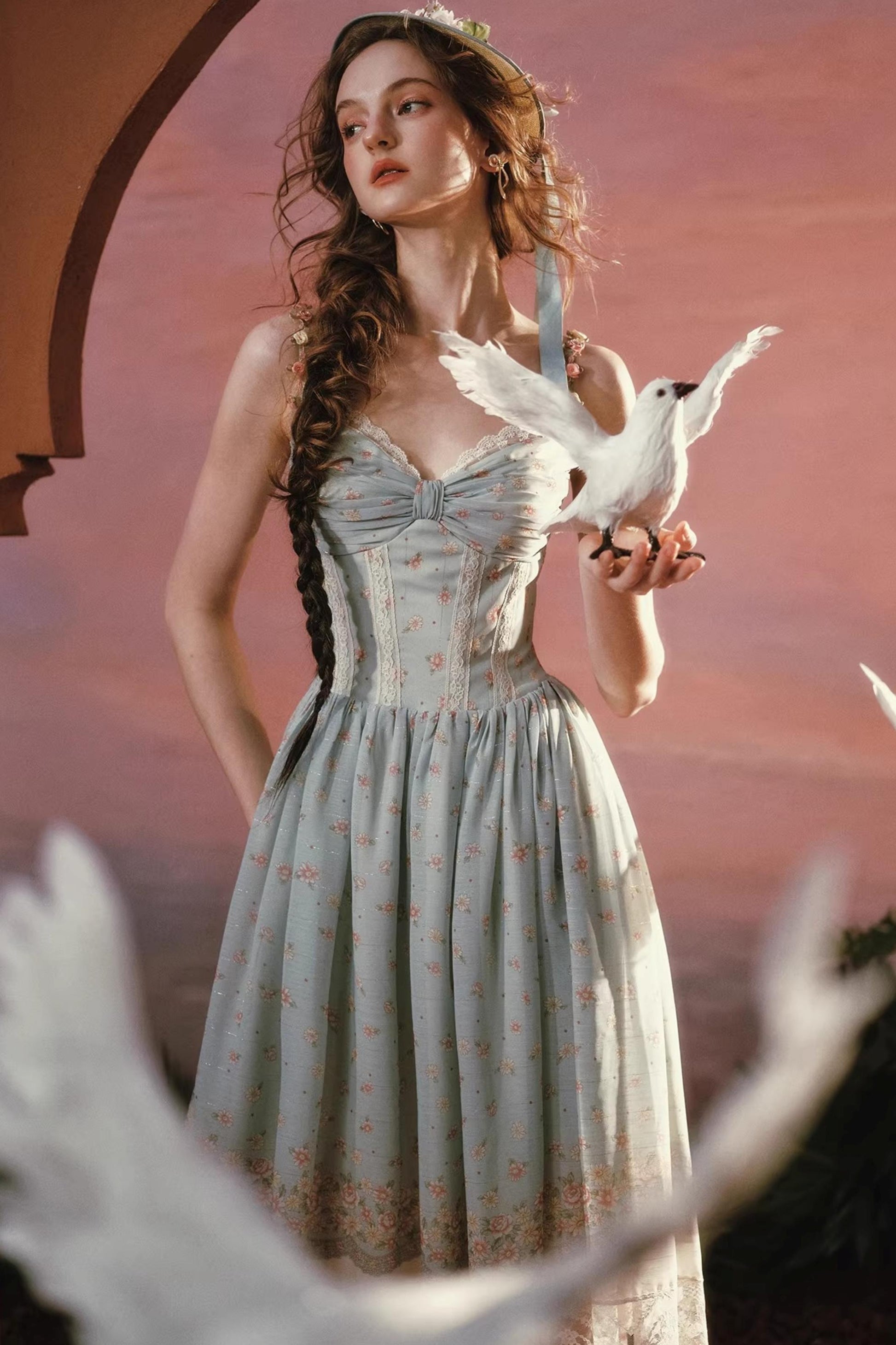 Green Floral Sweet Strap Dress