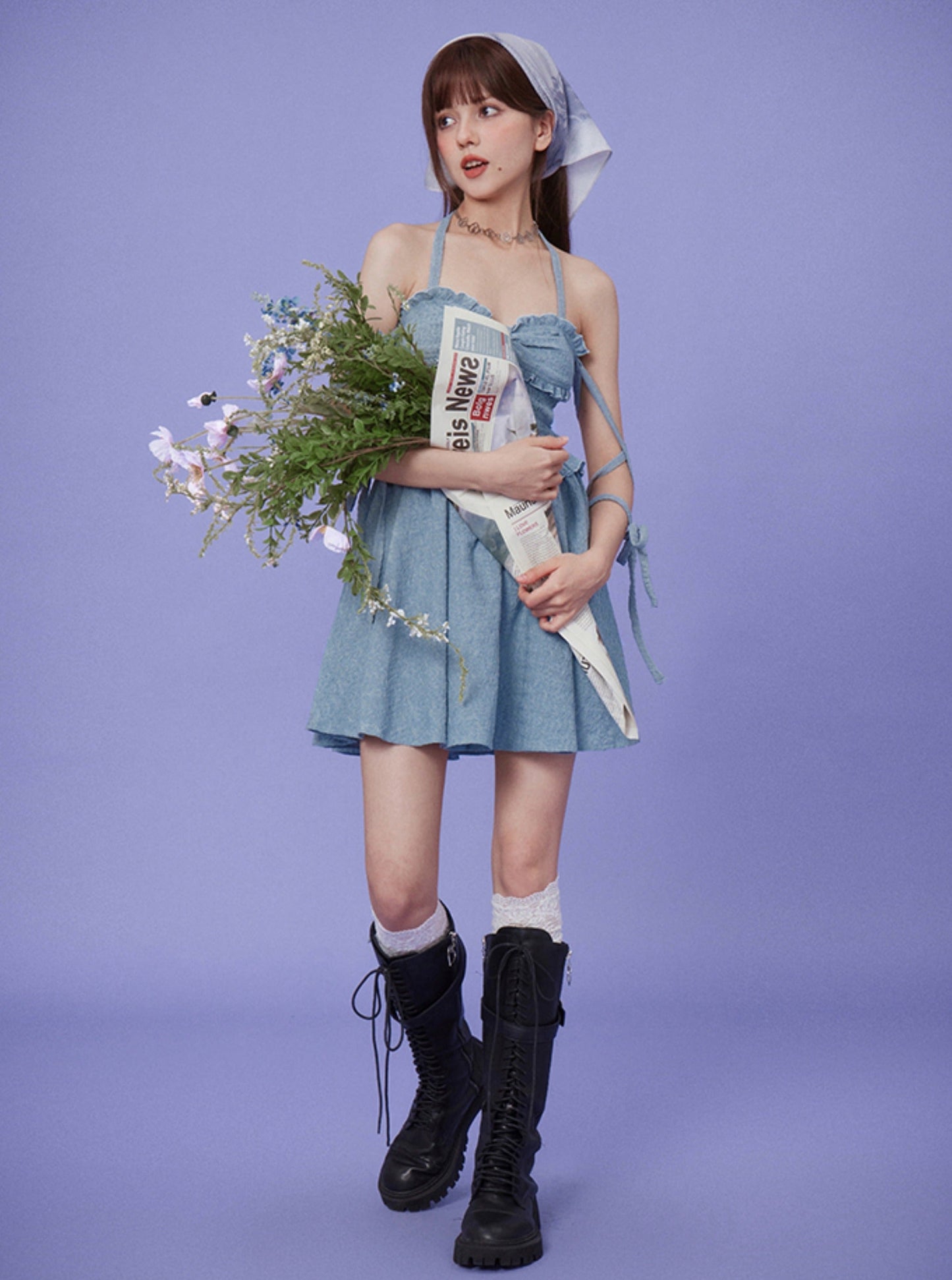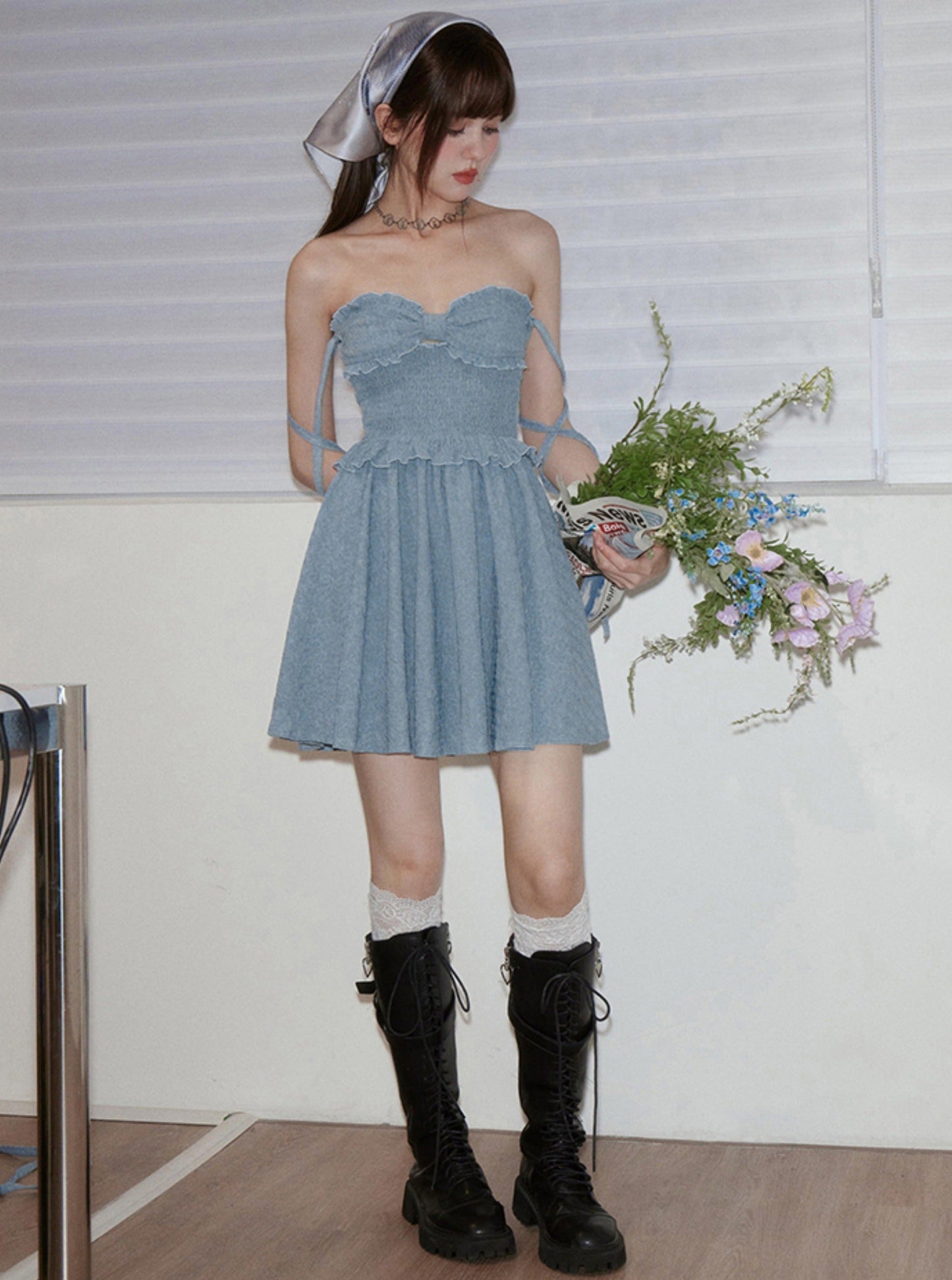 Grey Blue Sweet Holiday Dress