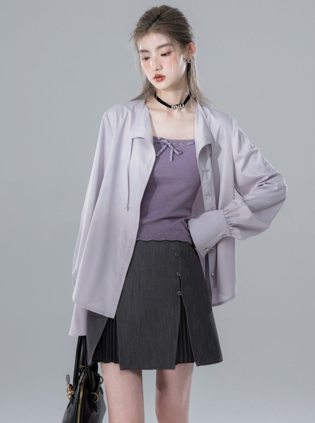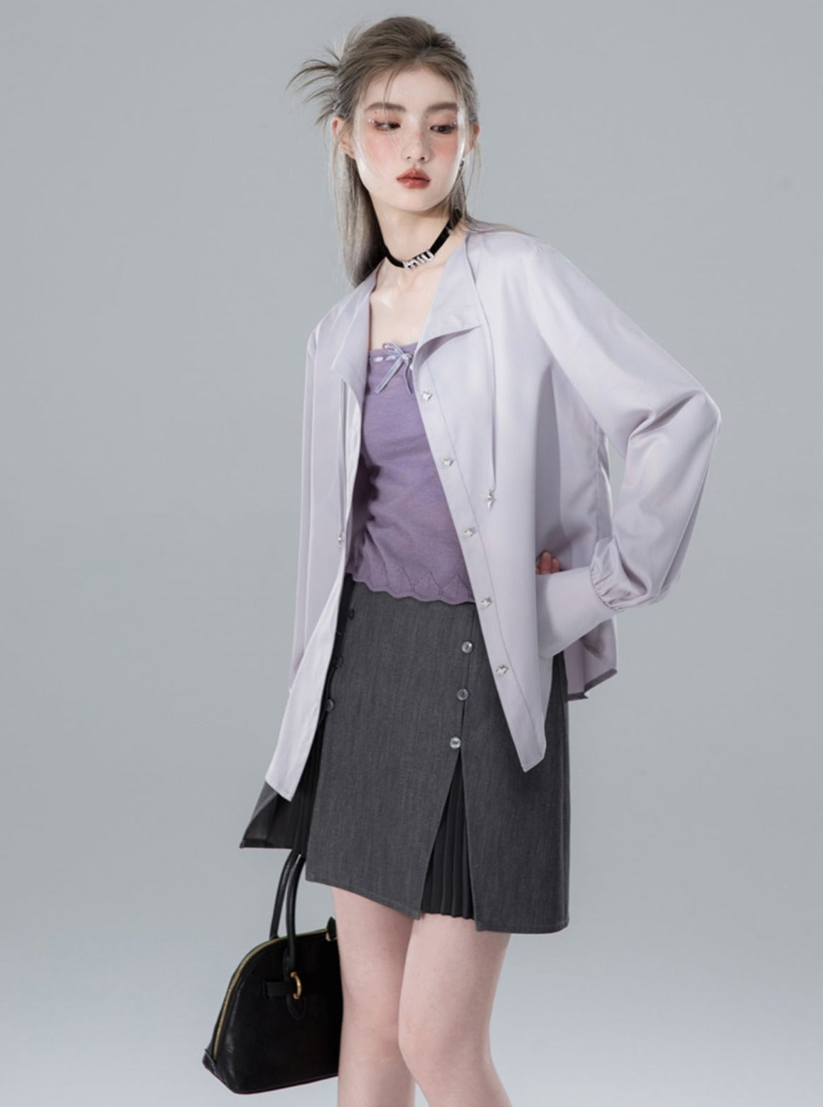 Grey Purple Lace Design Shirt