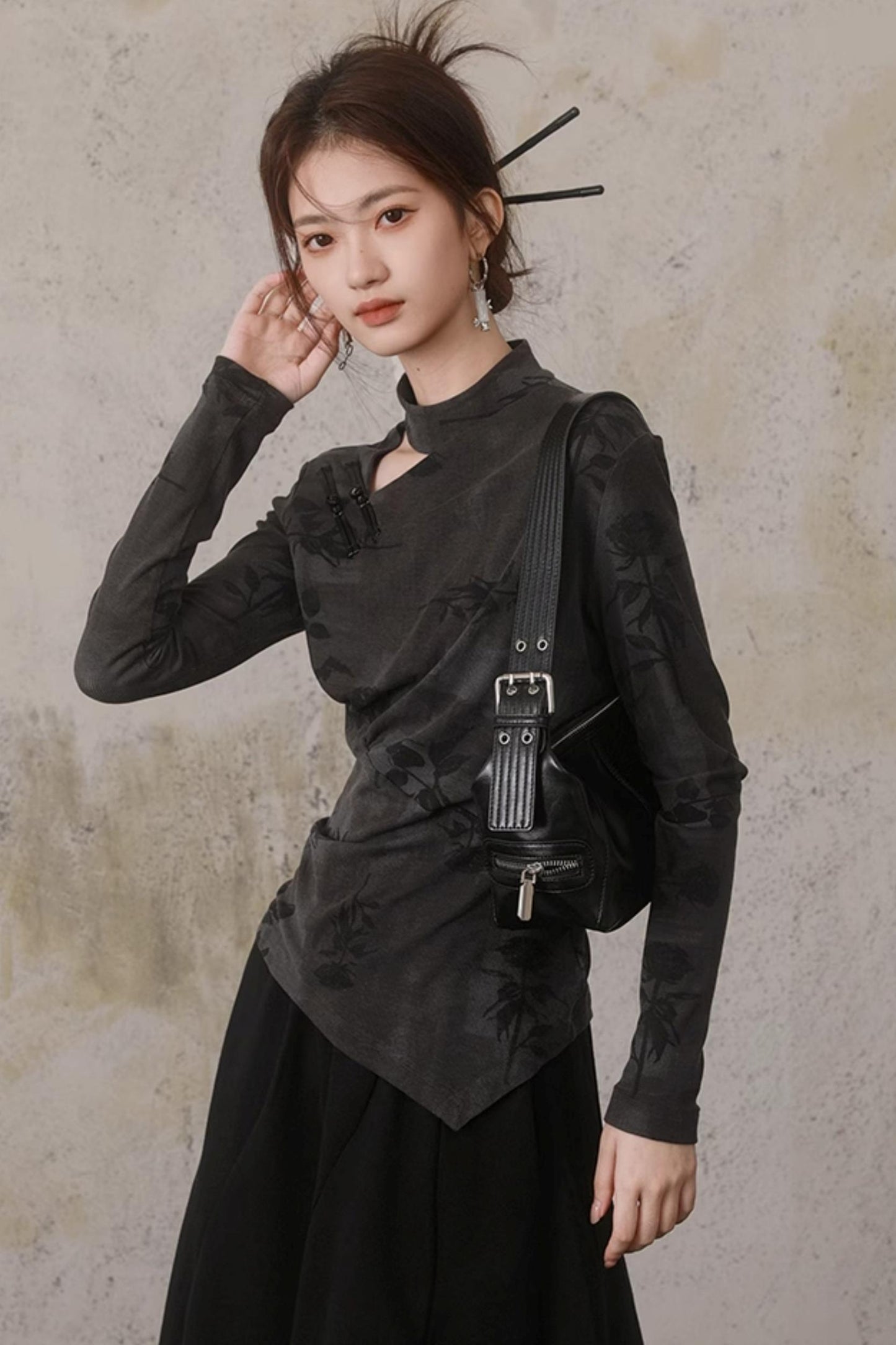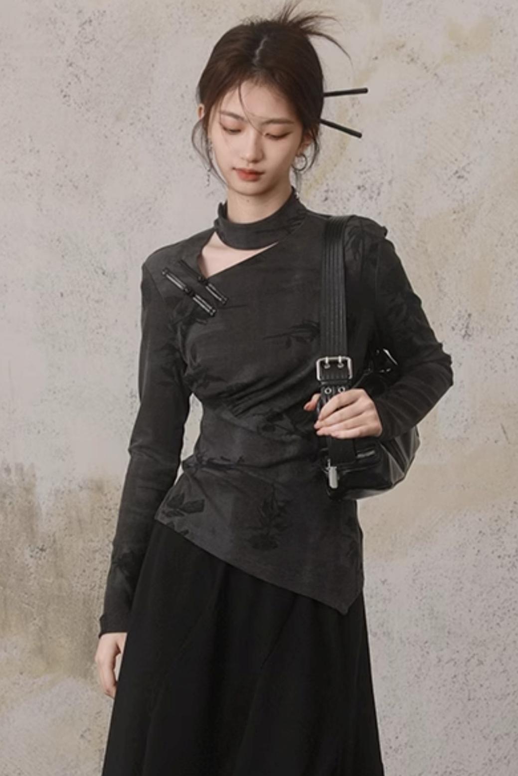 Hollow Design Long-Sleeved Chinese Top