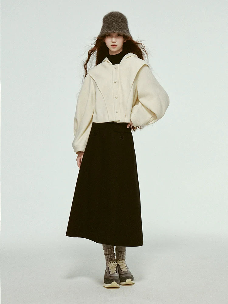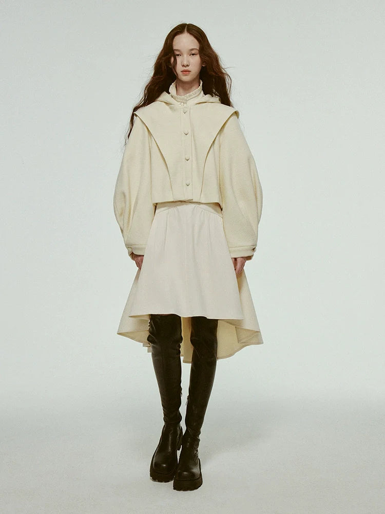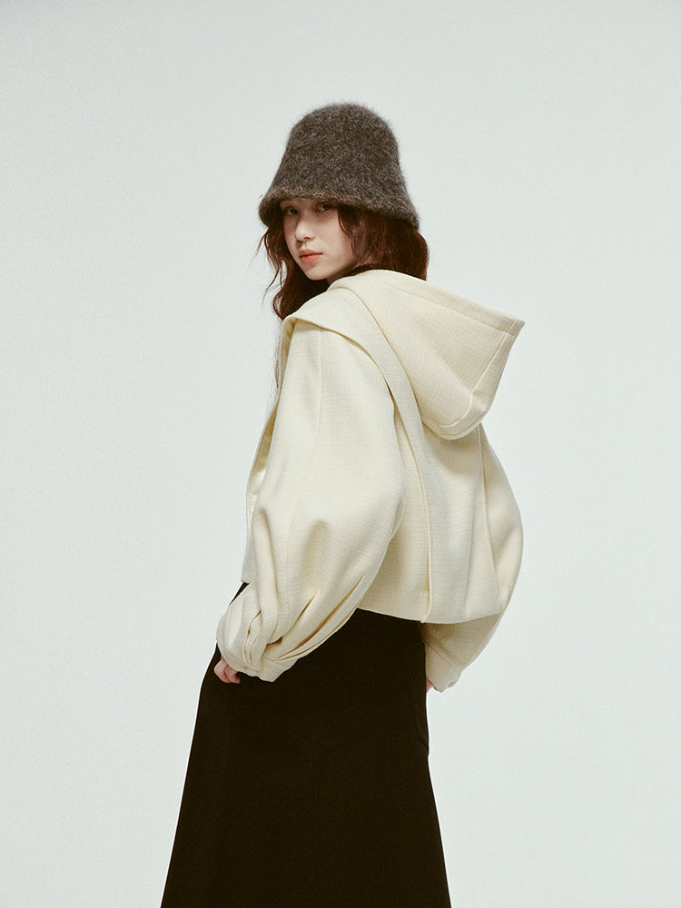 hooded short pleated lantern jacket