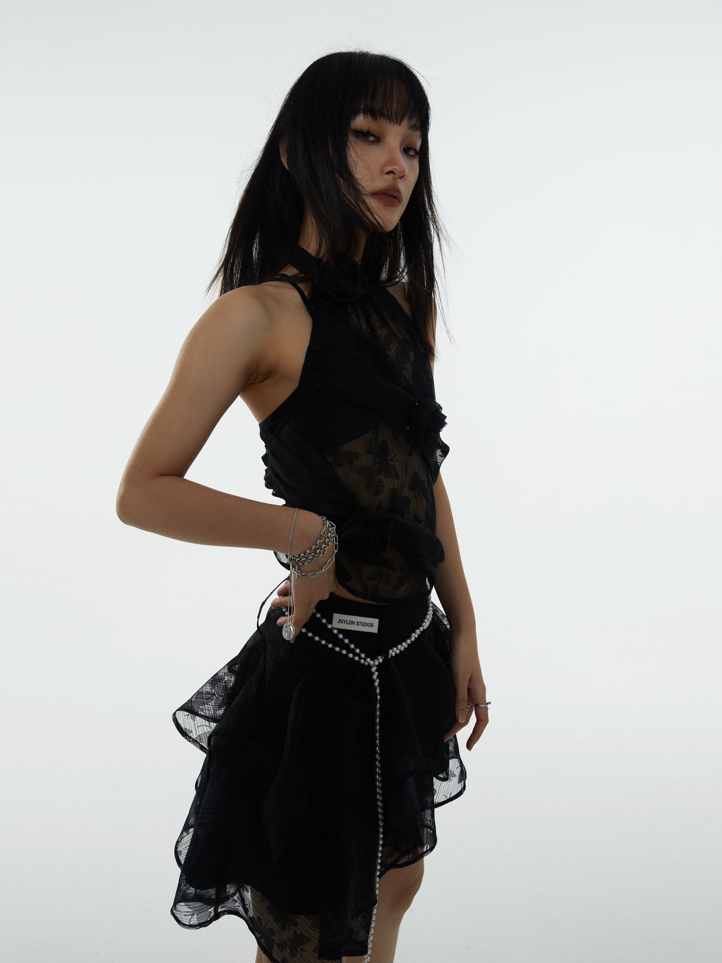 Ruffle Tulle Design Asymmetrical Mini Skirt
