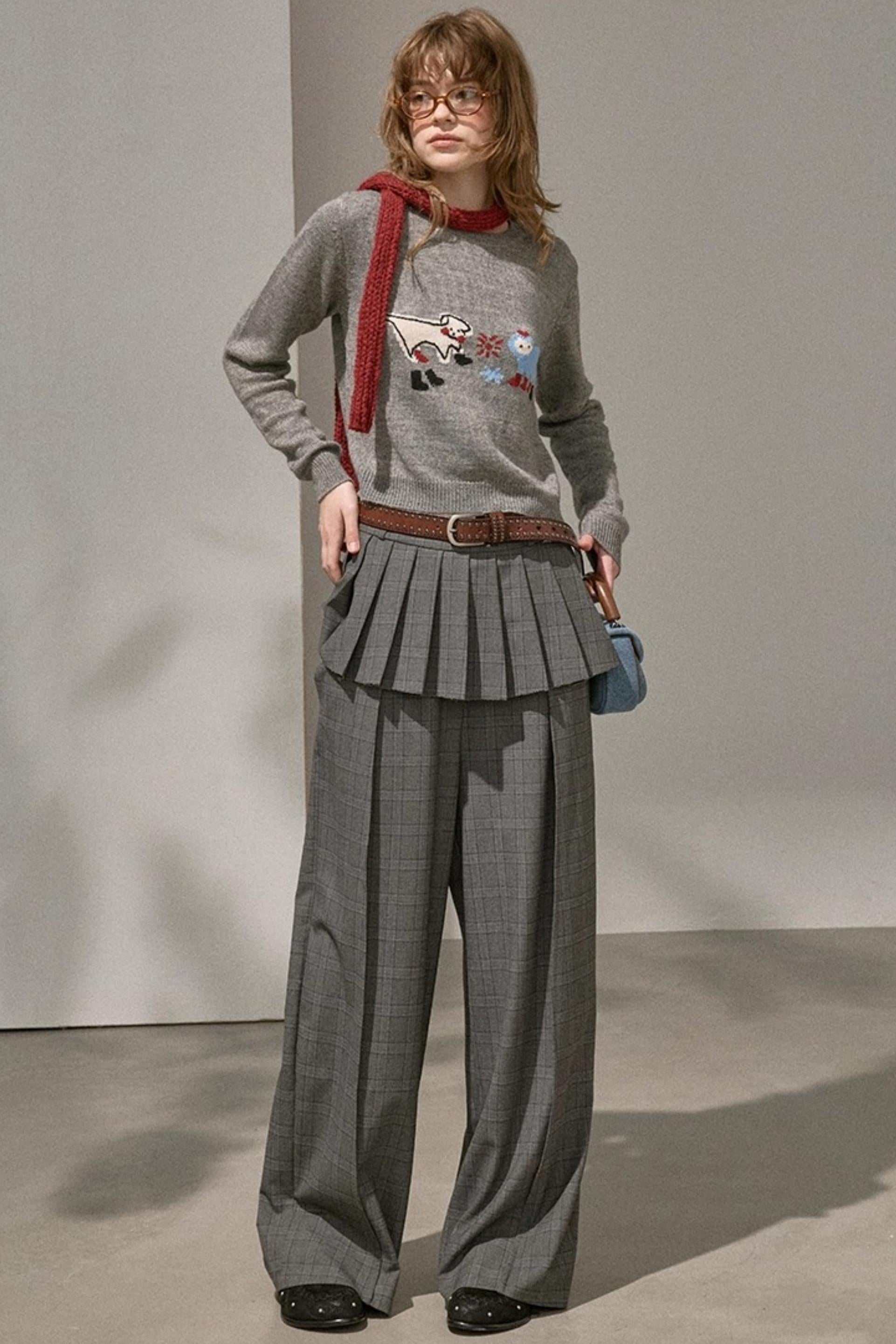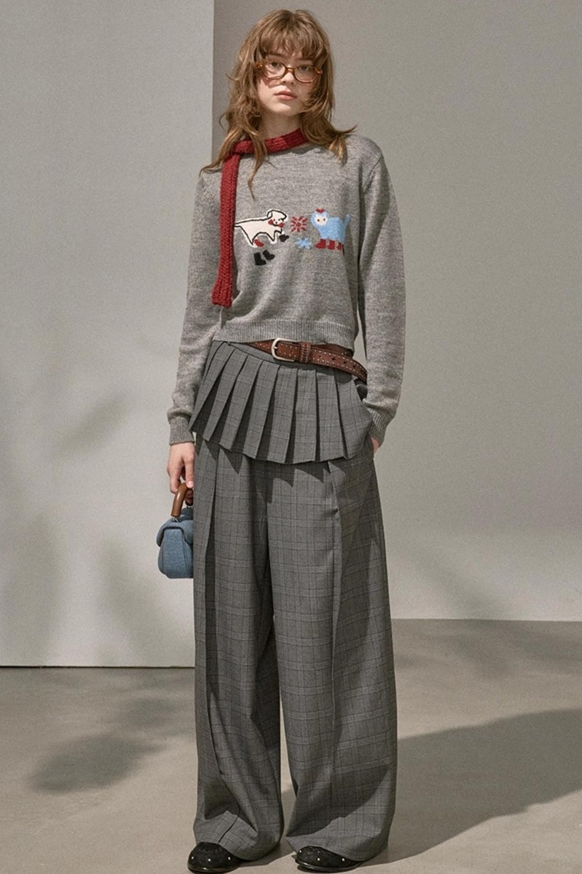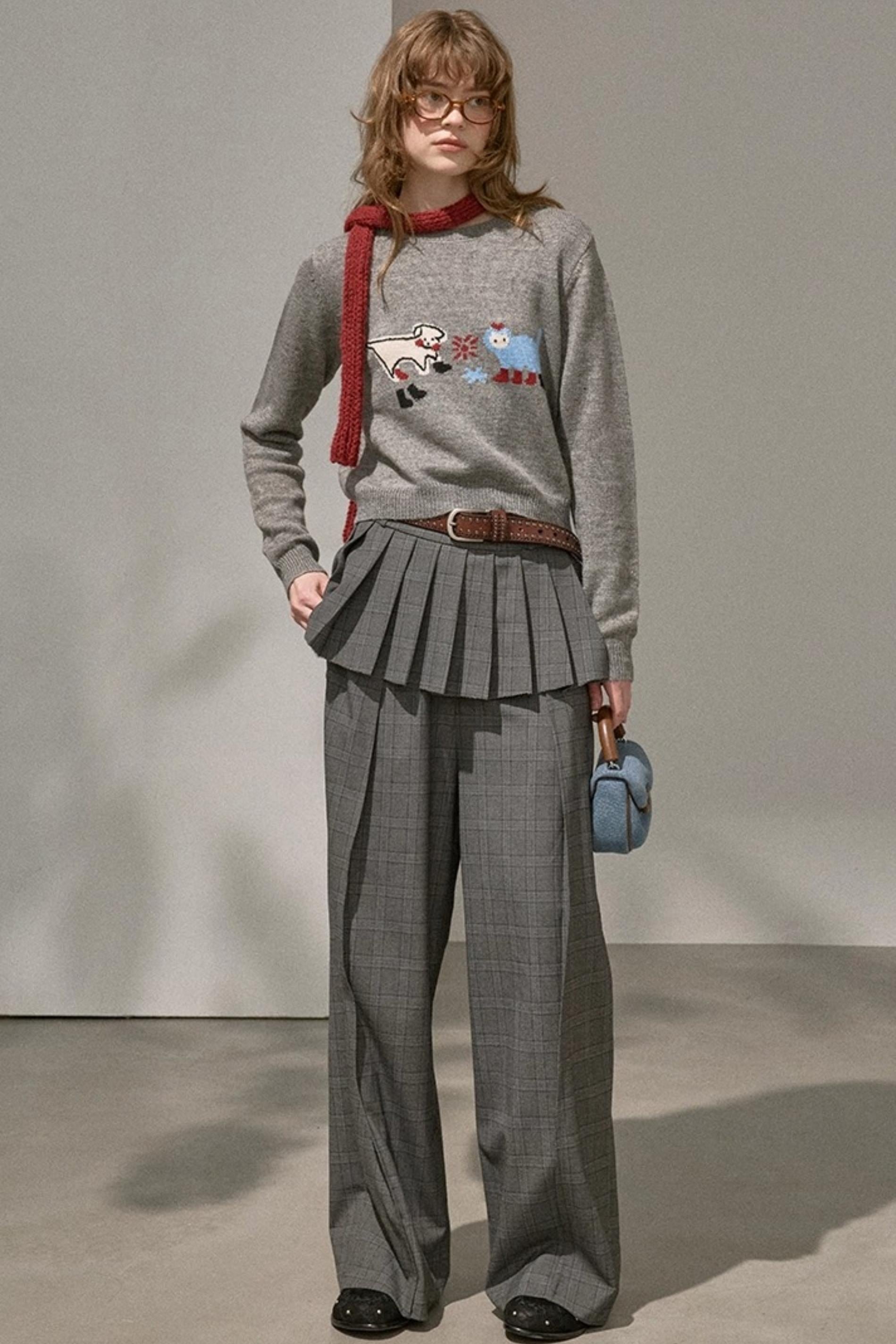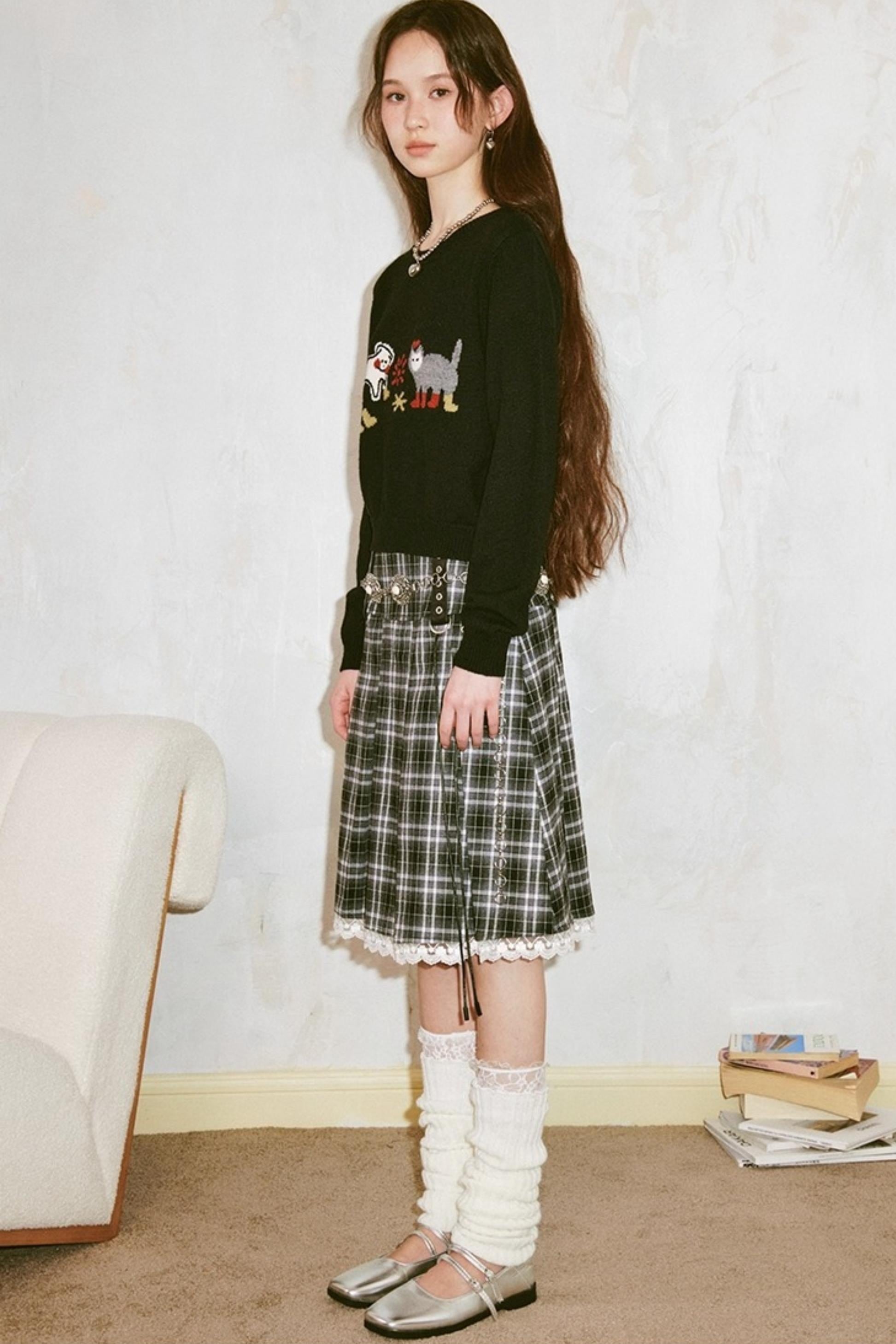Kitten And Puppy Embroidered Wool Blend Knit Sweater