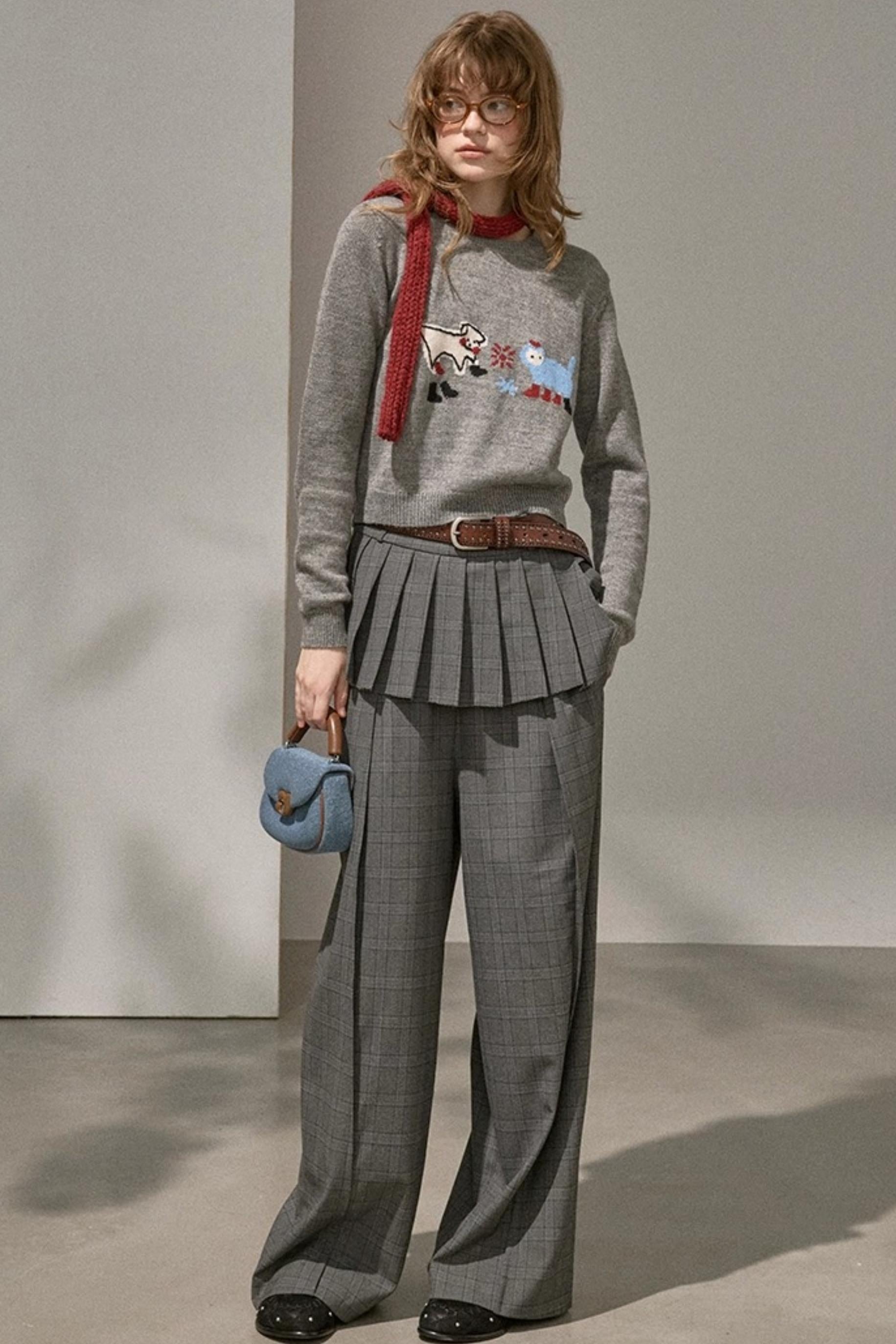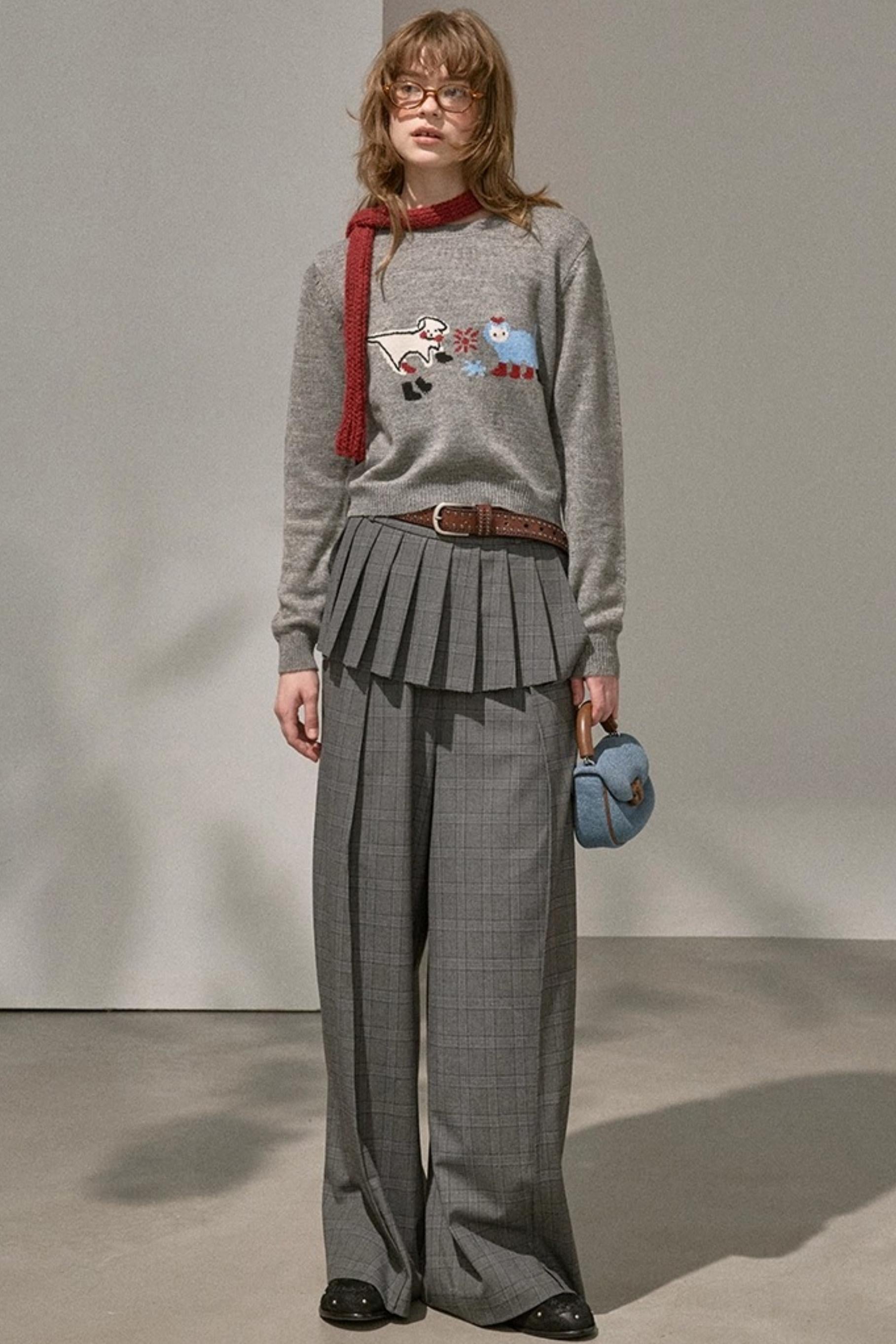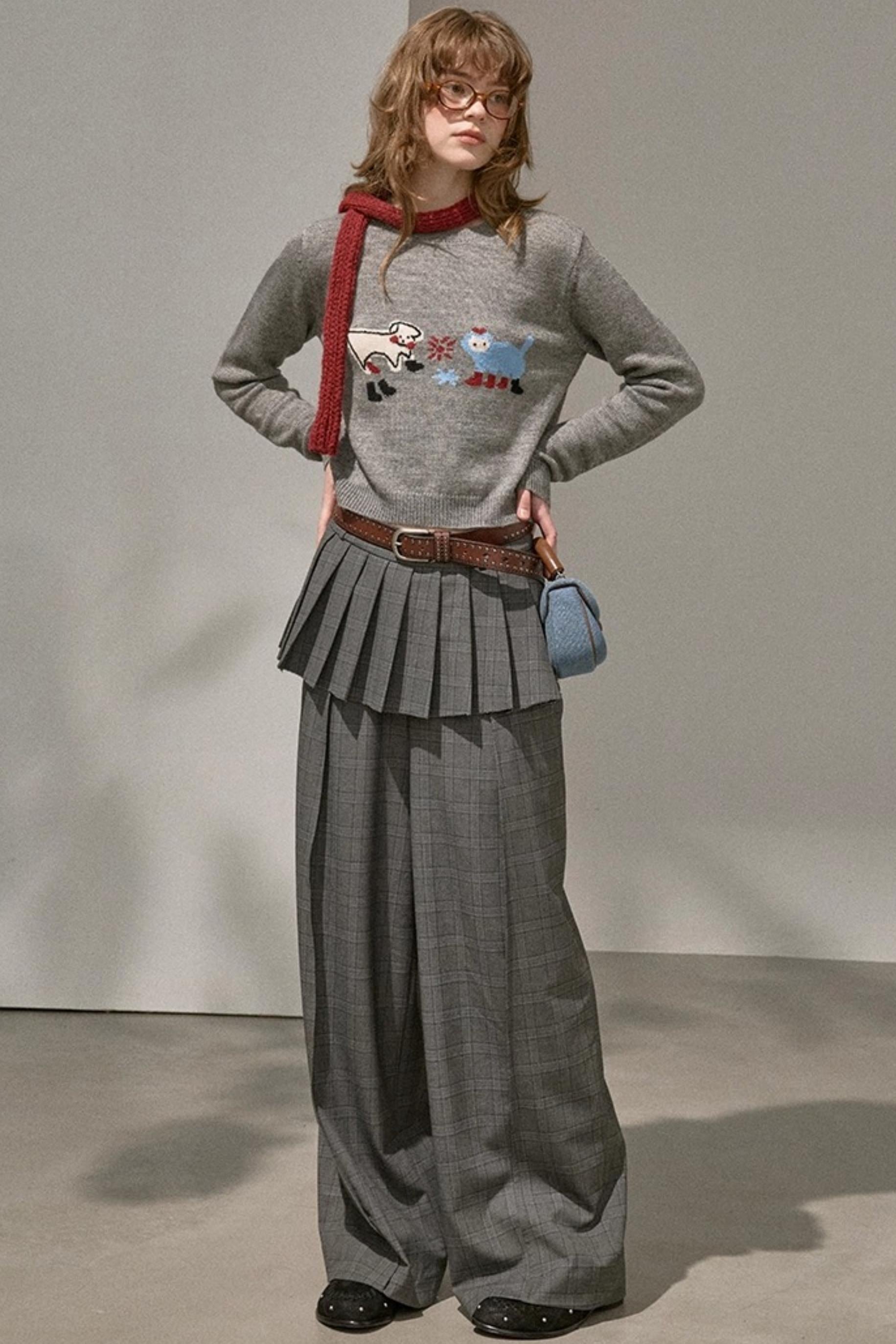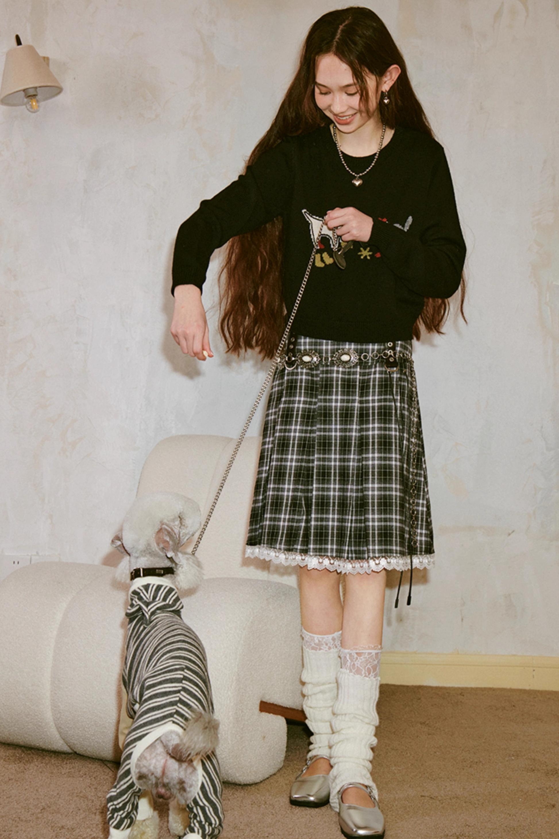 Kitten And Puppy Embroidered Wool Blend Knit Sweater