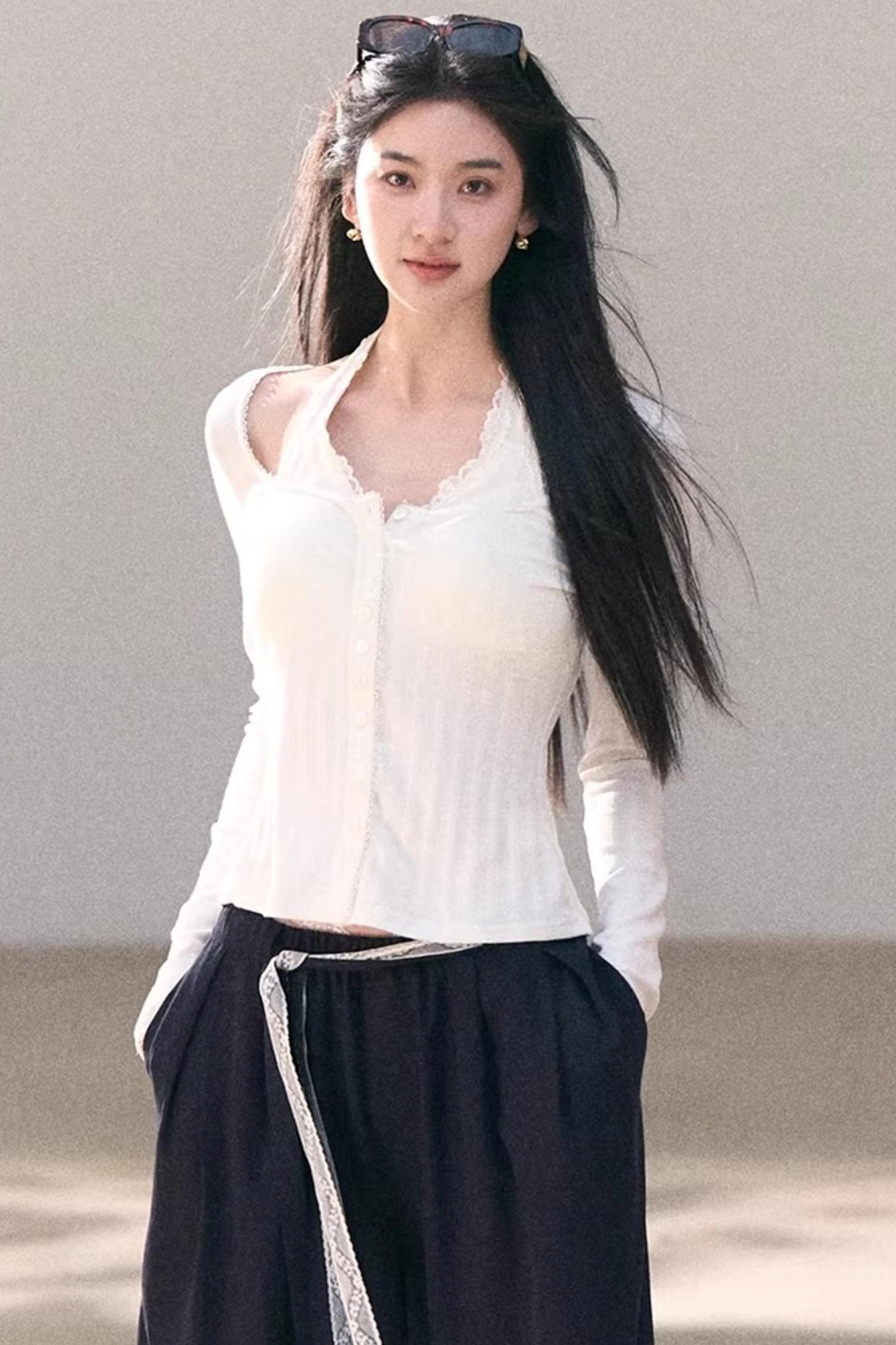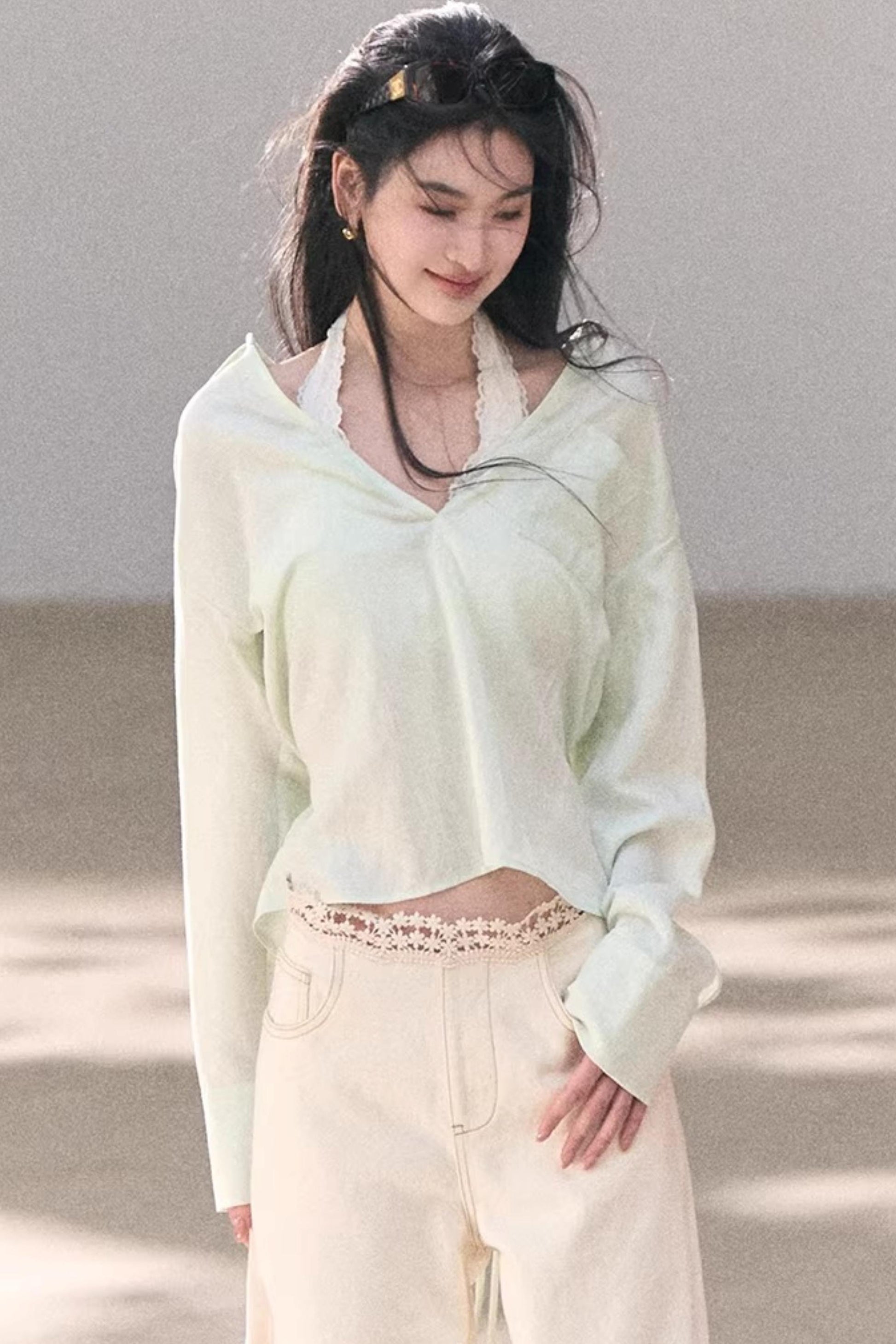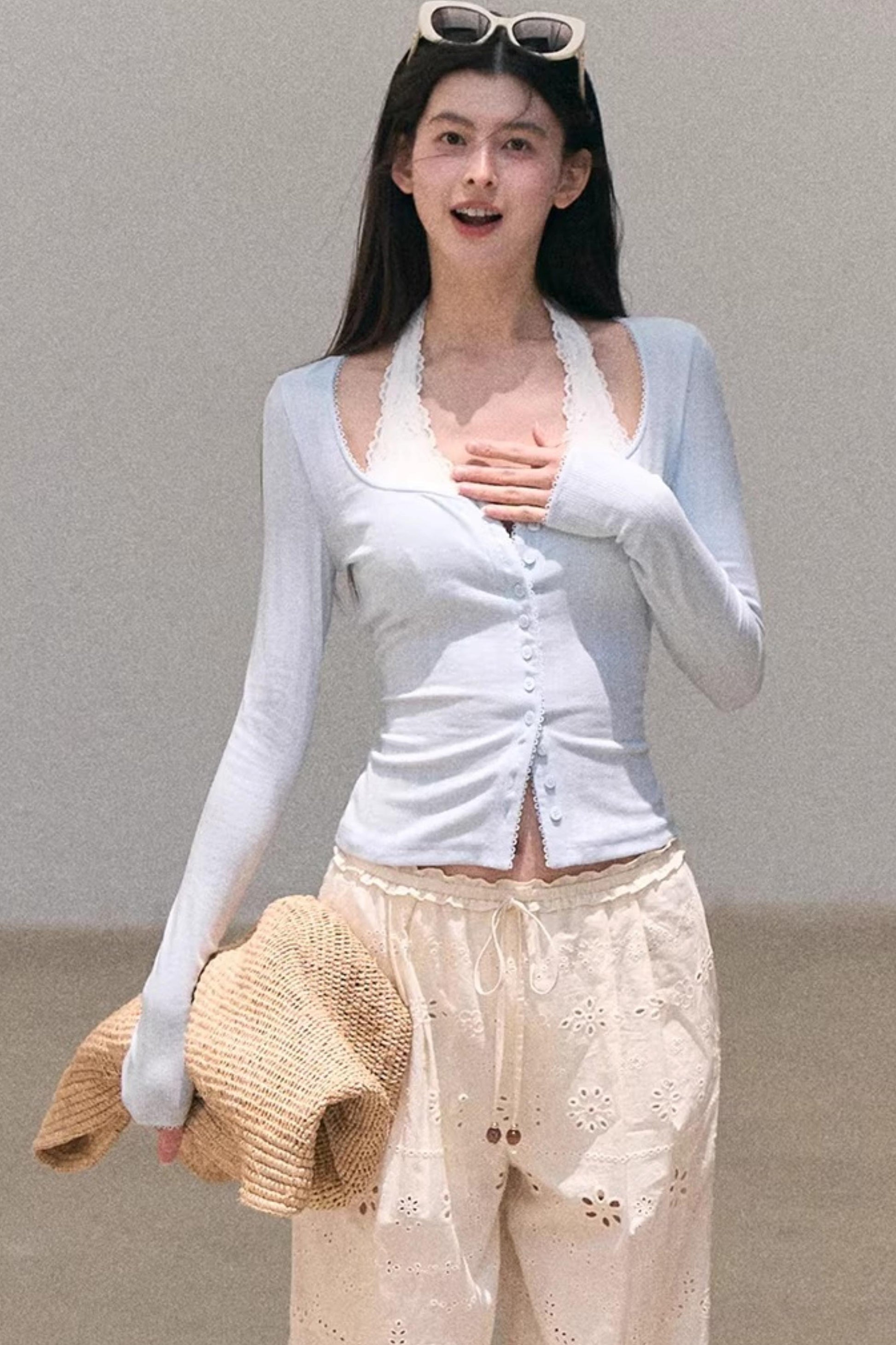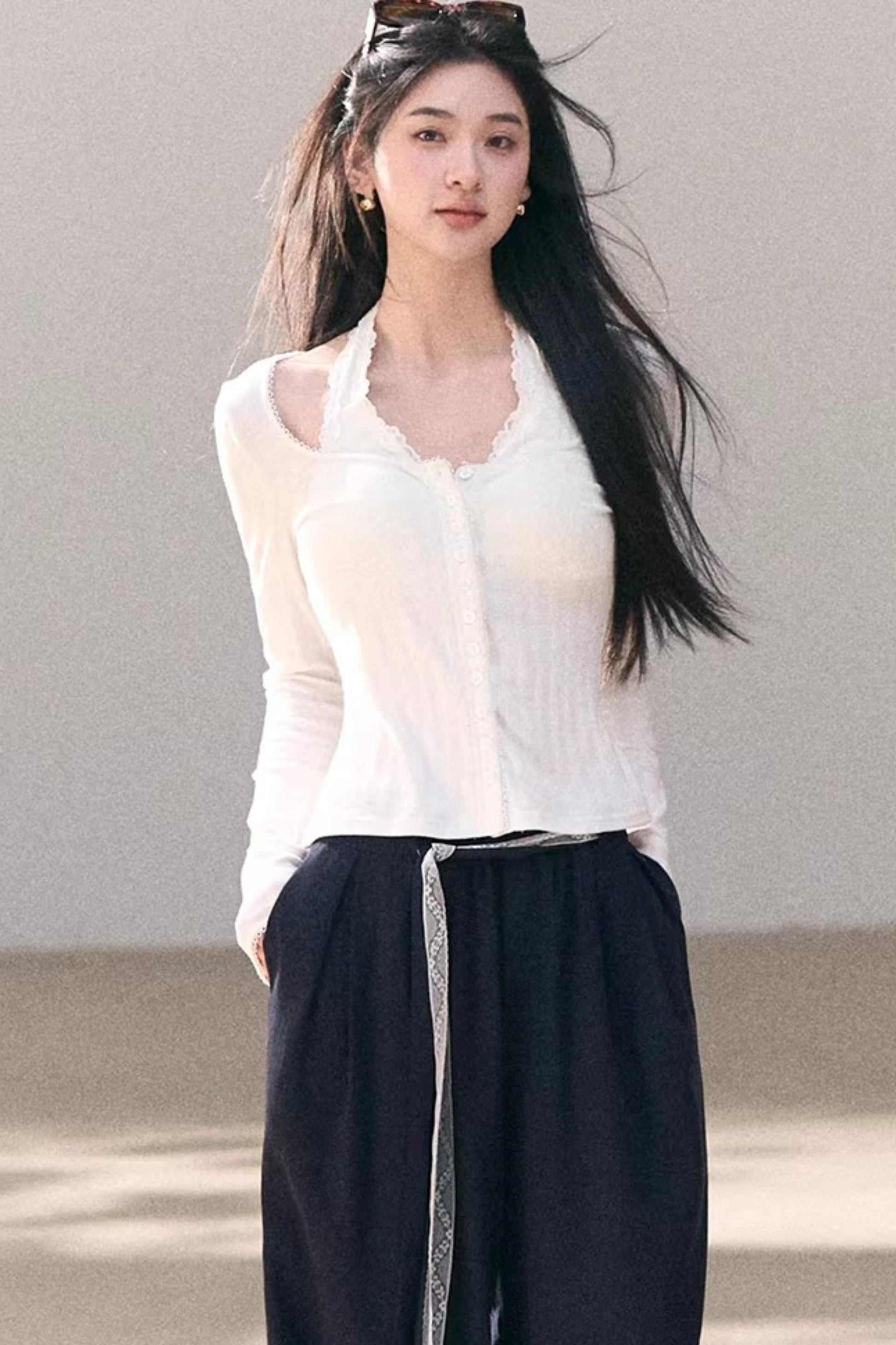 Lace-Trimmed Halter Neck Camisole