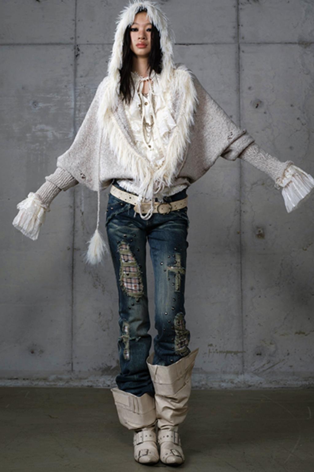 Lazy Vintage Knit Bat Sleeve Hooded Sweater Coat