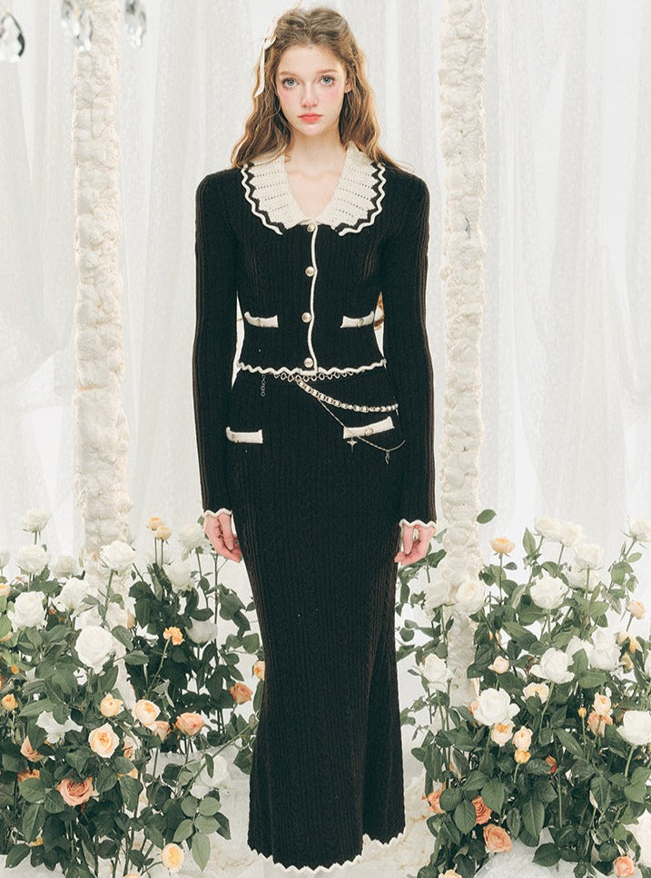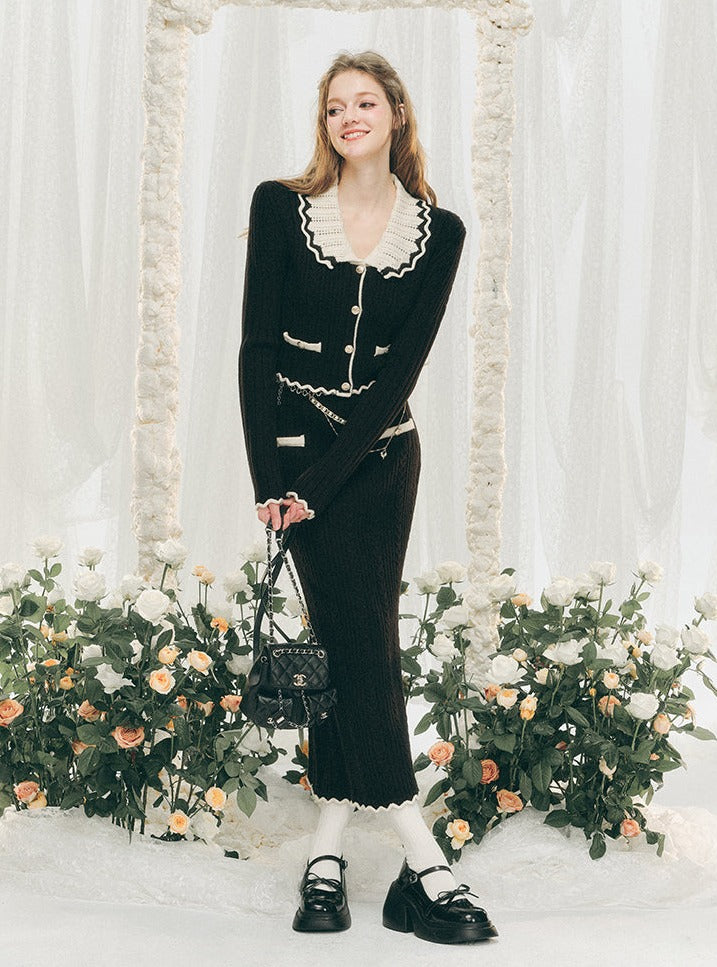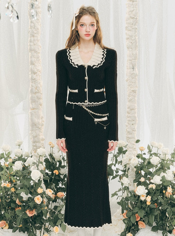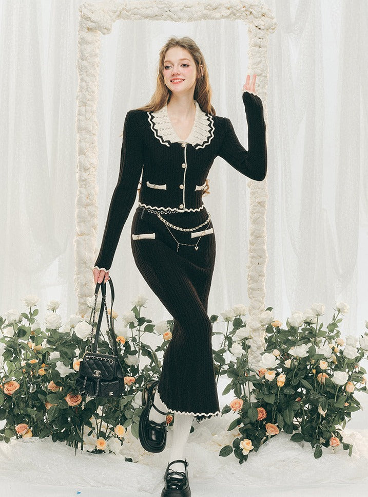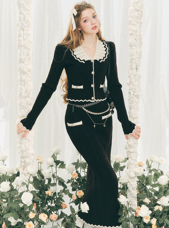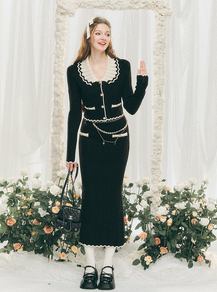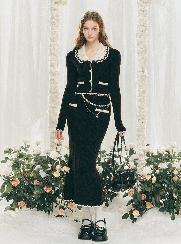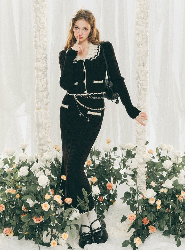 Knitted Cardigan And Hip Skirt Set