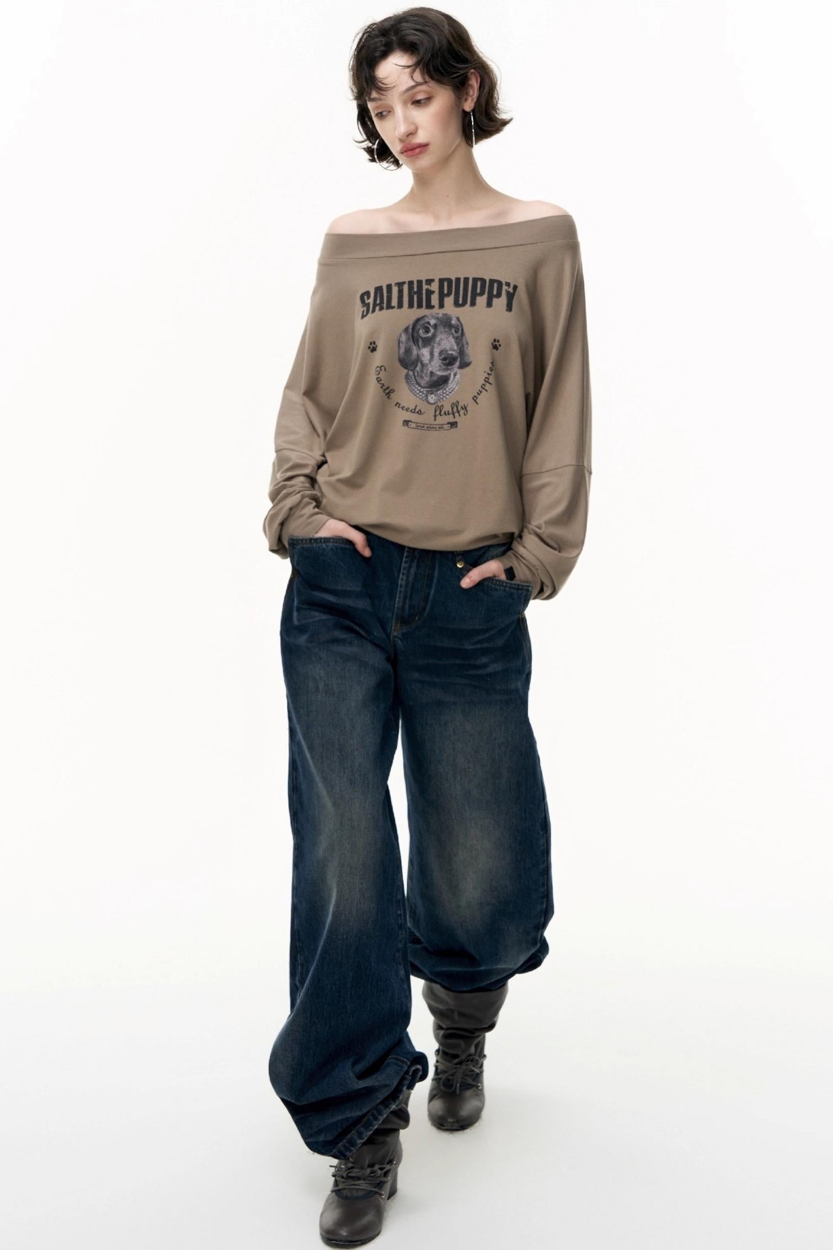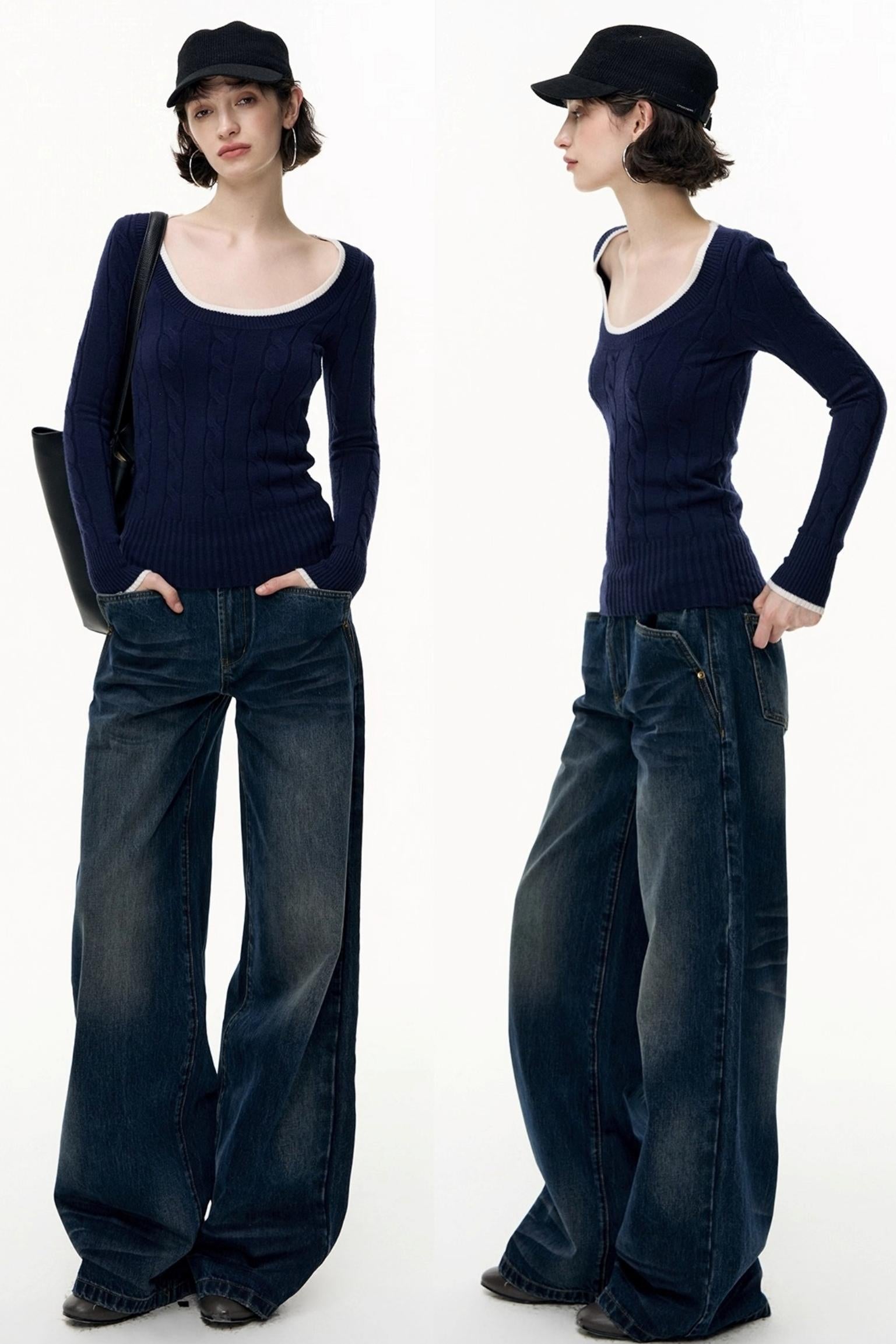 Loose Straight Wide-Leg Scimitar Jeans