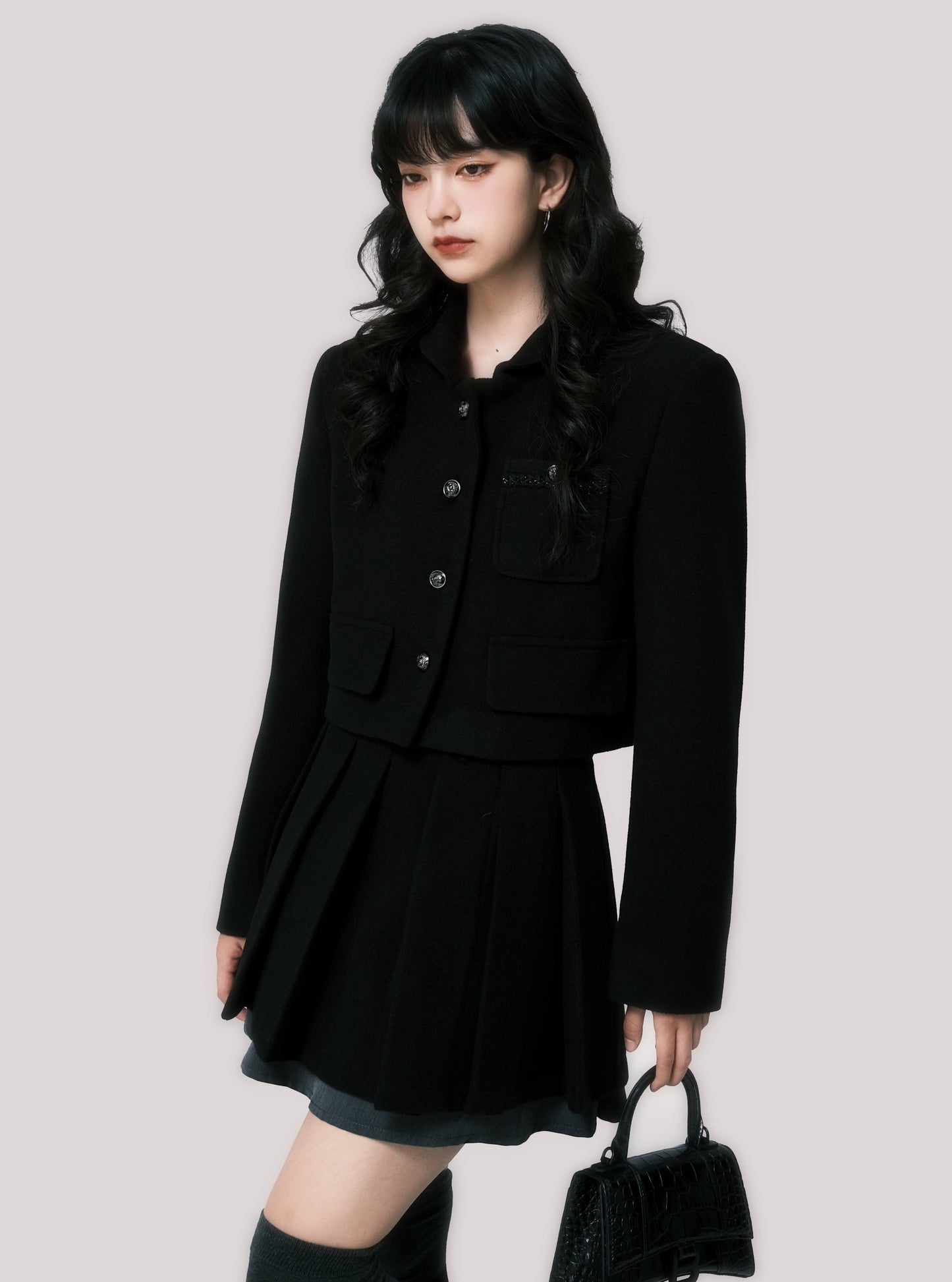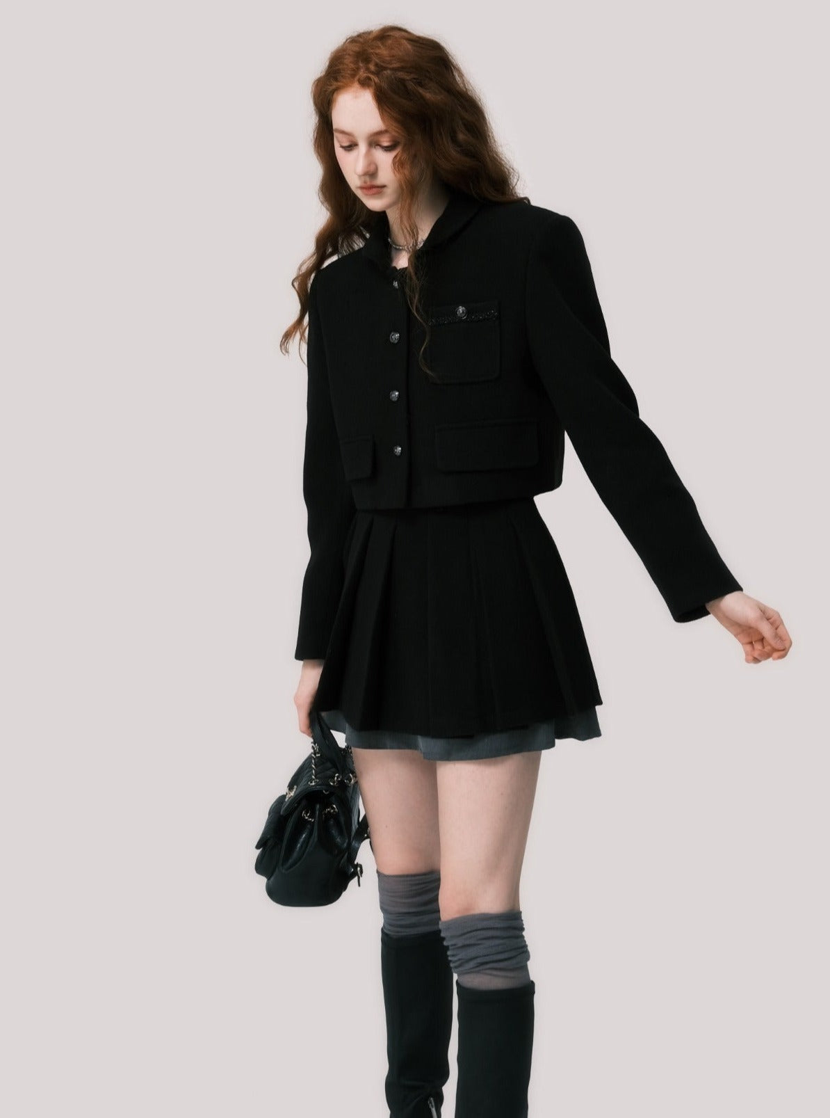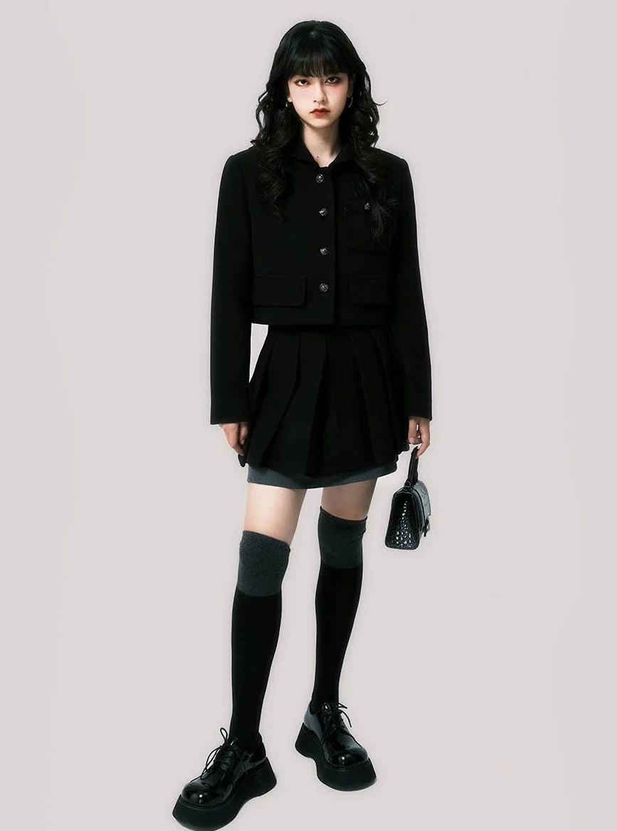 Short coat pleated skirt set