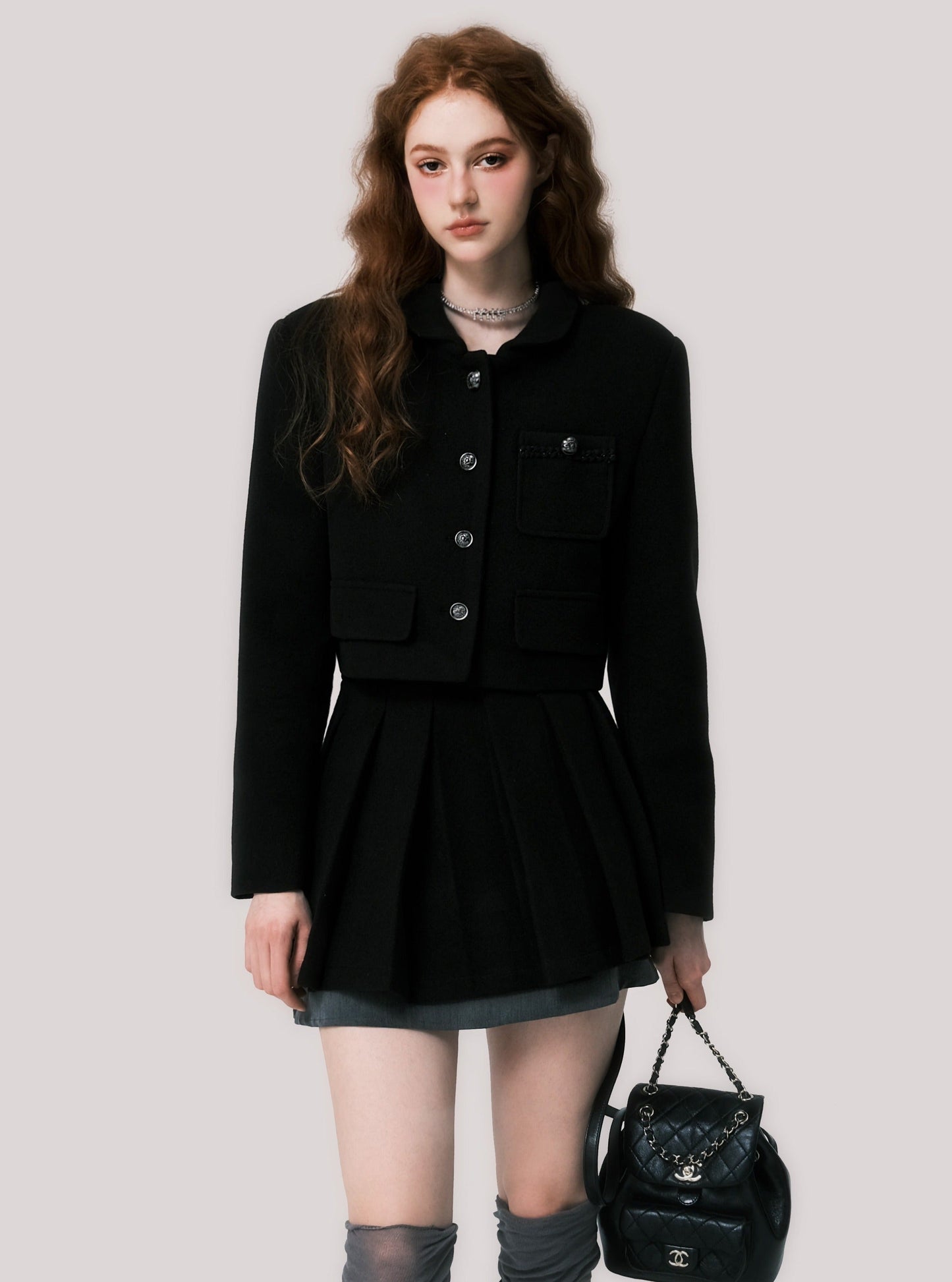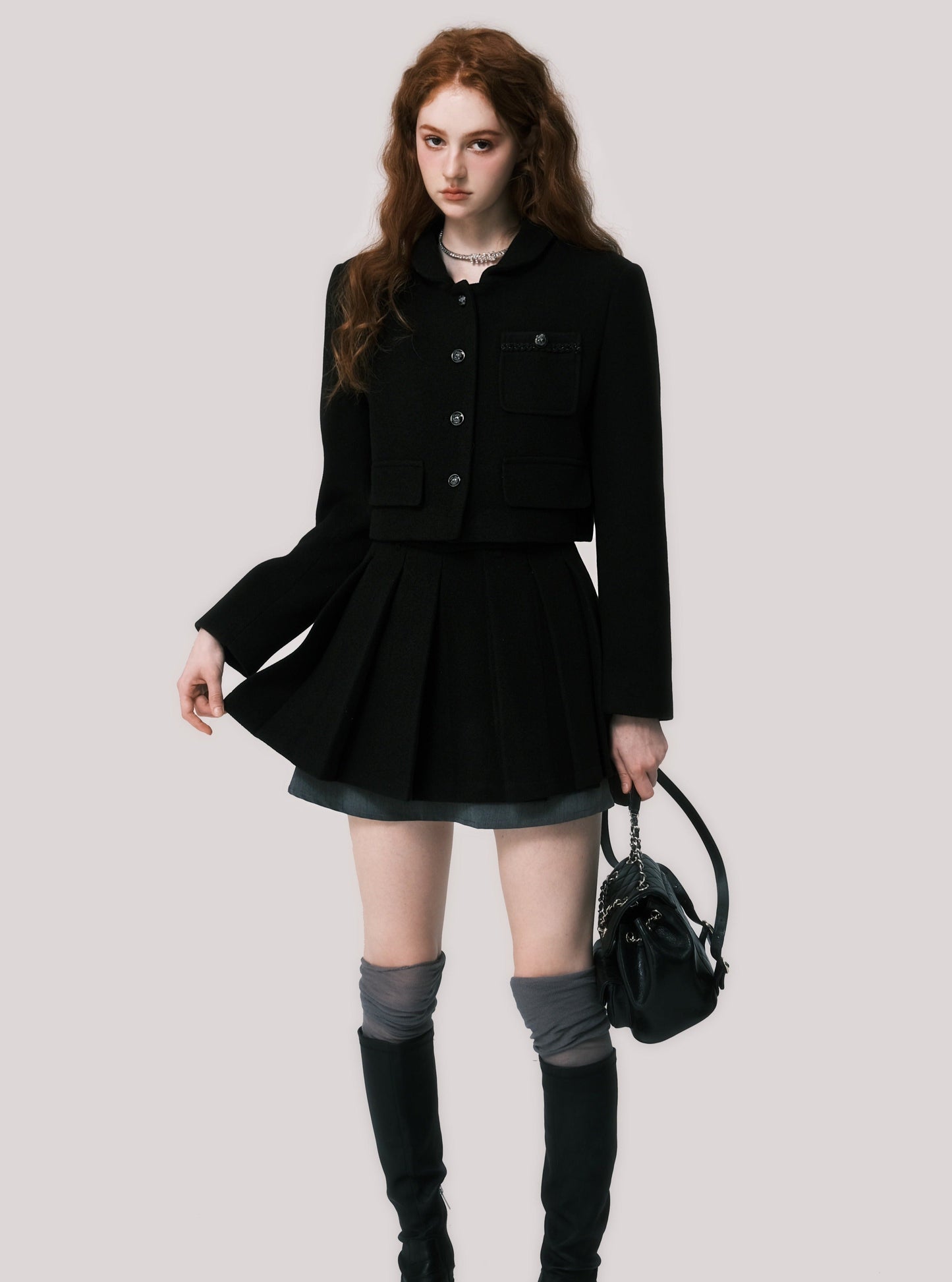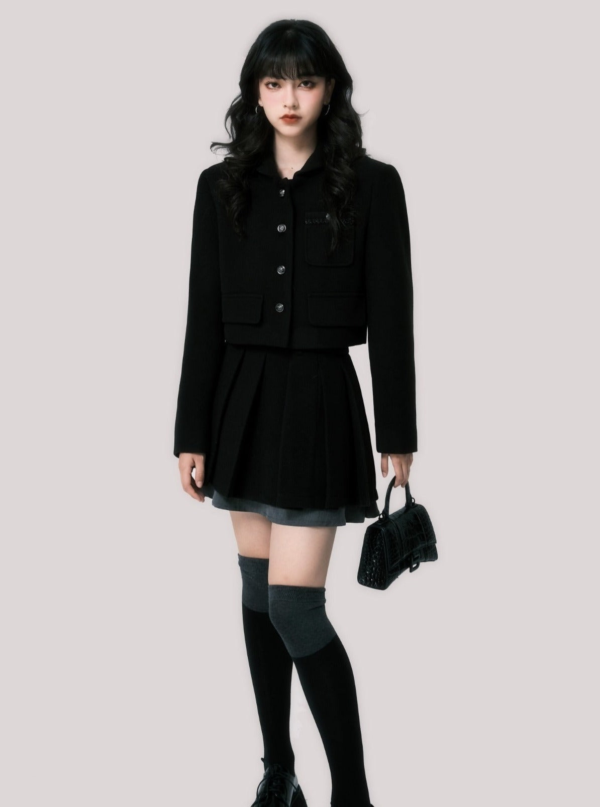 Short coat pleated skirt set