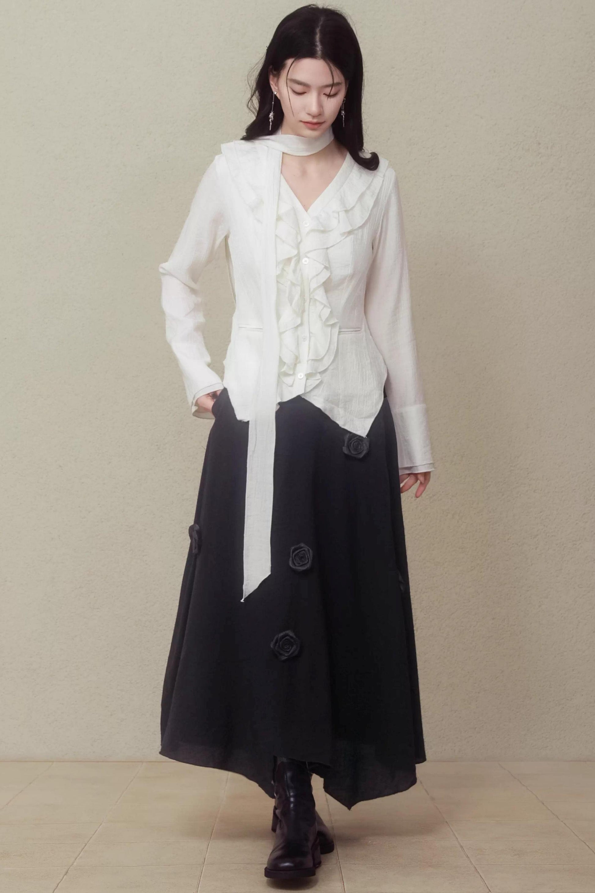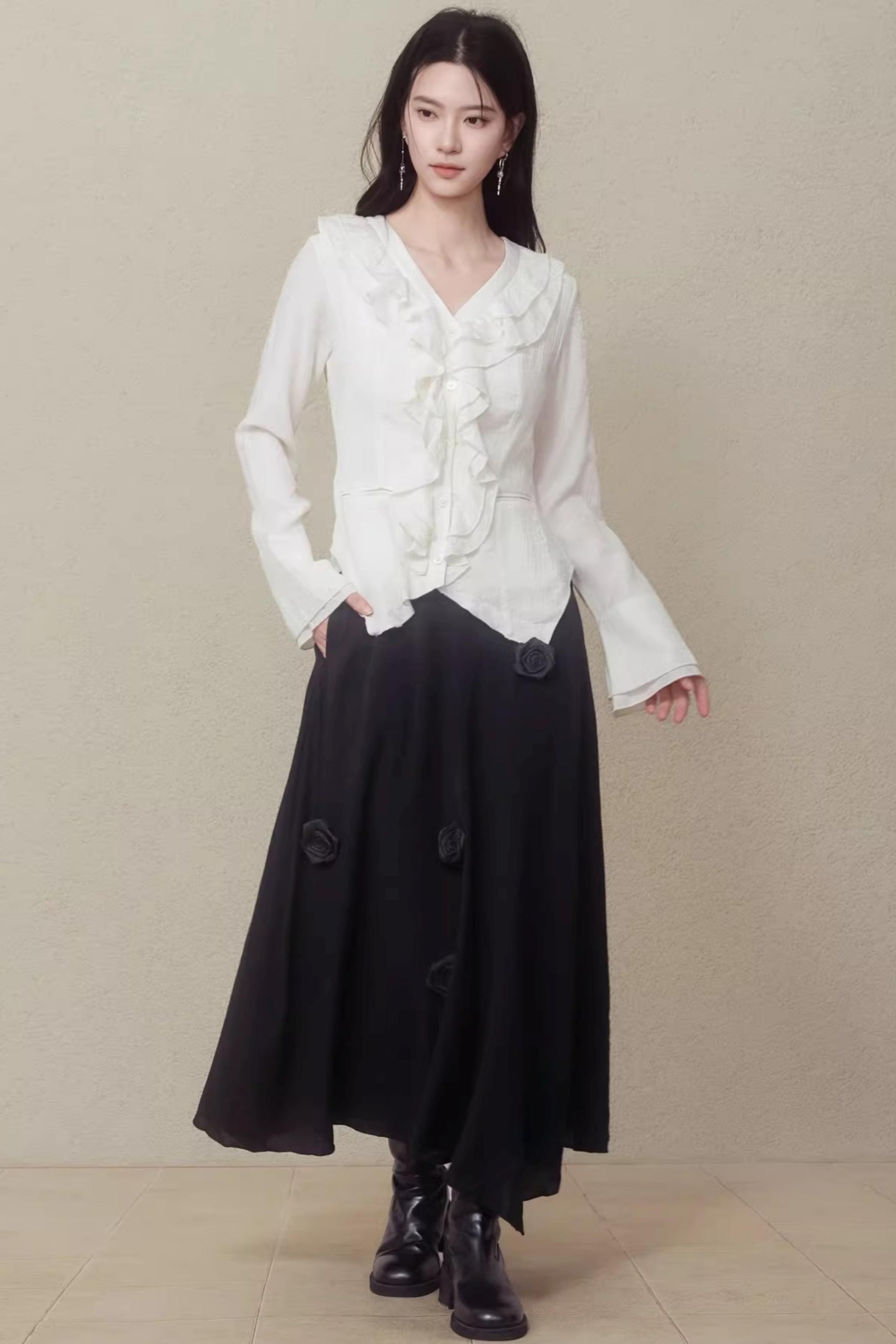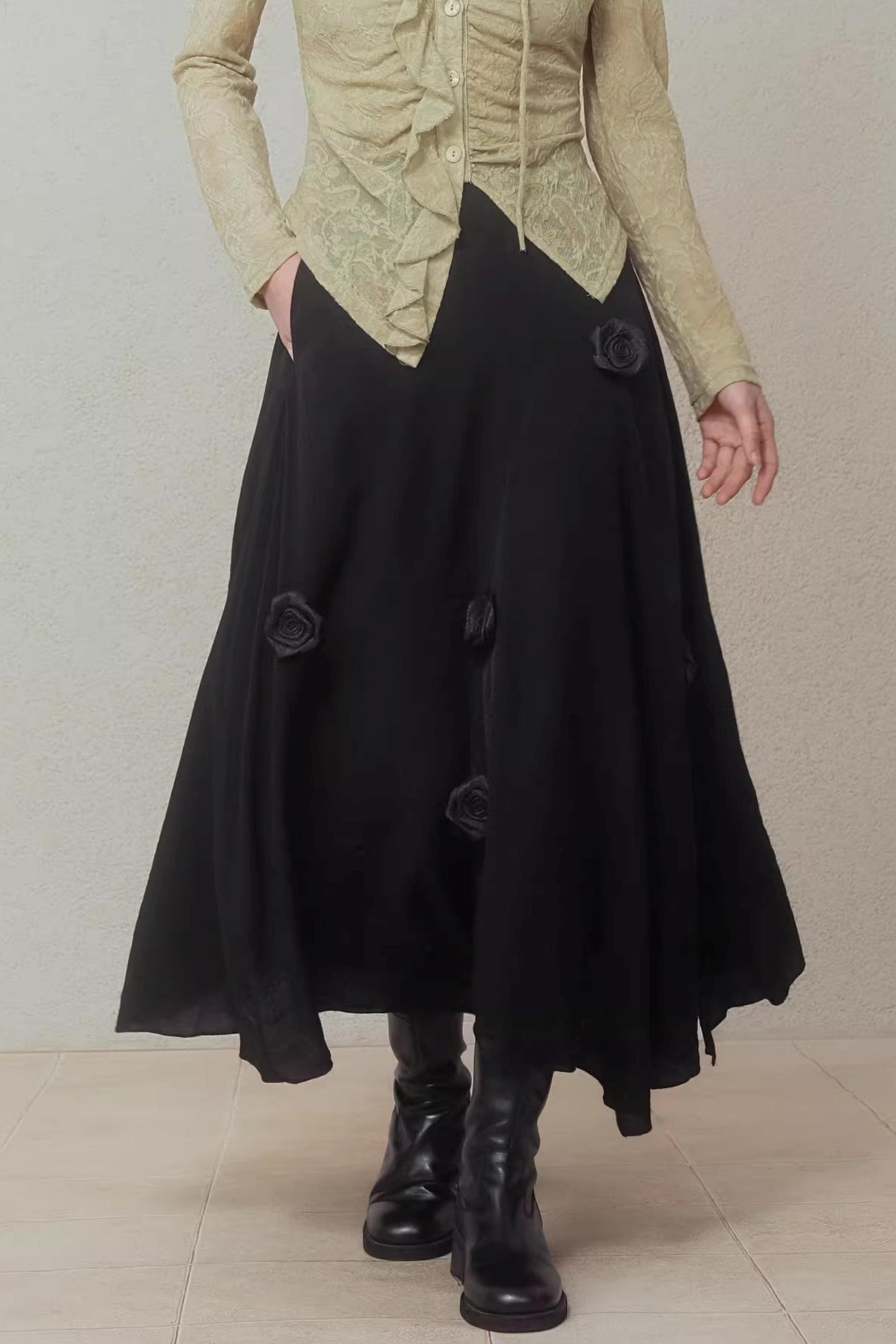 Night Black Floral Skirt