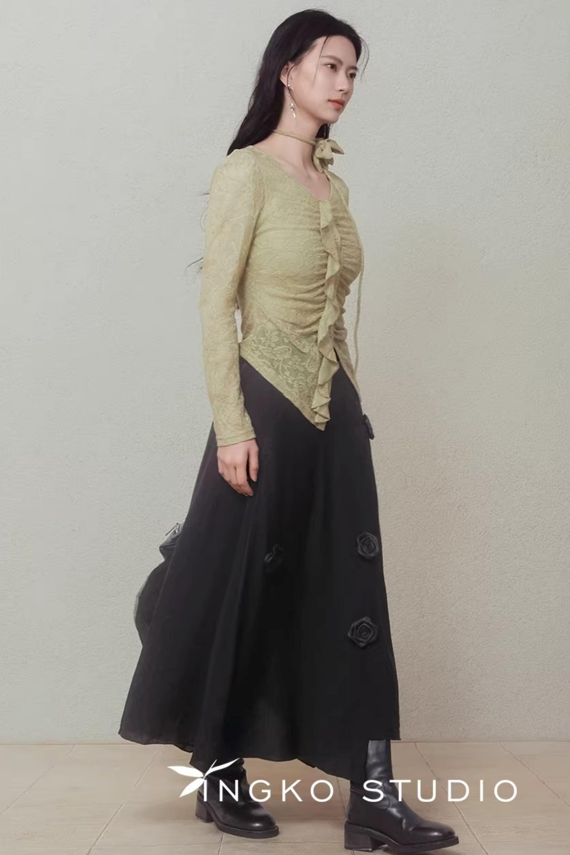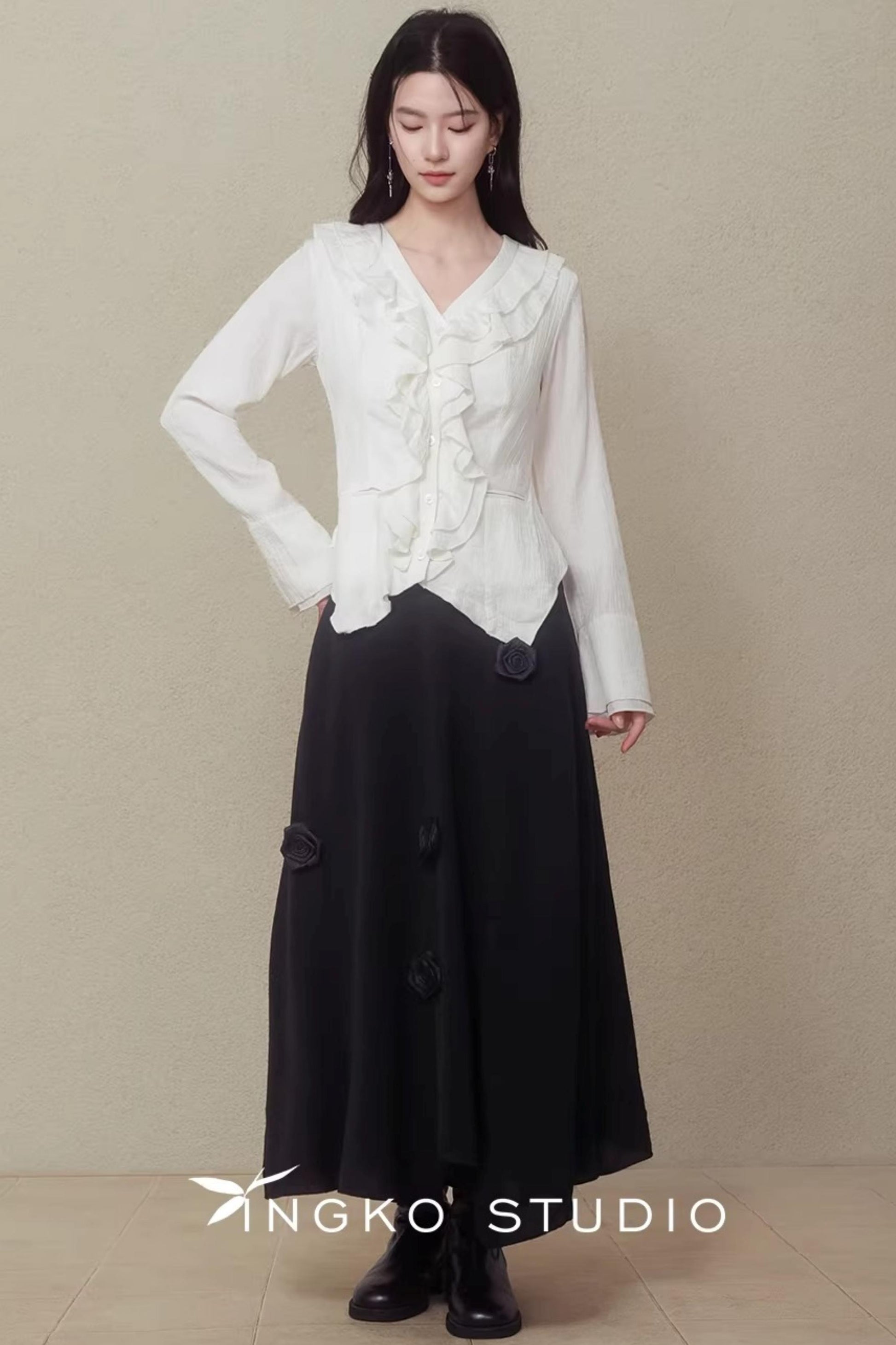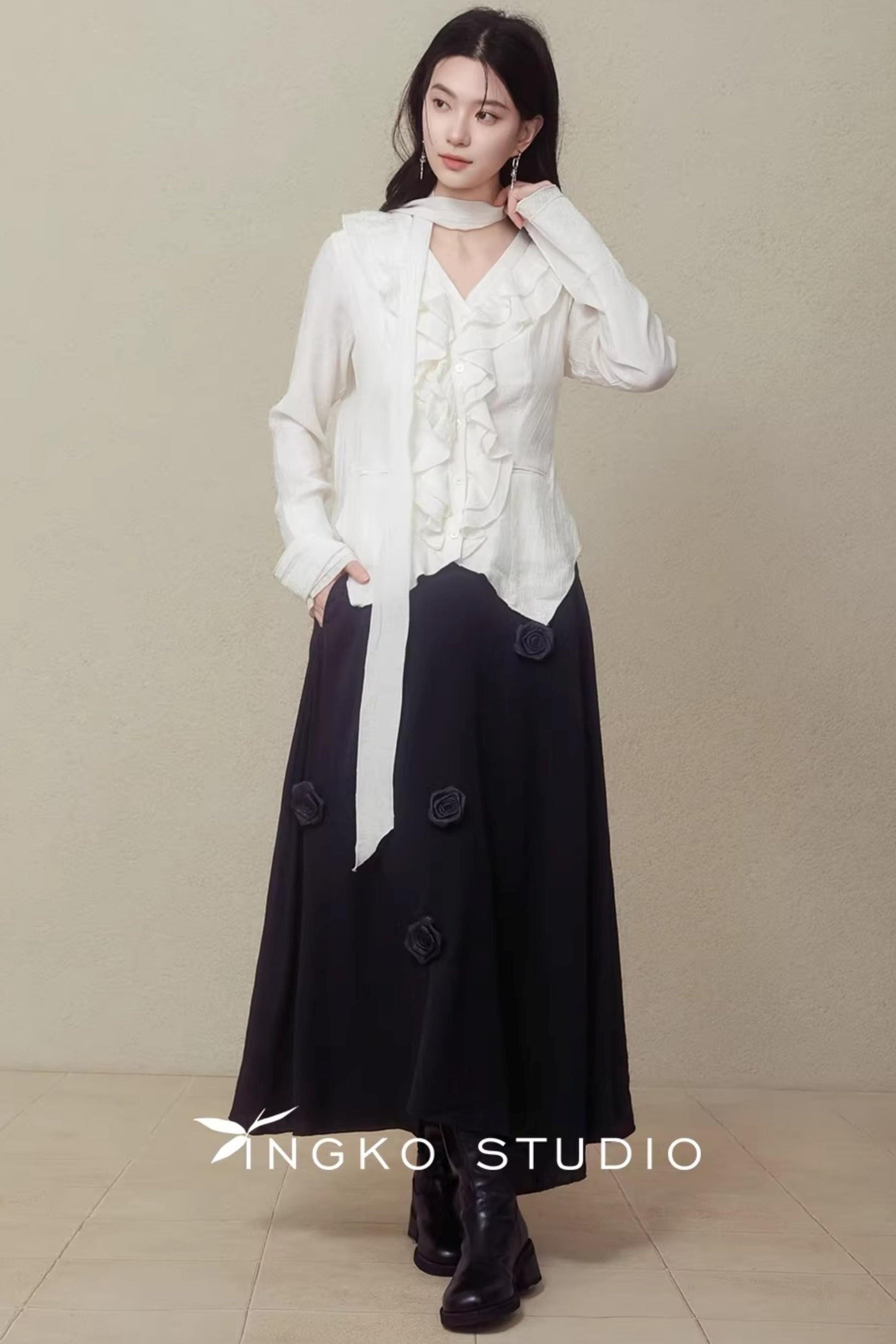 Night Black Floral Skirt
