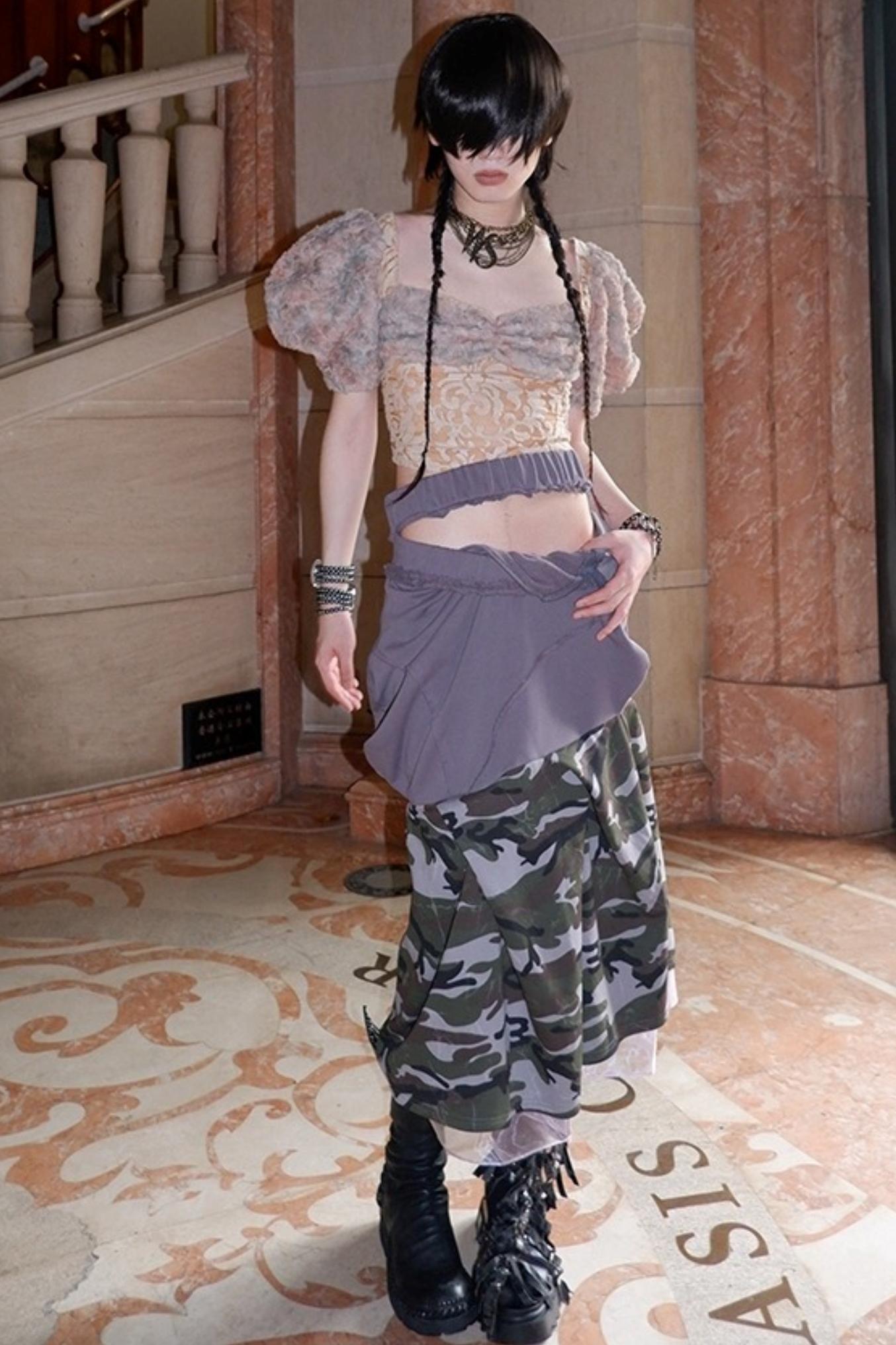 Patchwork Sheer Bud Strap Top
