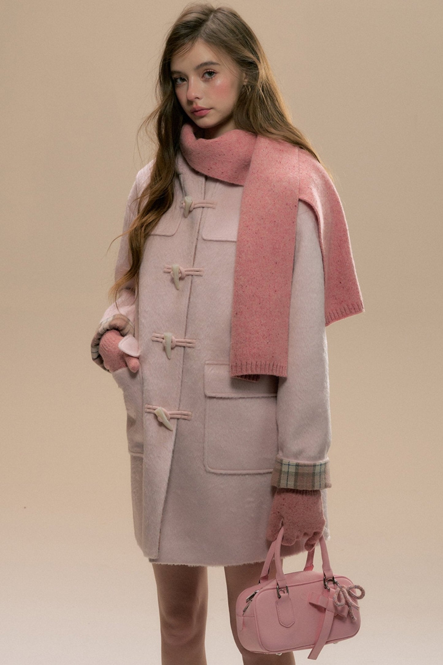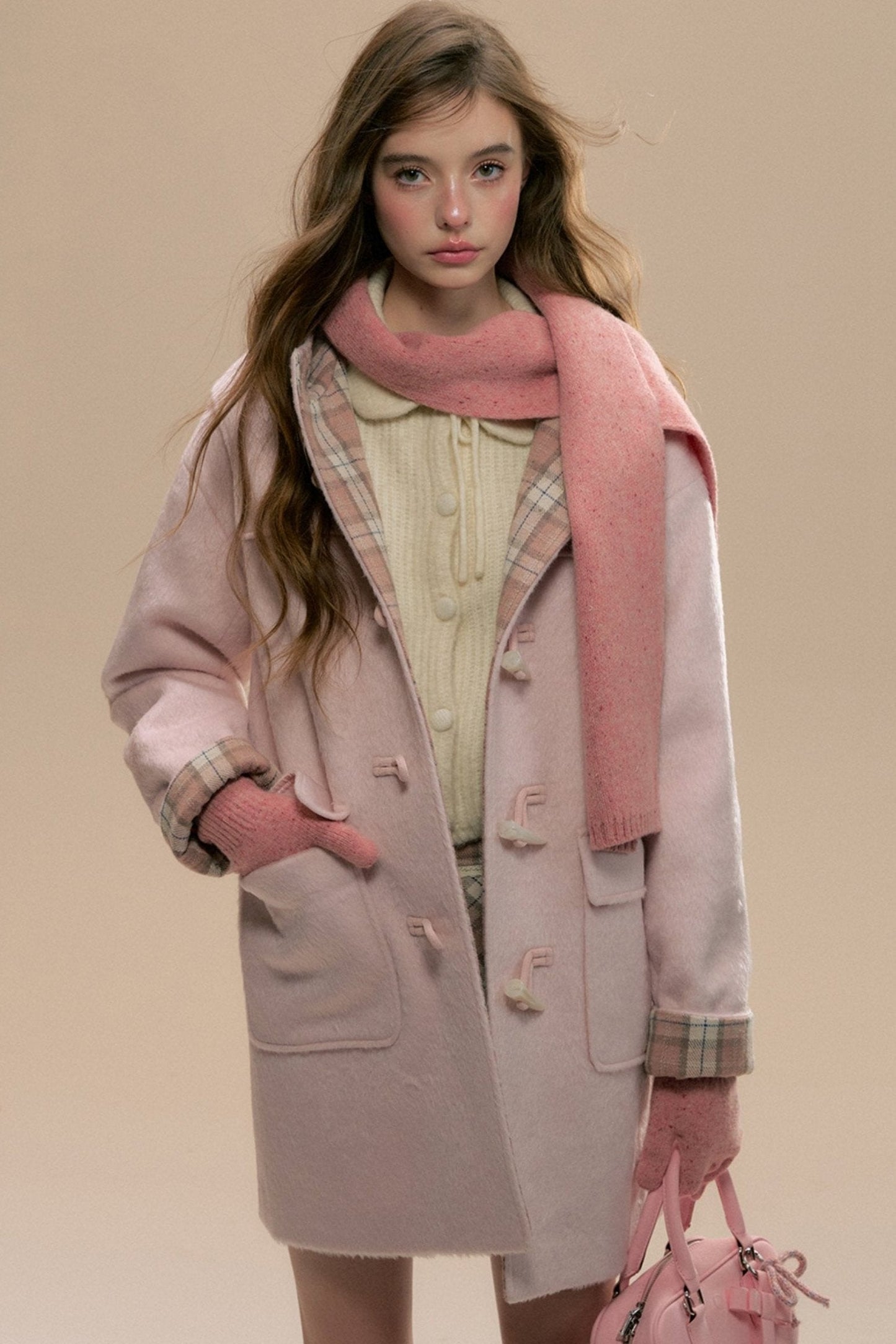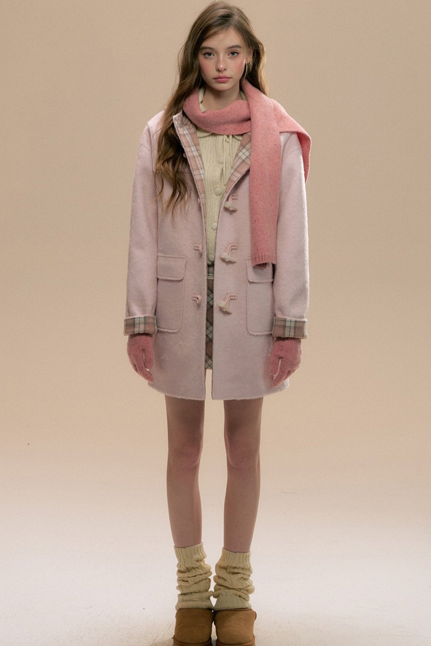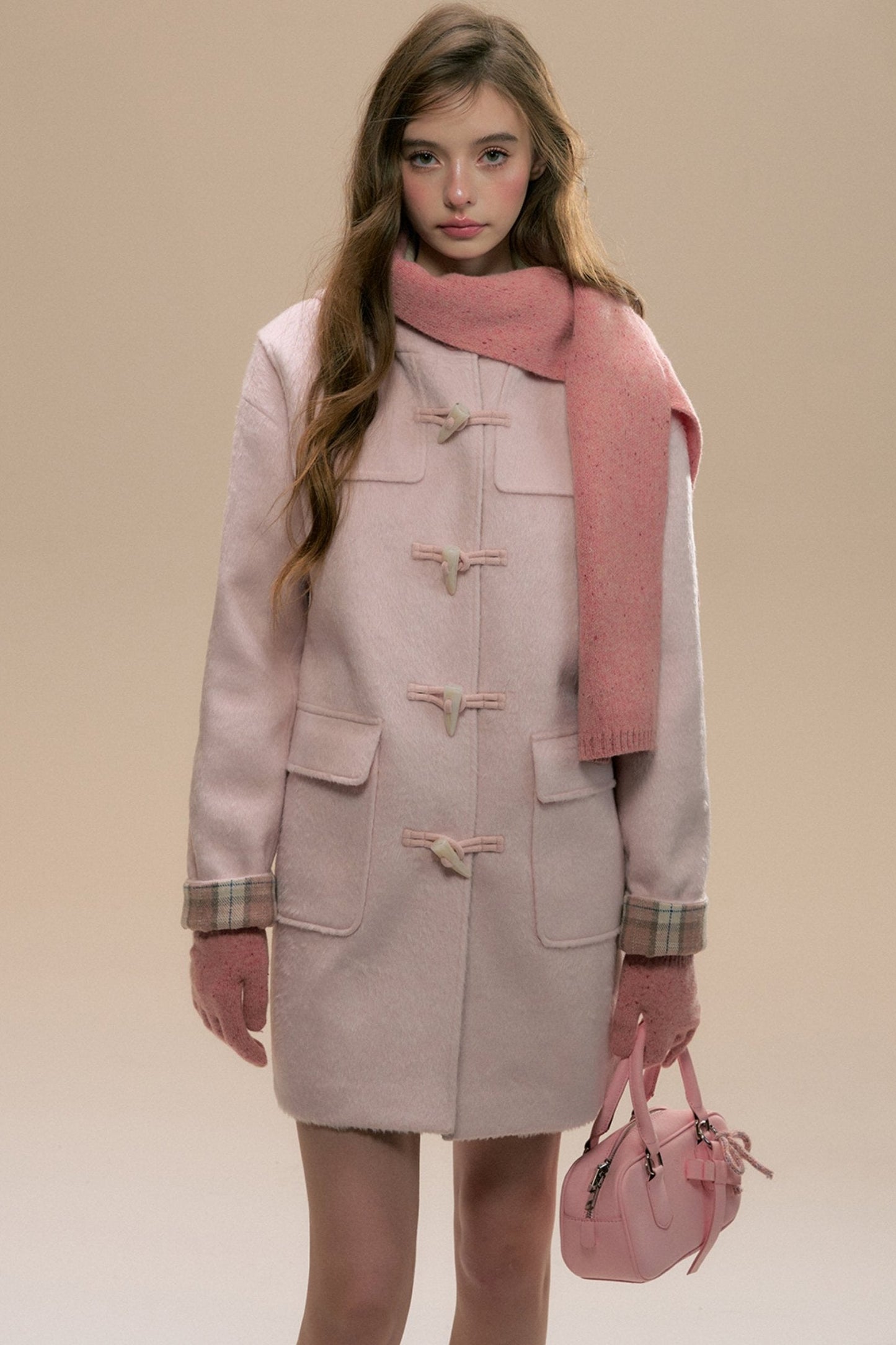 Pink Check Horn Button Coat