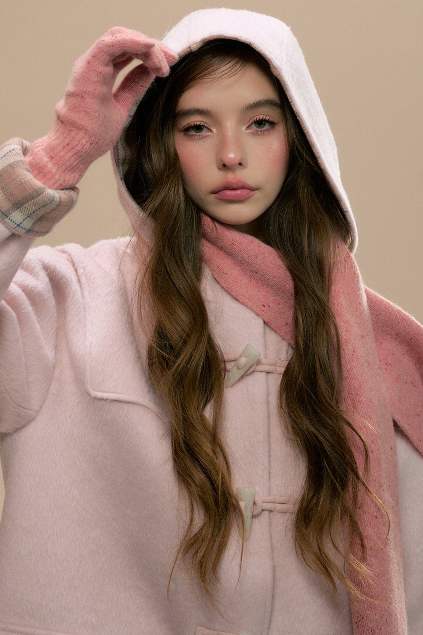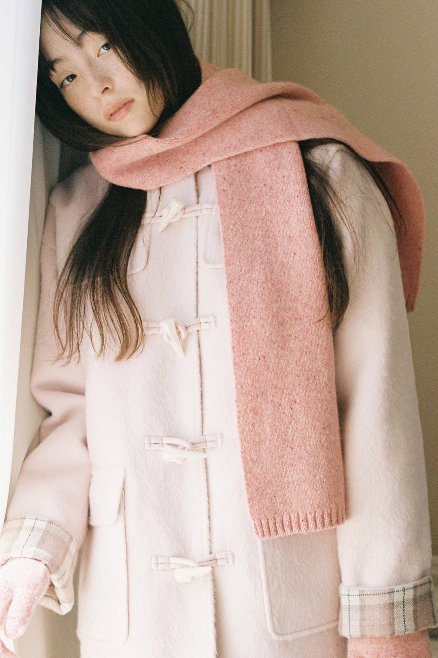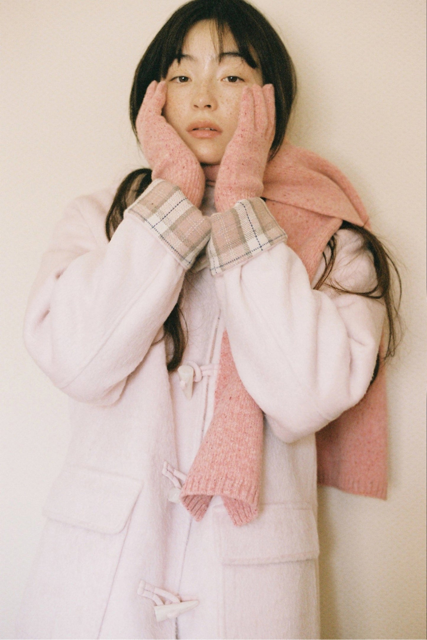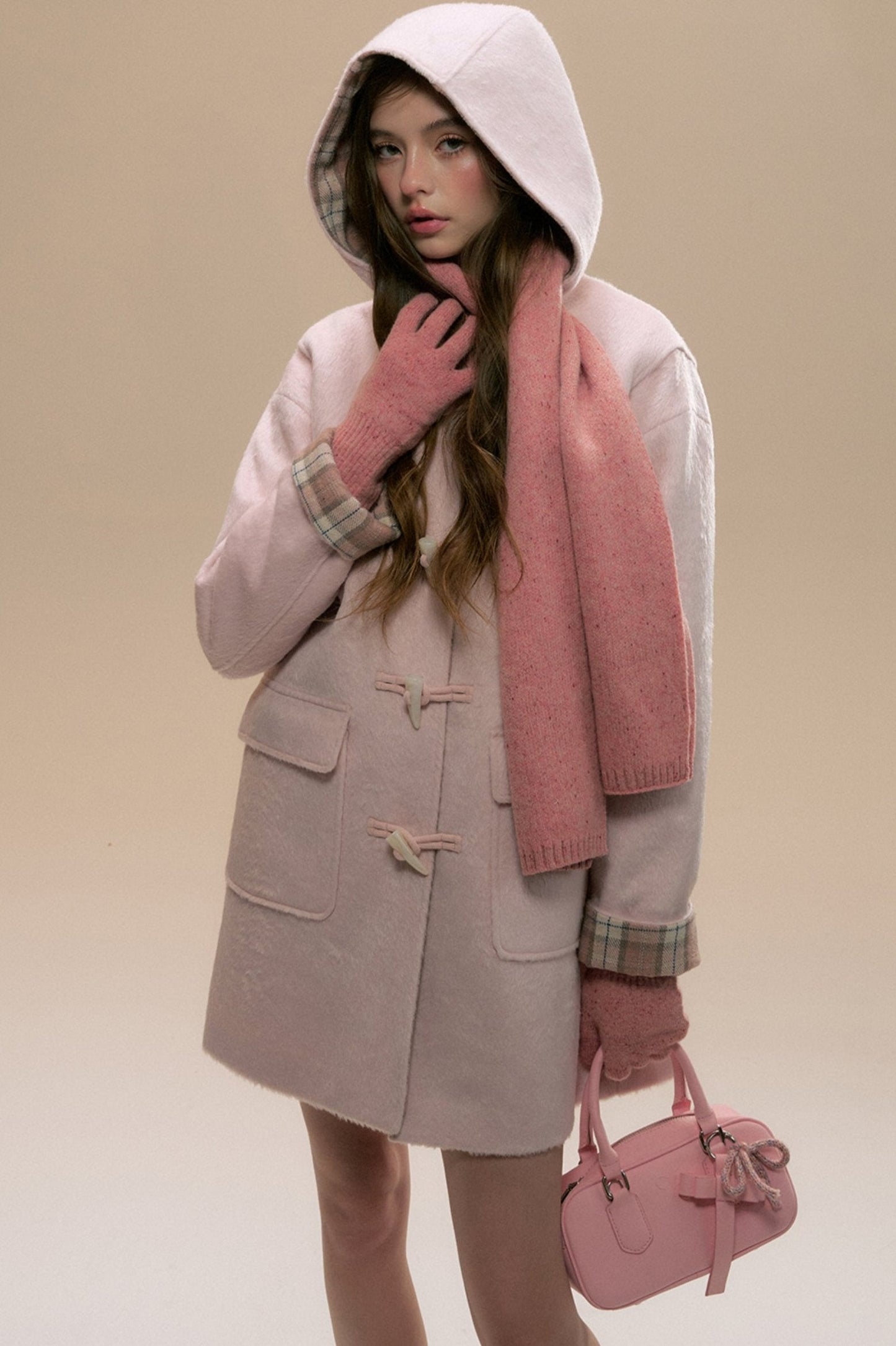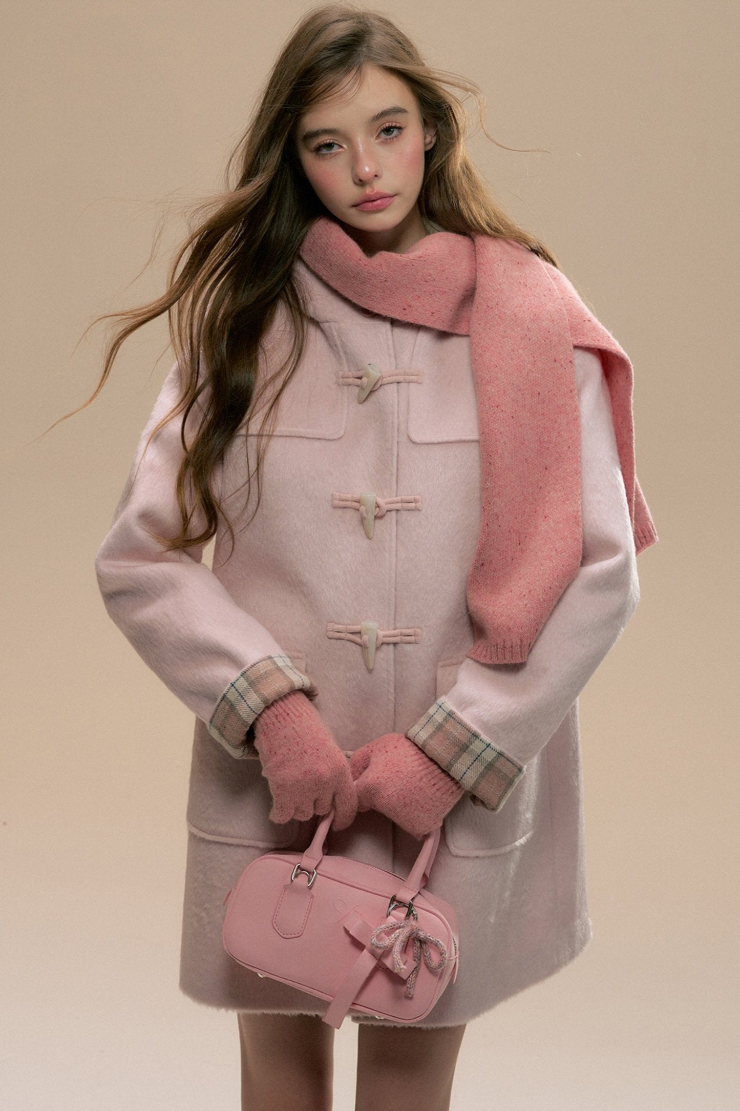 Pink Check Horn Button Coat