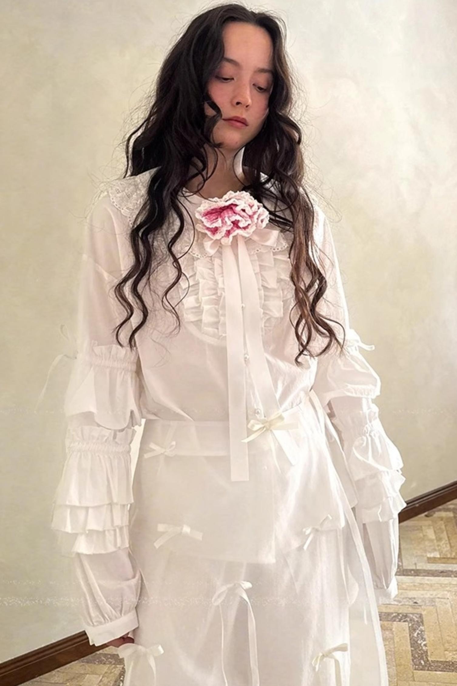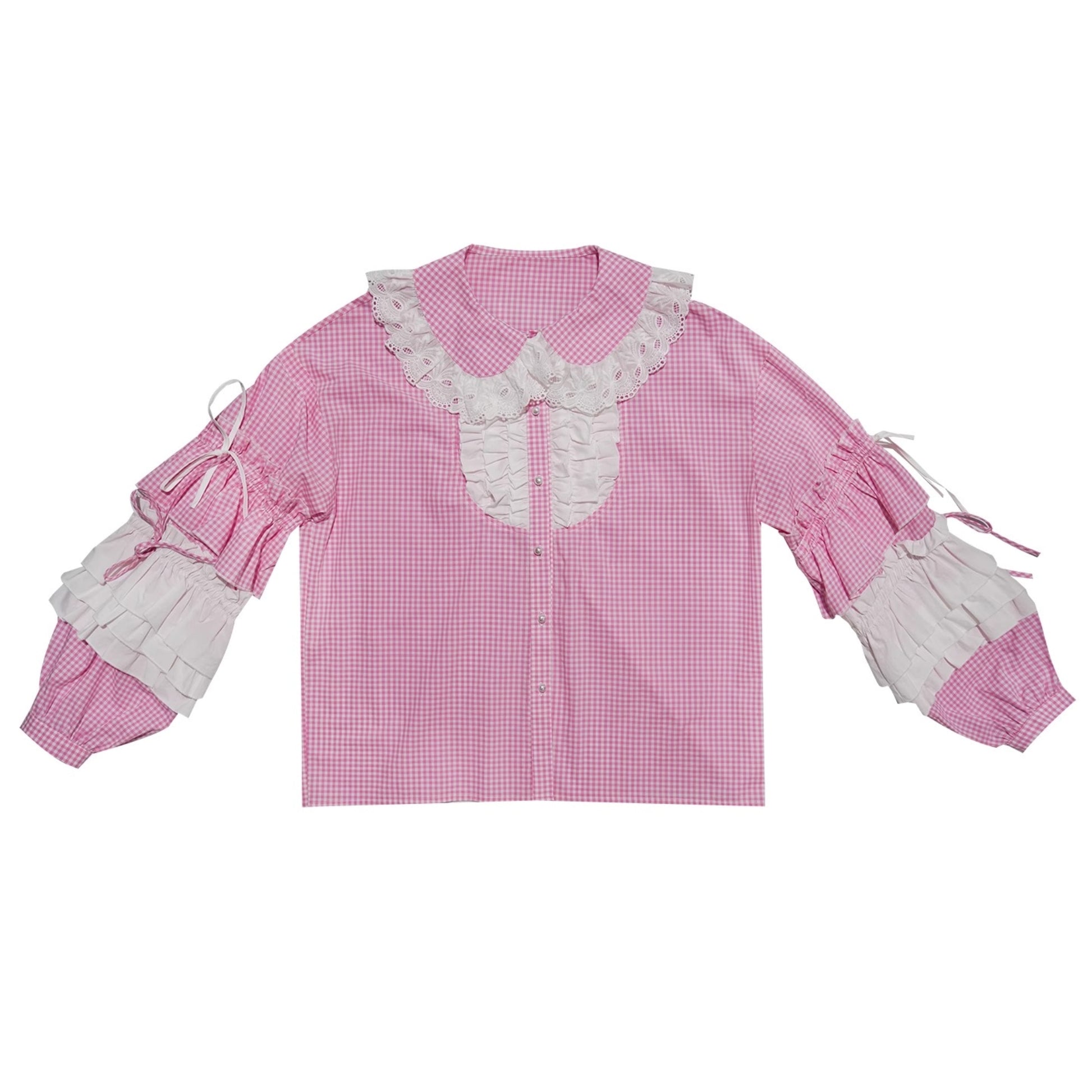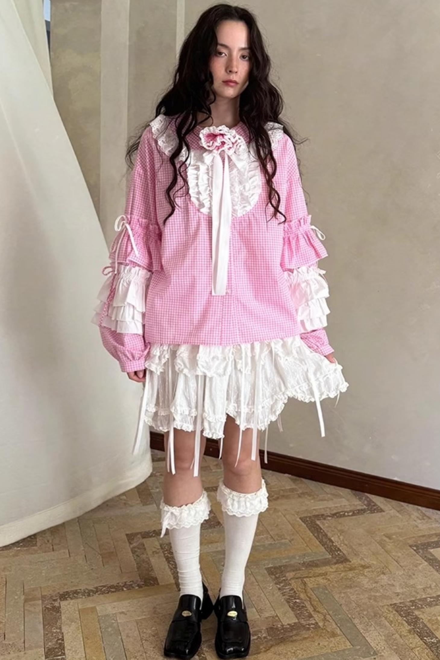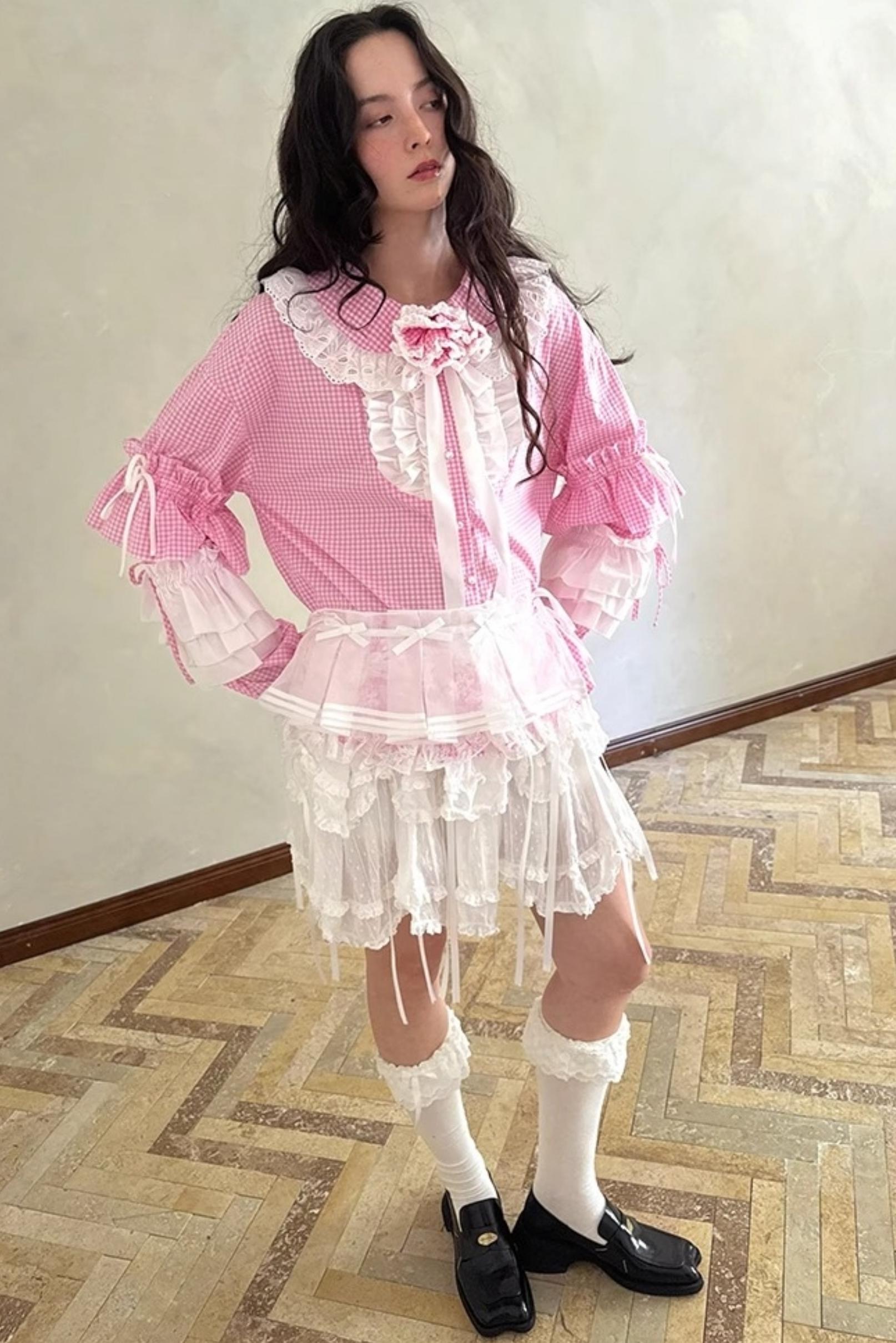 Pink-White Plaid Lace Shirt
