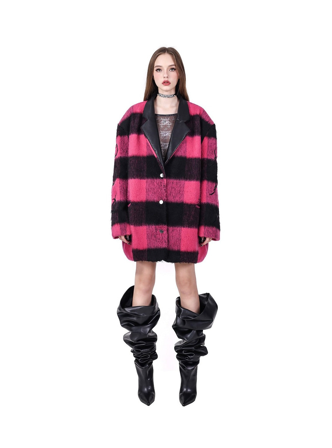 Padded shoulders genderless tweed coat