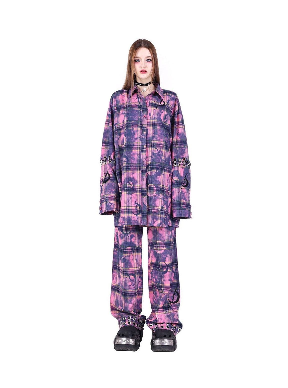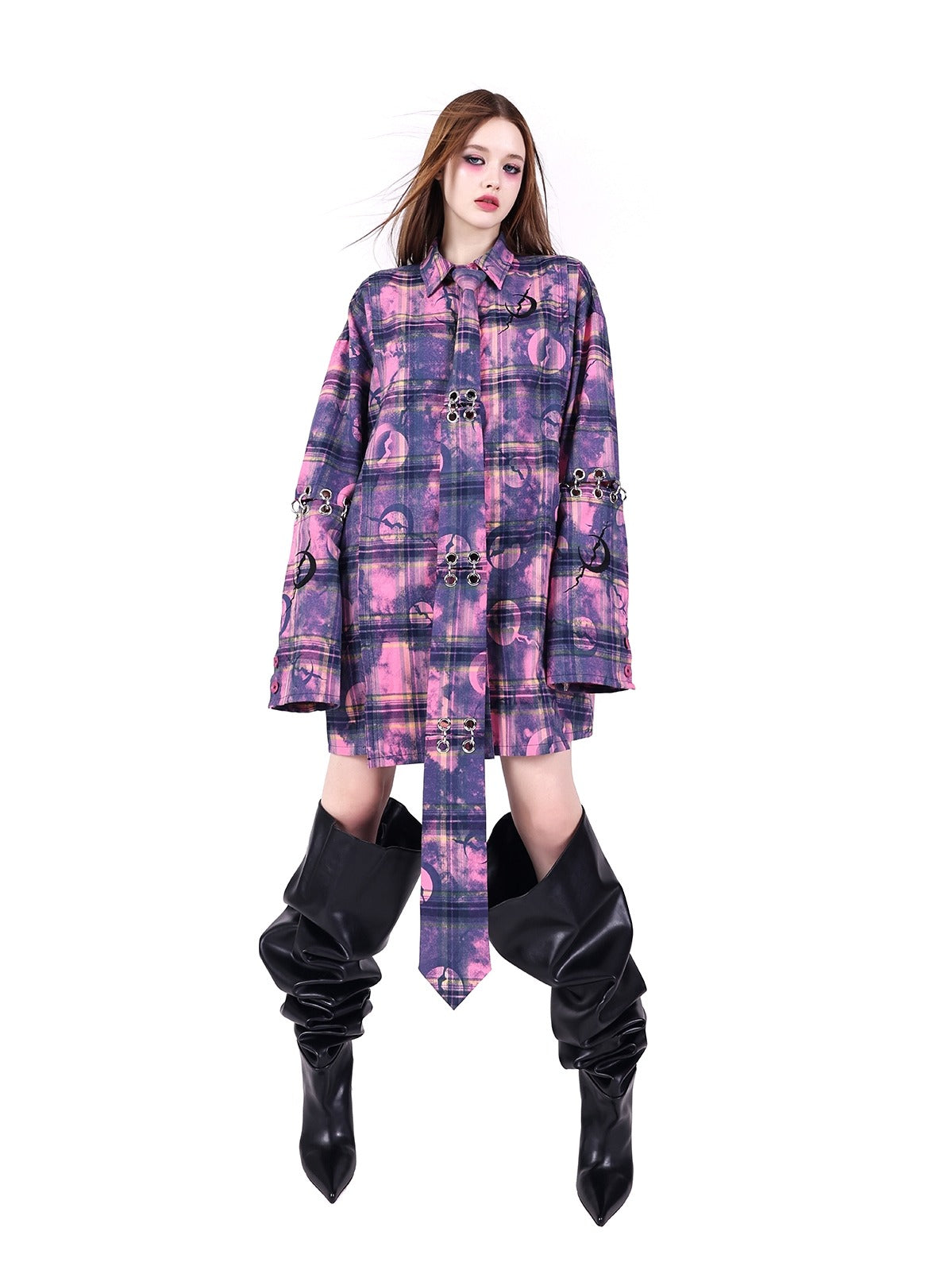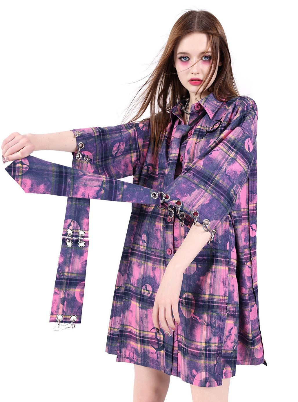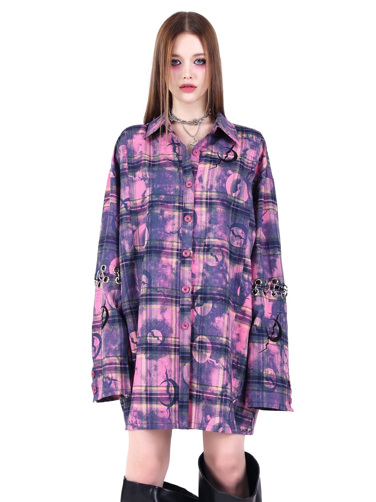 Sleeves loose plaid shirt