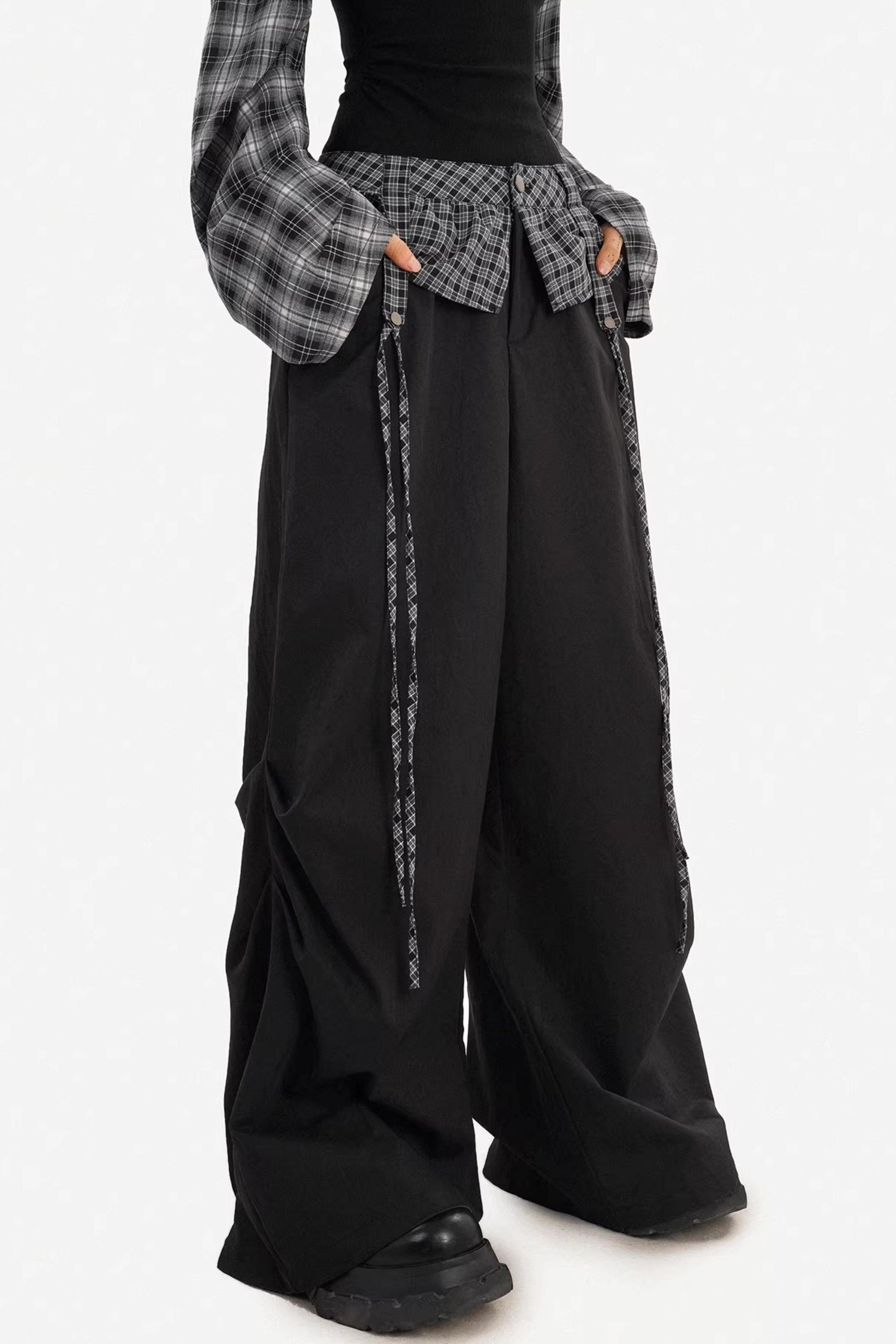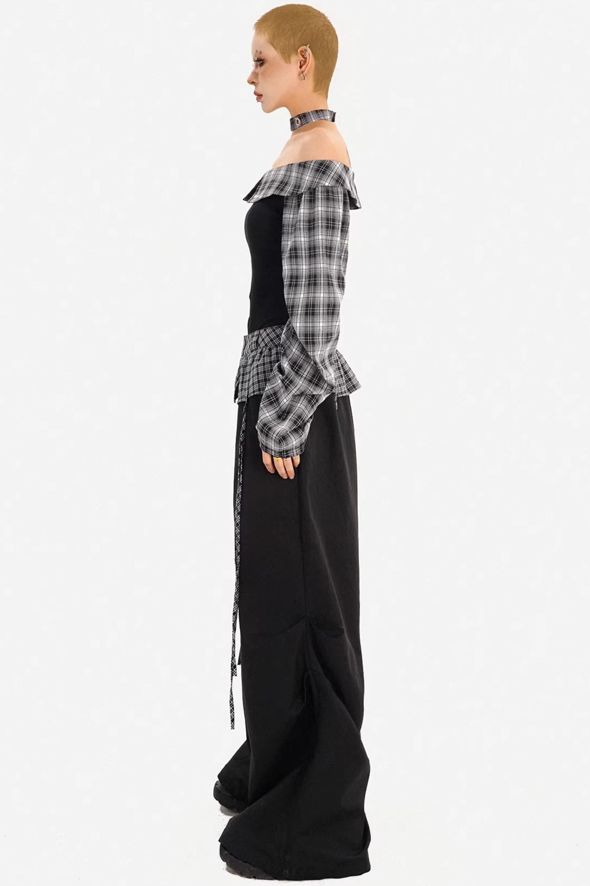 Plaid Off-Shoulder Pants Set-Up