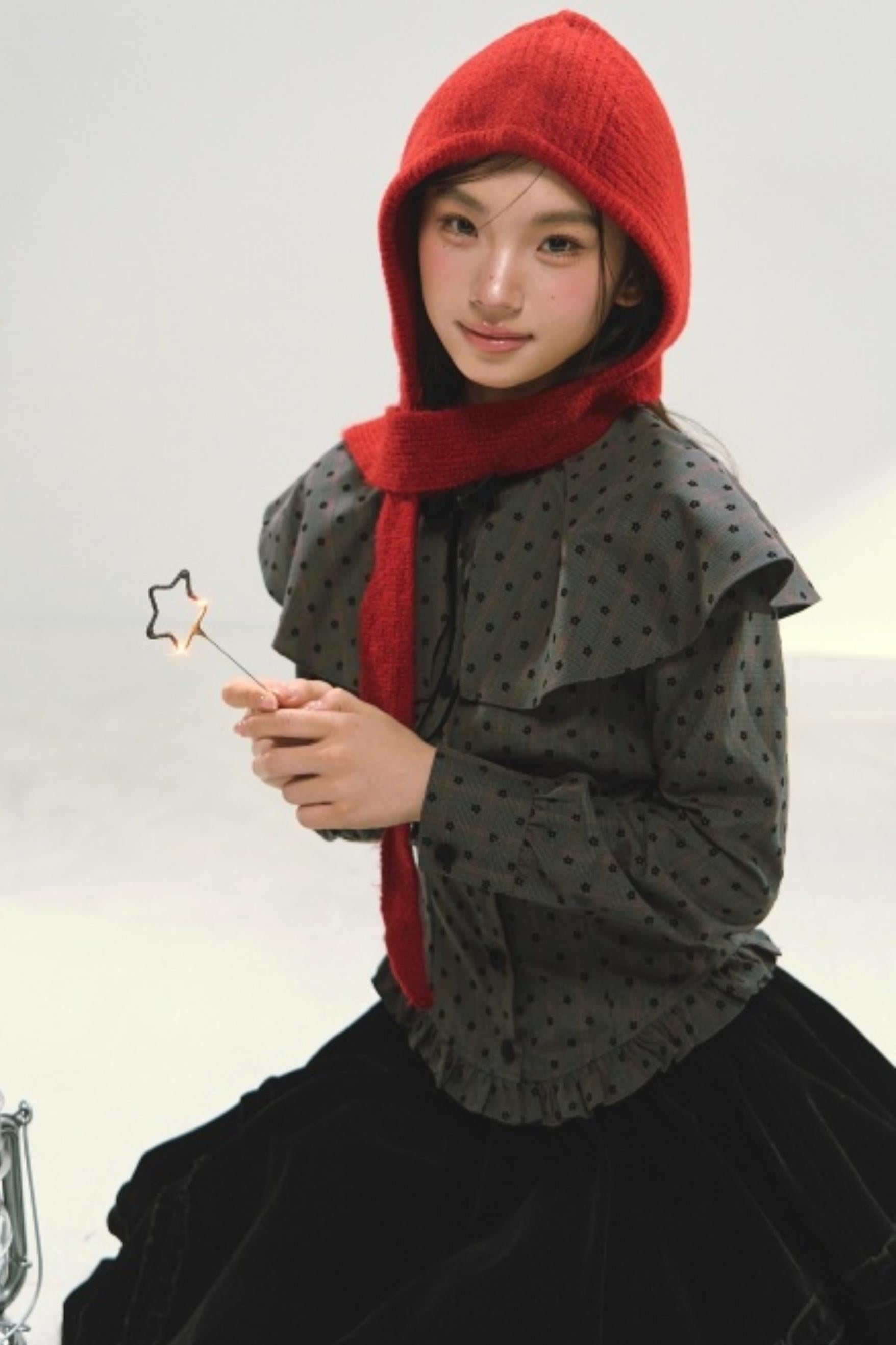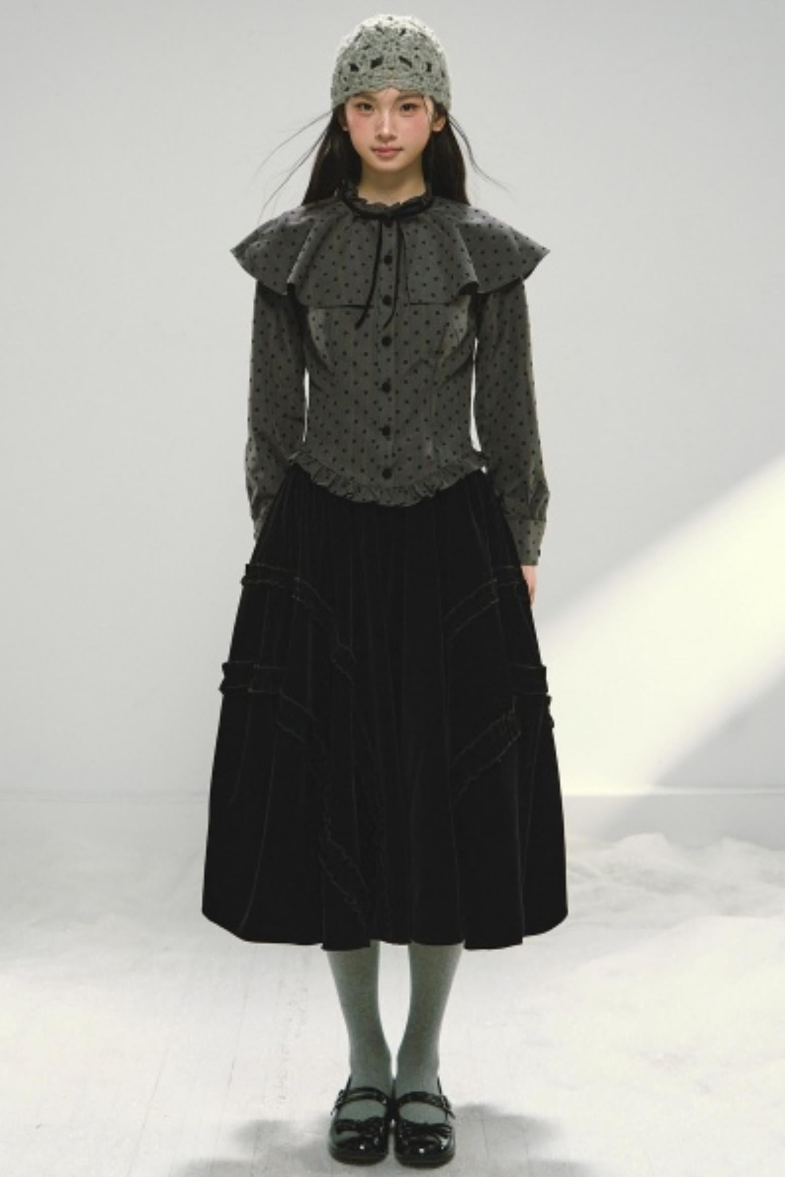 Plaid Velvet Floral Cape Top