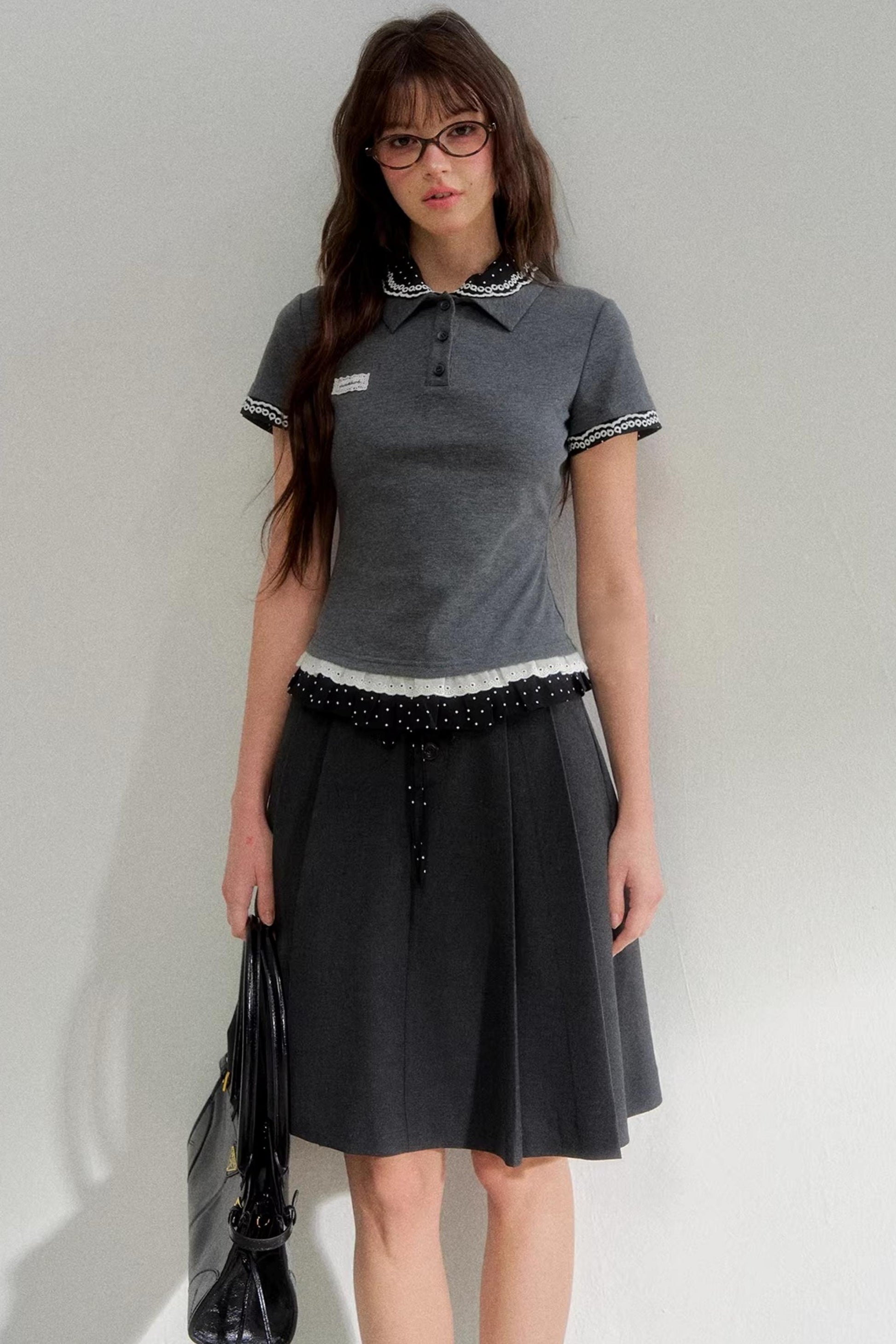 Polka Dot Gray Pleated Skirt