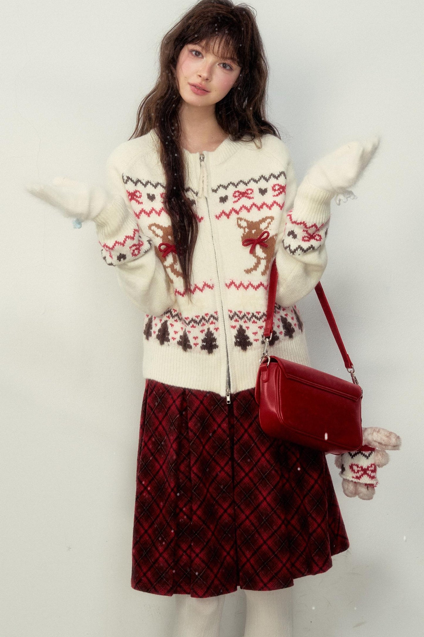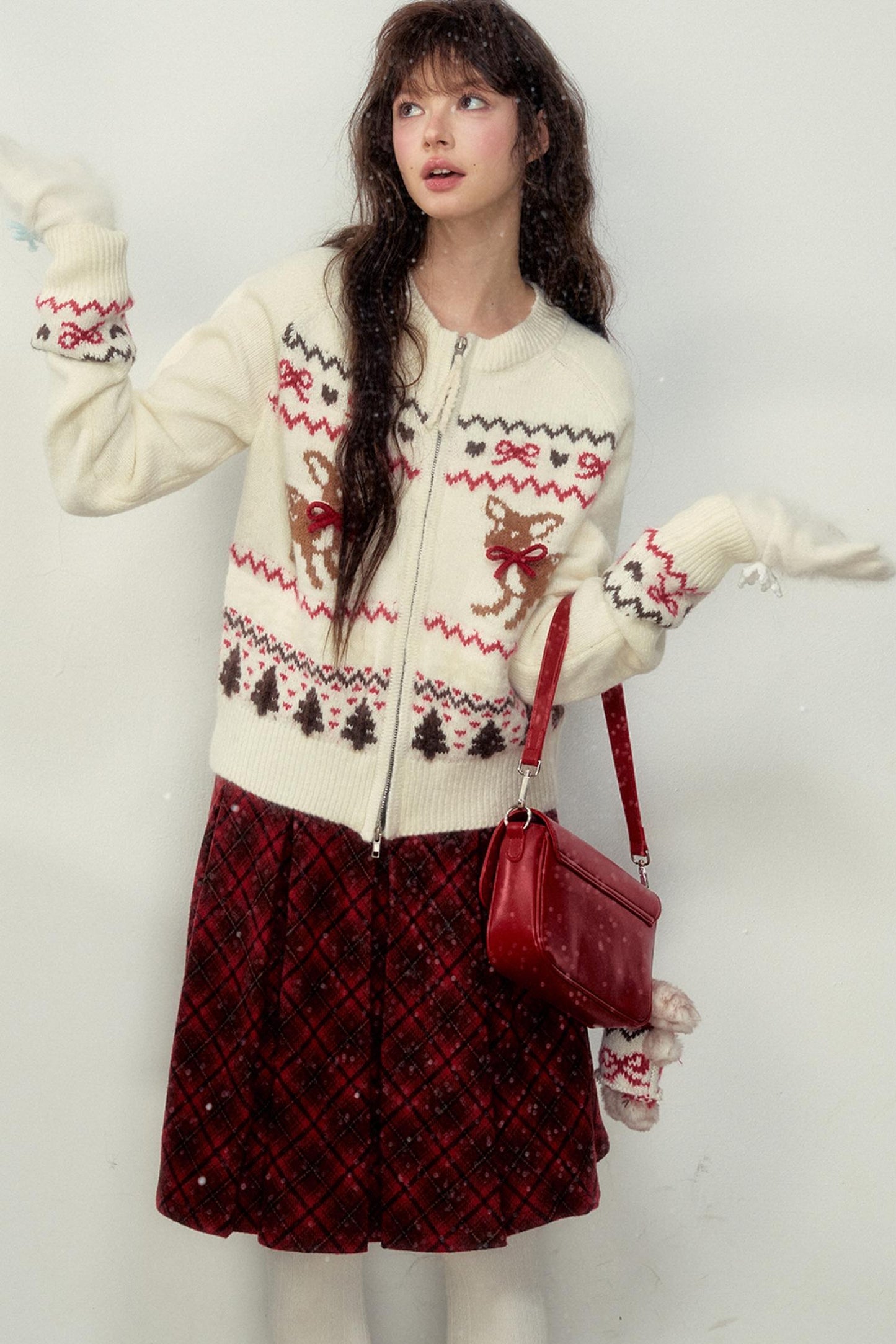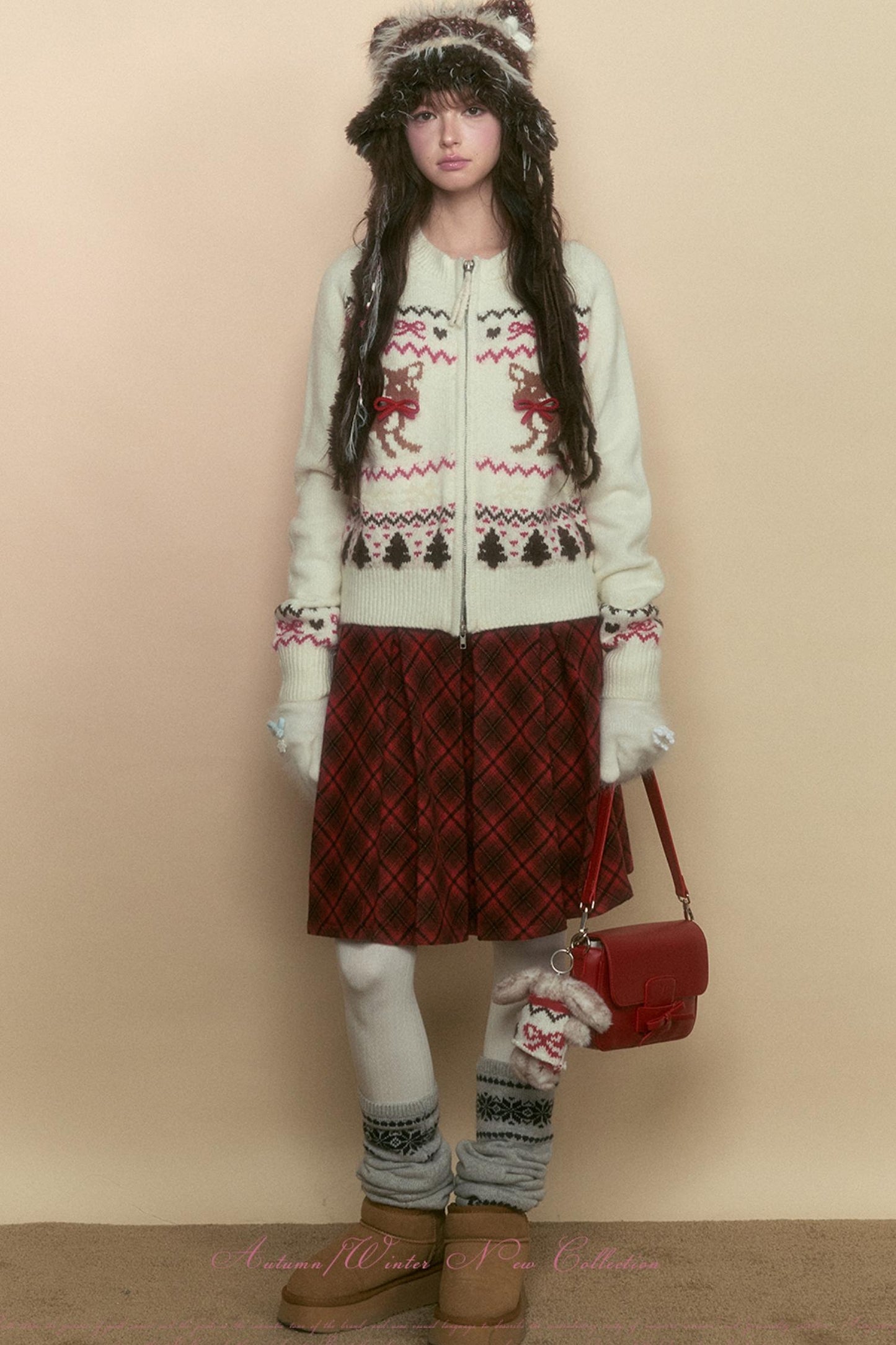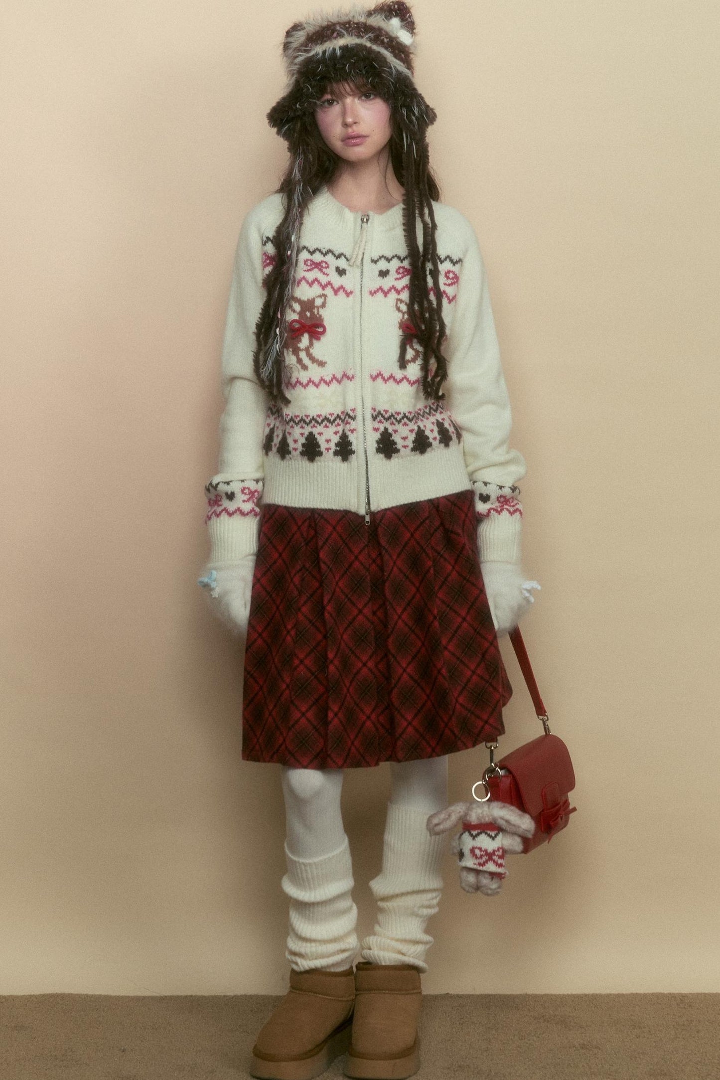 Preppy Style Fawn Fair Isle Knit Sweater