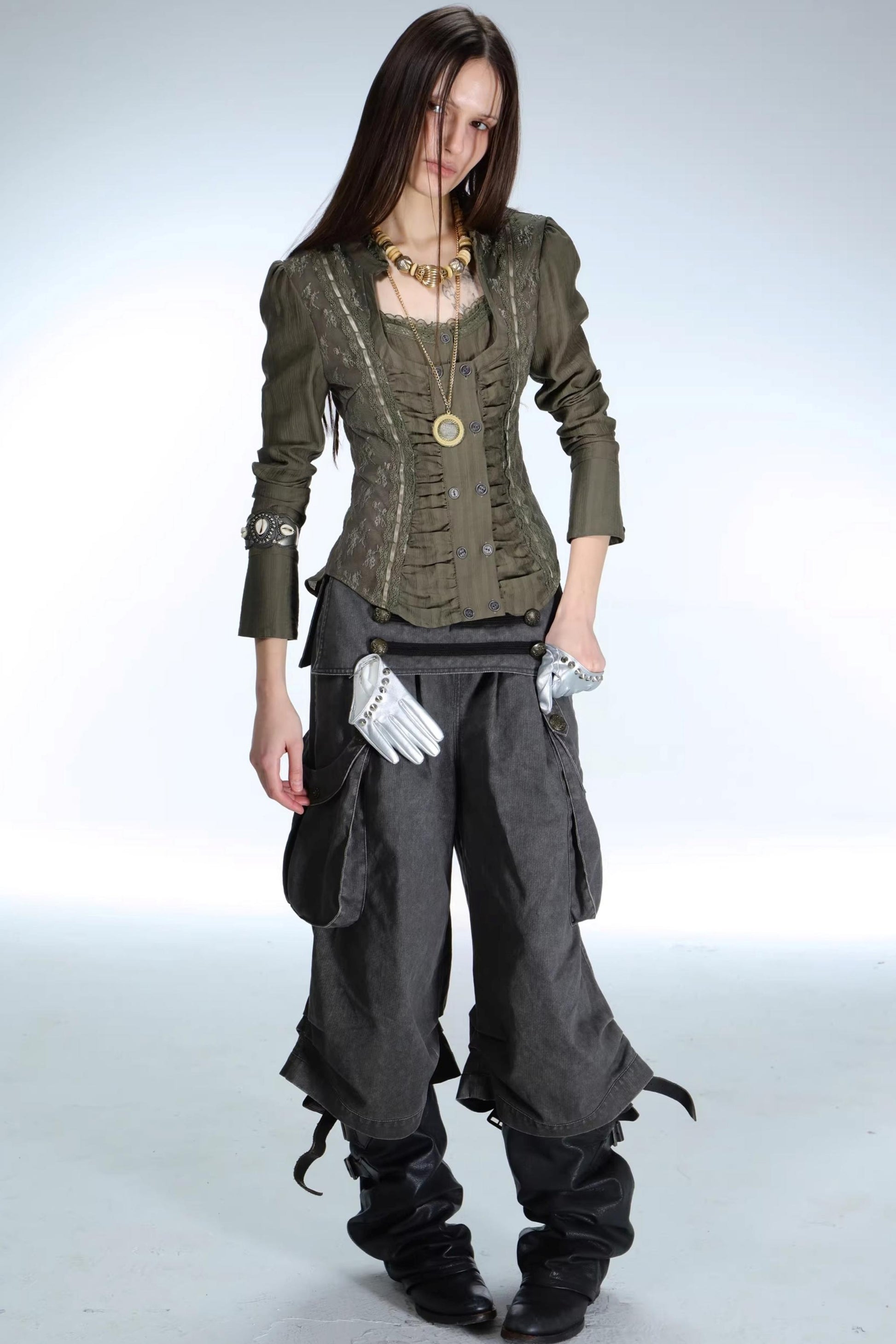 Retro Lace Splicing Shirt
