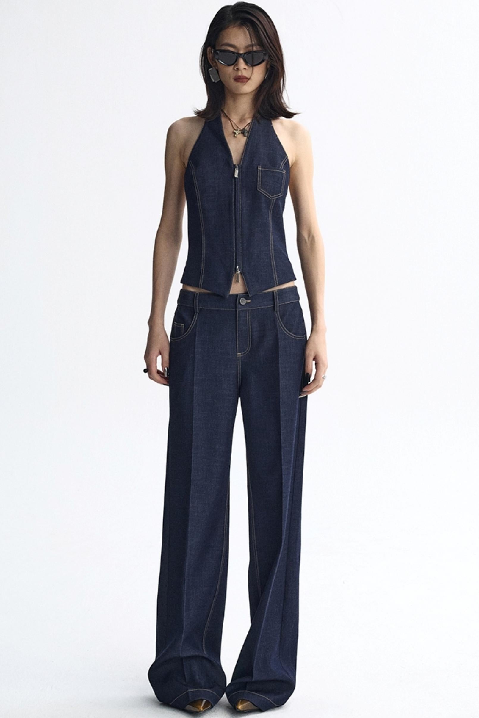 Retro V-Neck Denim Armor Vest