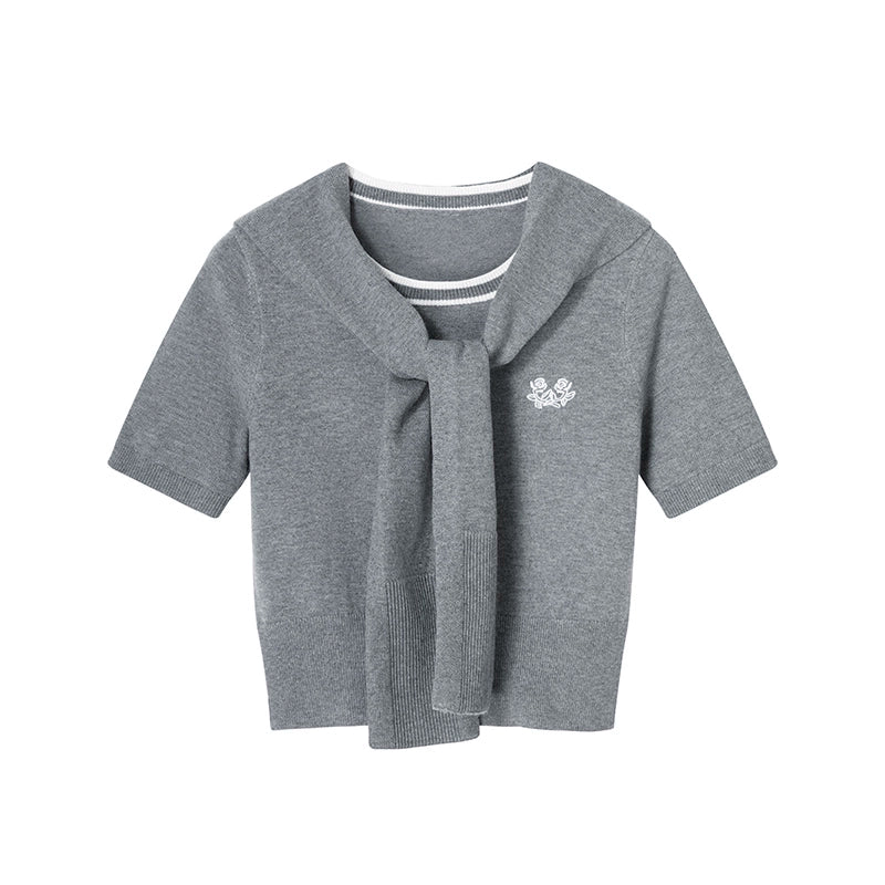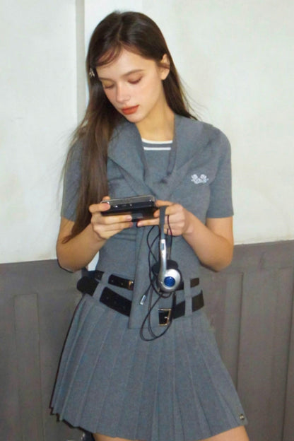 Retro Wool Knit Skirt And Stole Two-Piece Set-Up