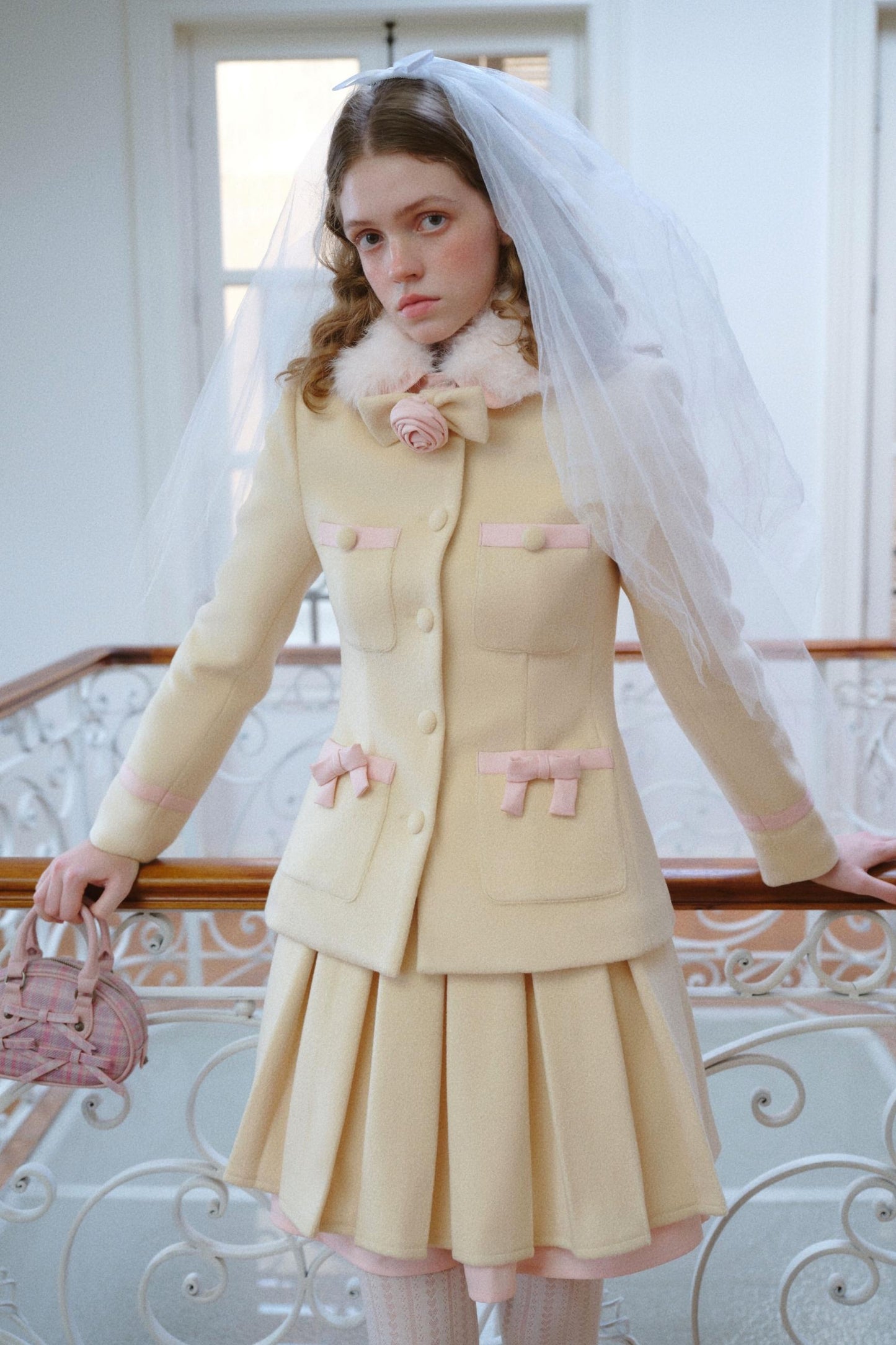 Rose Bow Tweed Top And Skirt Set-Up