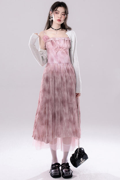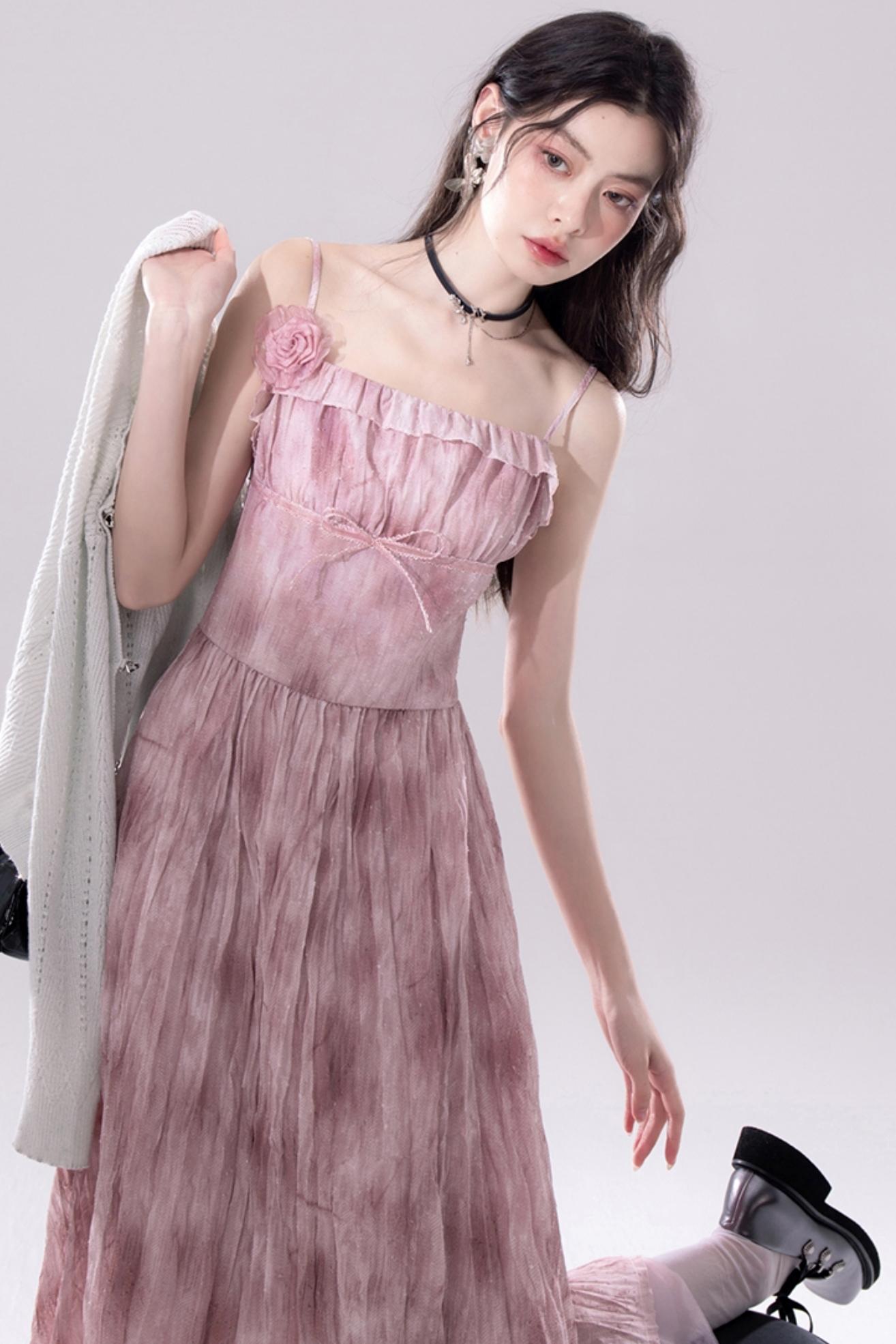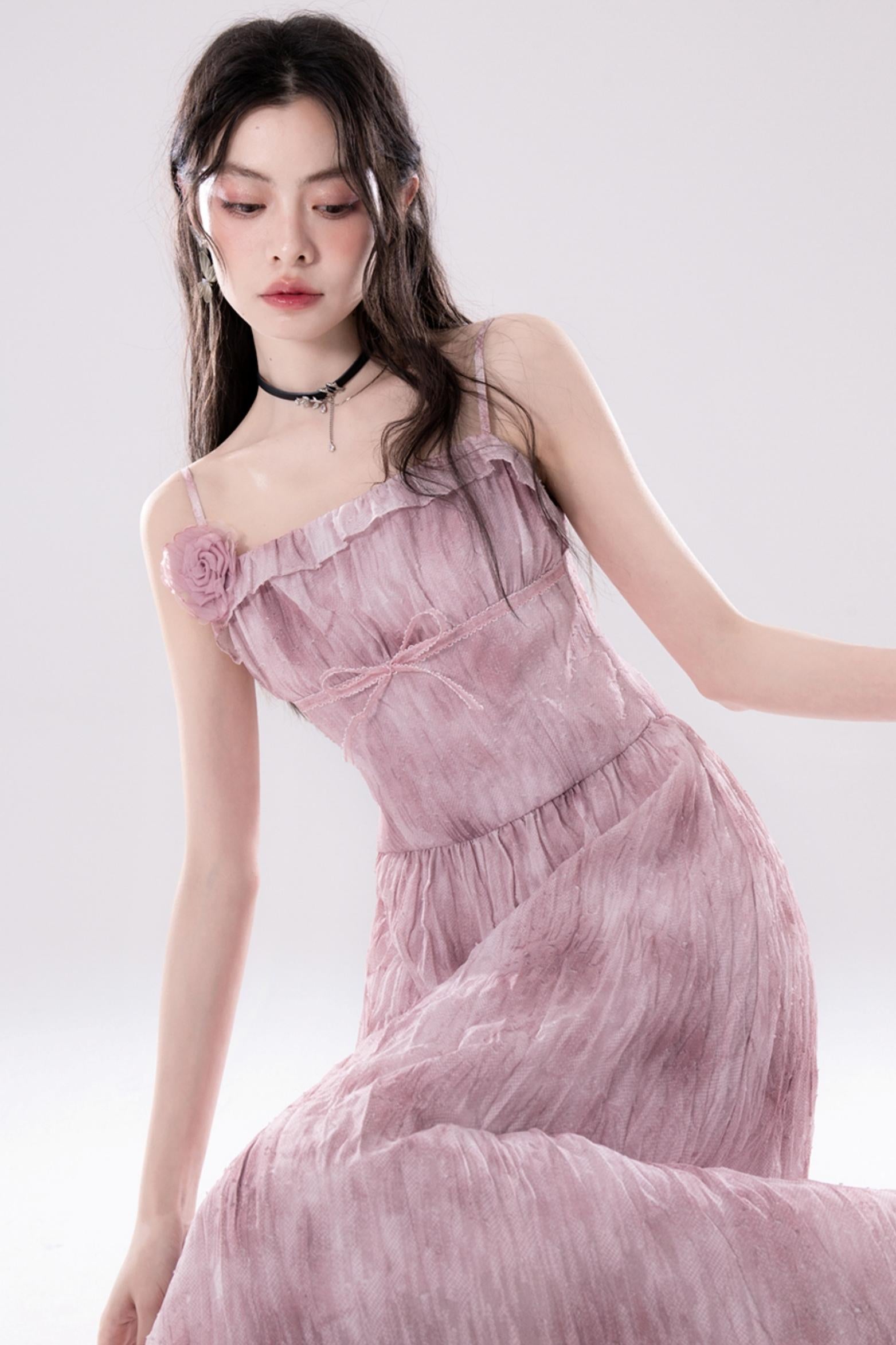 ※肩紐は調節可。前装飾の花は取り外し可、後ろリボンは装飾固定で取り外し・解け不可。