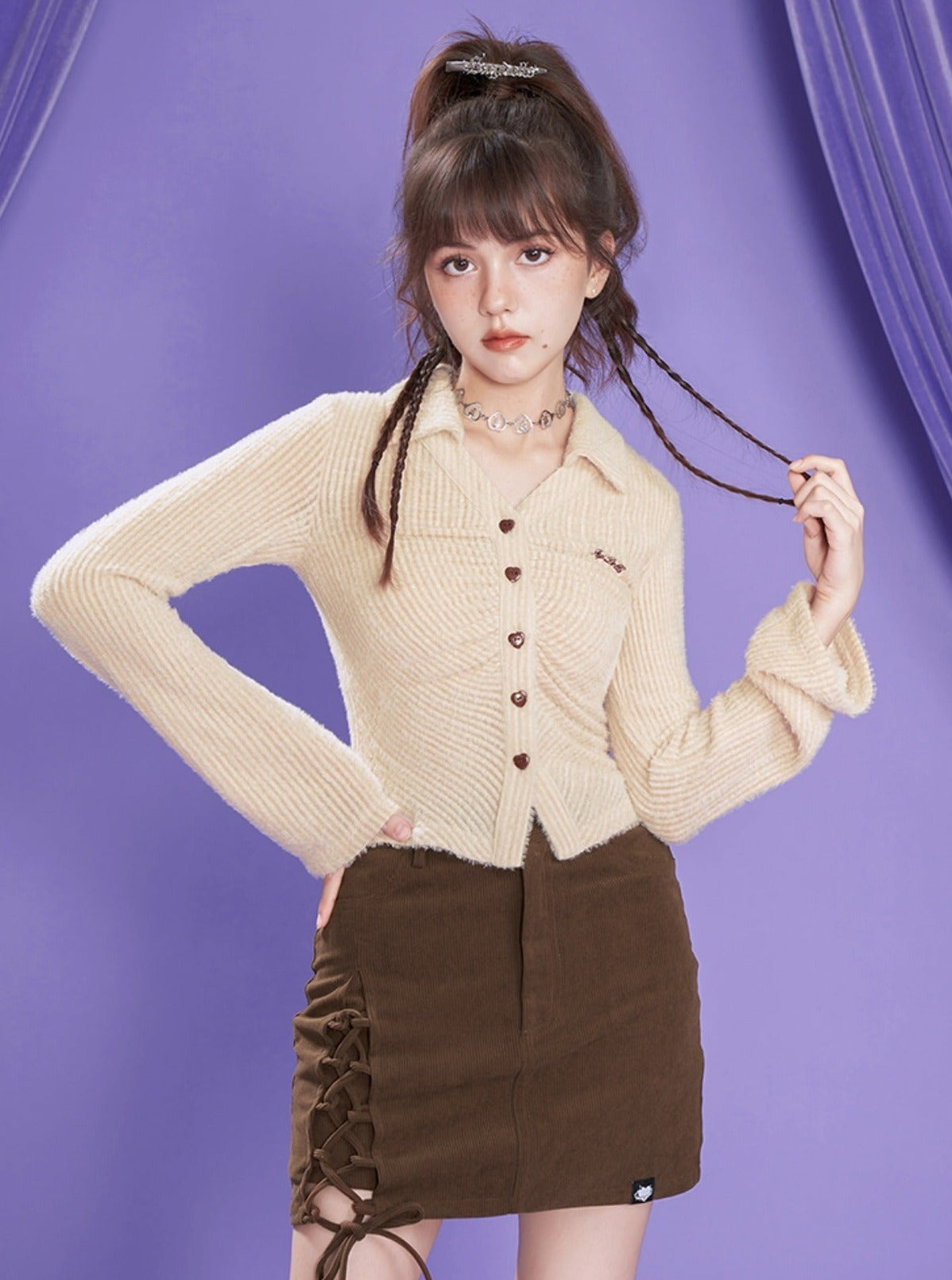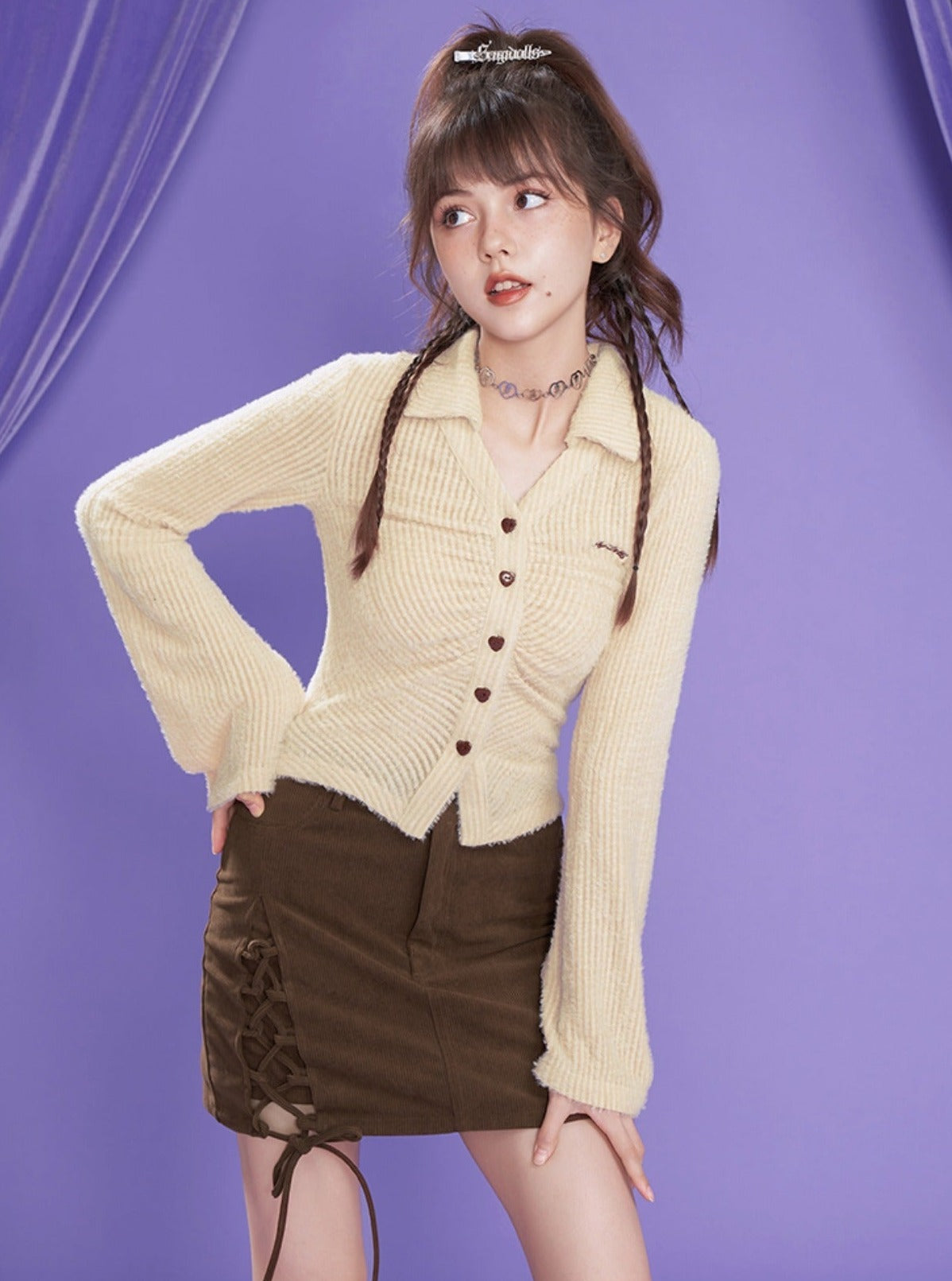 brown retro two-piece skirt