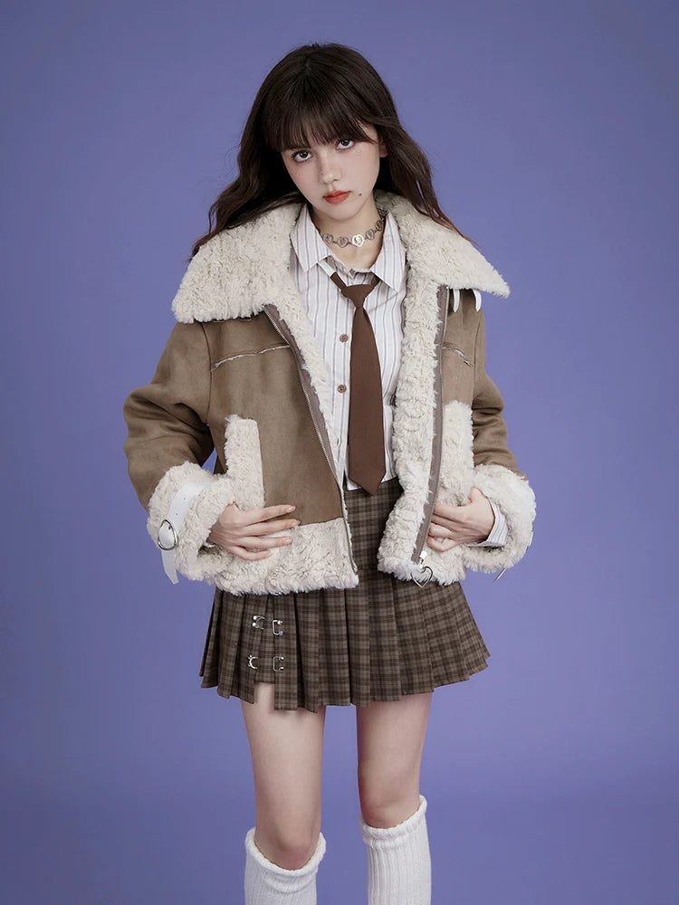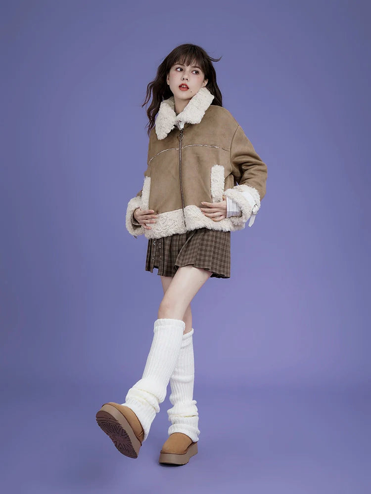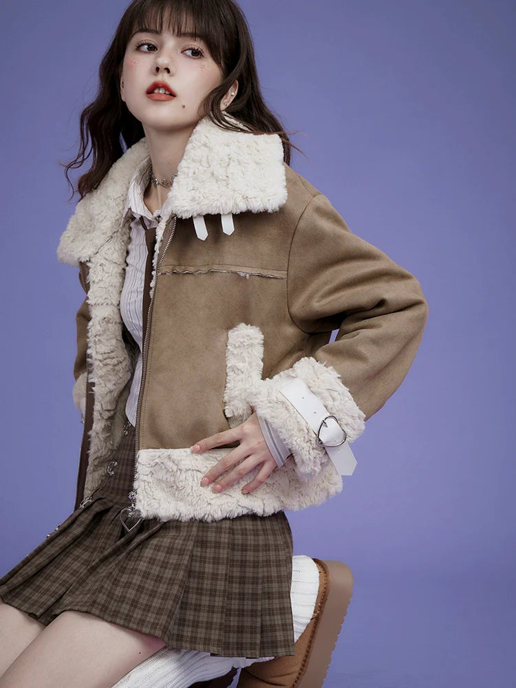 Suede loose short coat
