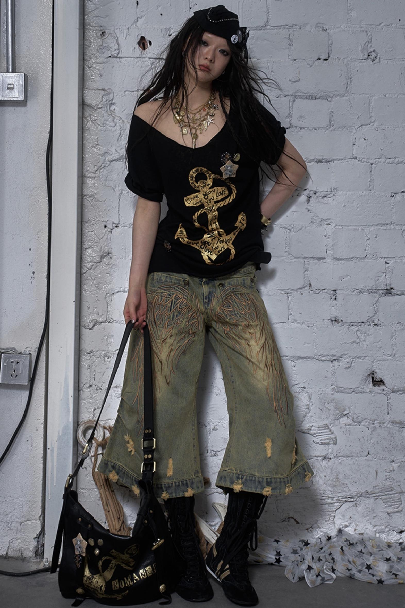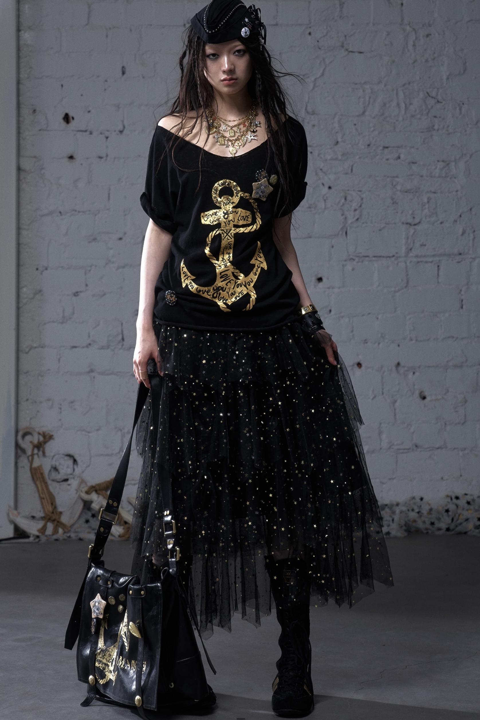 Sailor Style Printed Loose T-Shirt